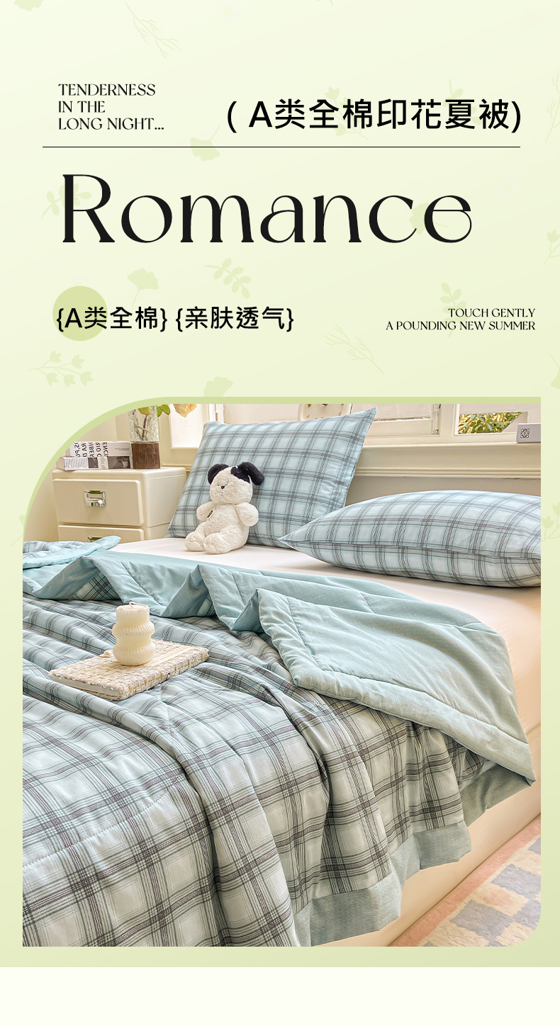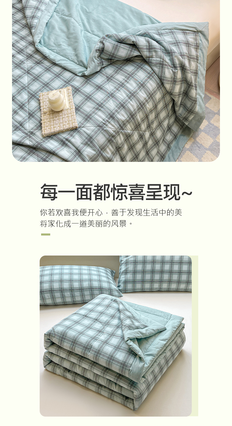商品名称:憨豆家纺 2025新款双面全棉夏被可机洗小清新纯棉夏被薄被芯空调被子夏凉被 雅格-绿