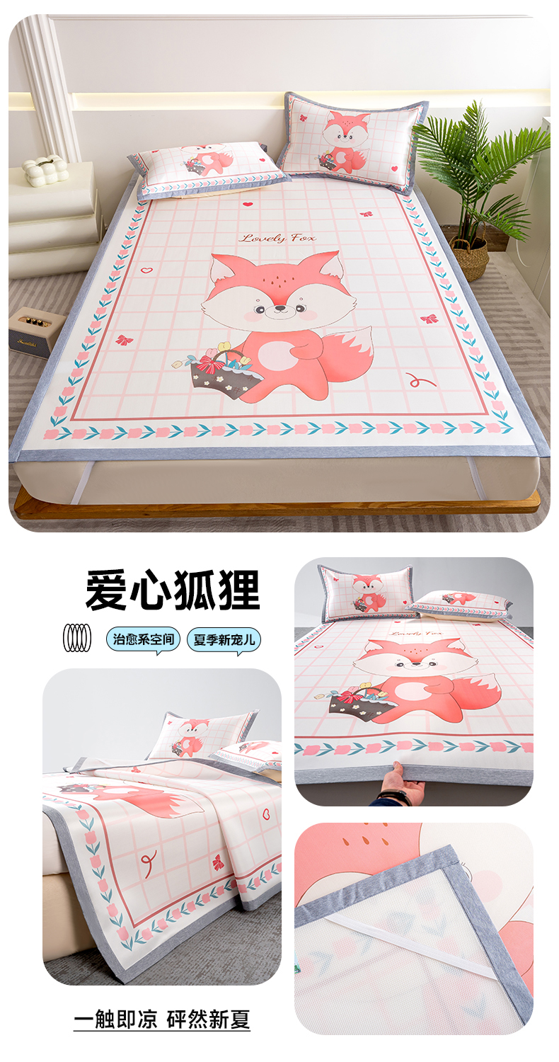 商品名称:邵依家纺 2025新款数码印花烫光冰丝席凉席子藤席场景二 爱心狐狸