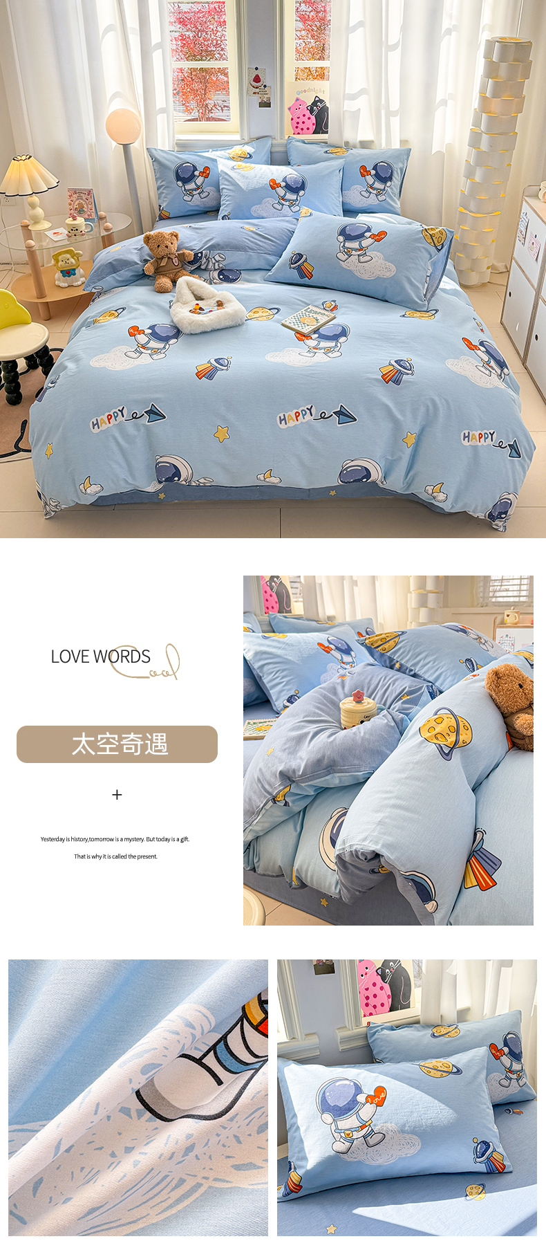 (总)简宜家居 2023新款小清新卡通纯棉全棉斜纹四件套,贩卖美好,蓝彩,蓝色心愿,梦享,奇妙农场,星月童话