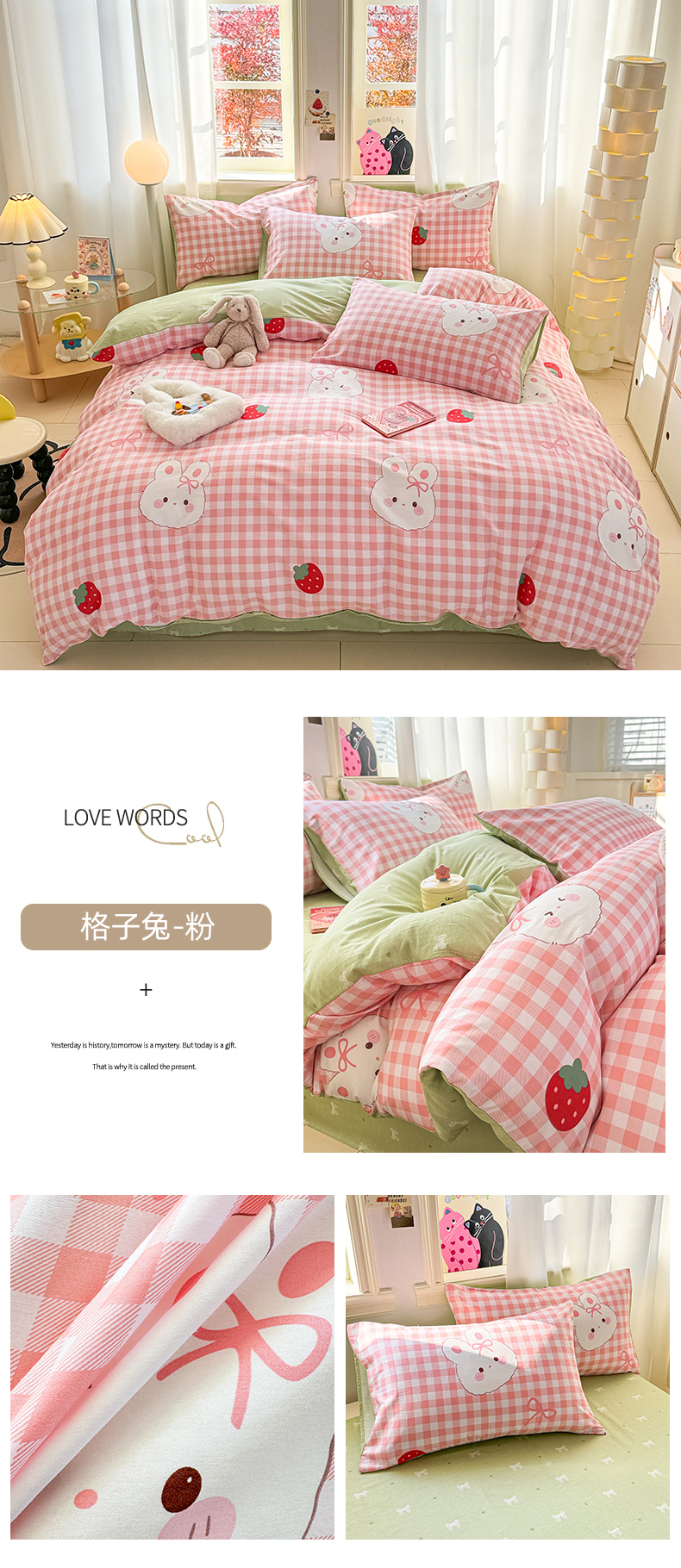 (总)简宜家居(朝初家纺) 2025新款全棉12868斜纹卡通花卉学生三件套四件套,粉格卡通猫,粉红可爱兔,粉色猫-小格,简约-学院熊,简约-音乐熊,简约-棕调,快乐腊肠狗,蓝格欢乐,萌宠格子铺,萌友聚会,奶牛smile,甜心萌犬