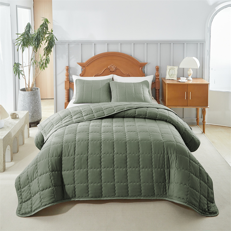 温宁2025新款跨境外贸专供化纤水洗棉麦穗夹棉四季床盖 绿色