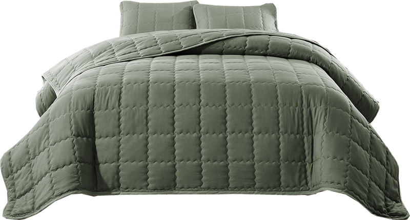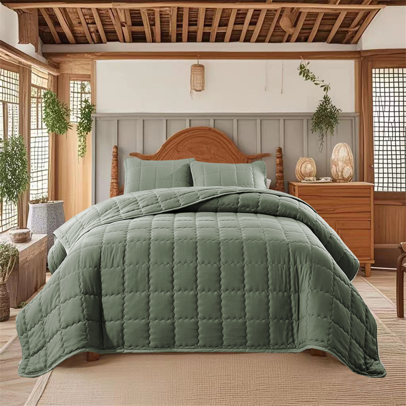 (总)温宁家纺 2025新款跨境双面化纤水洗棉小方块夹棉四季床盖(国外也当做夏被),绿色,米色,银灰