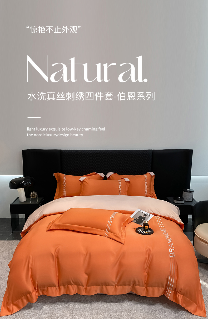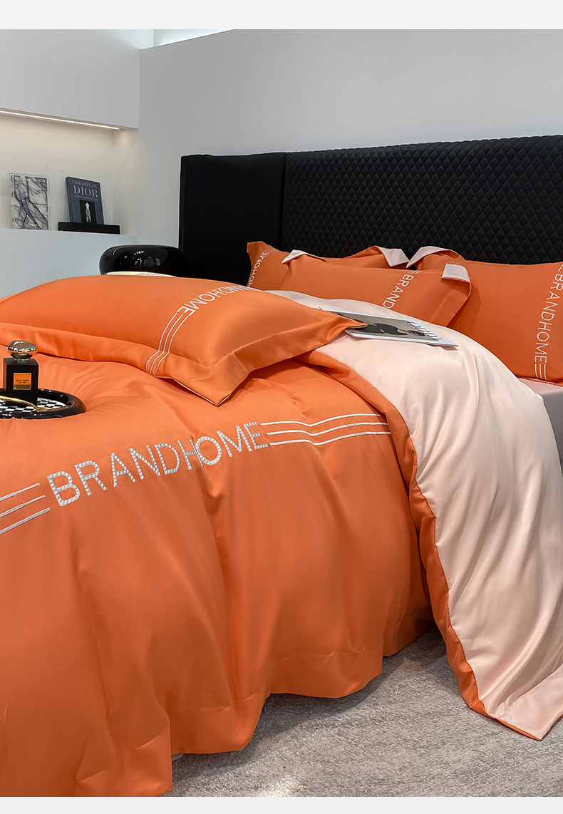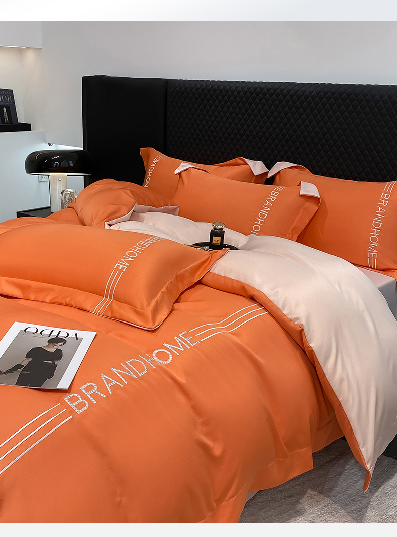 首尔家纺 2025亲肤棉水洗真丝冰丝刺绣四件套-伯恩系列 伯恩-摩登橘