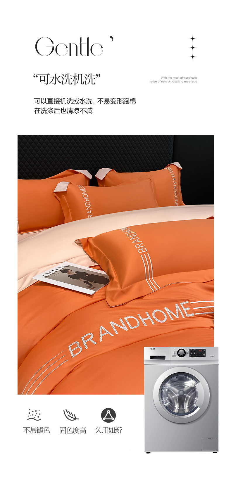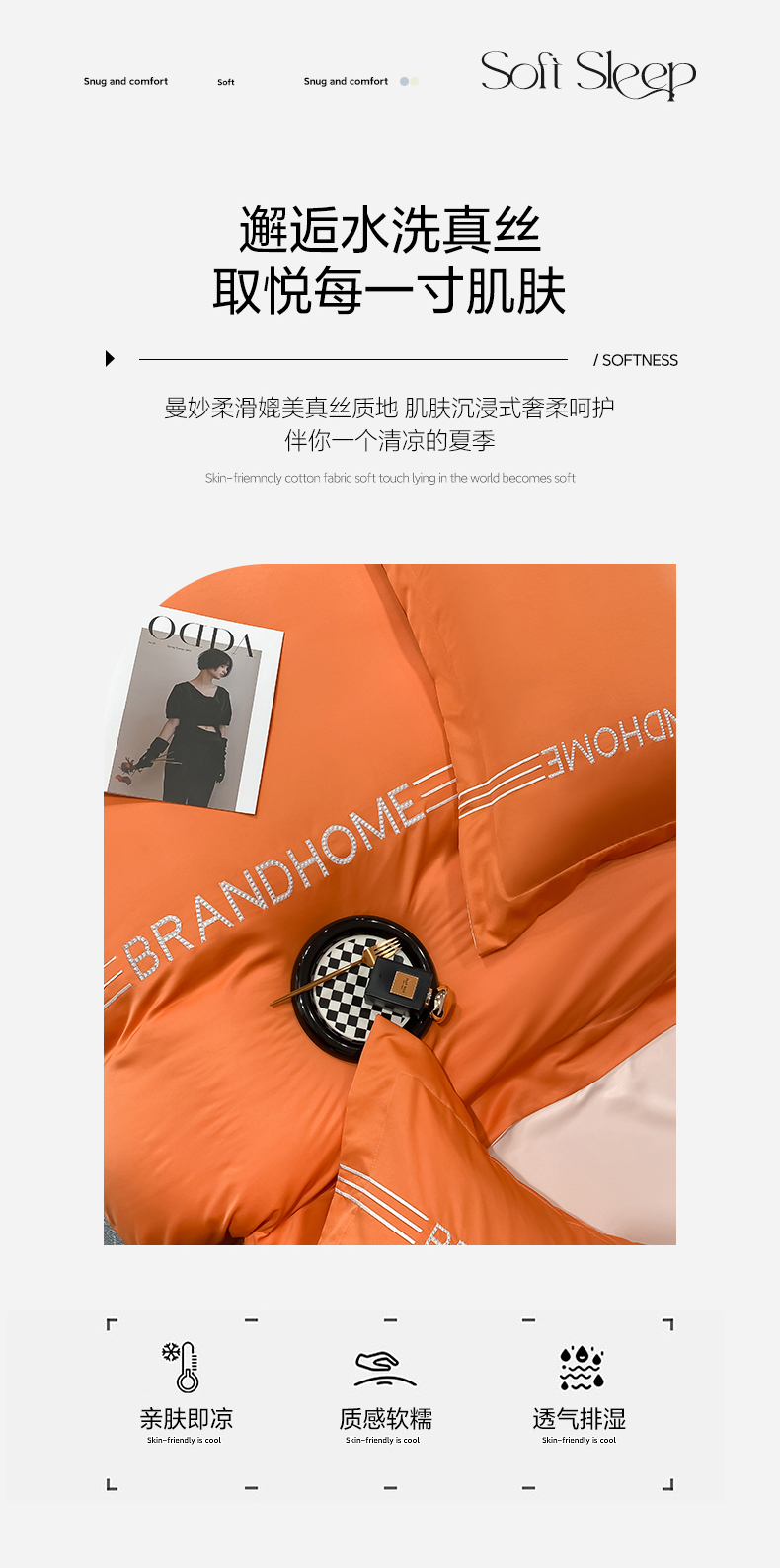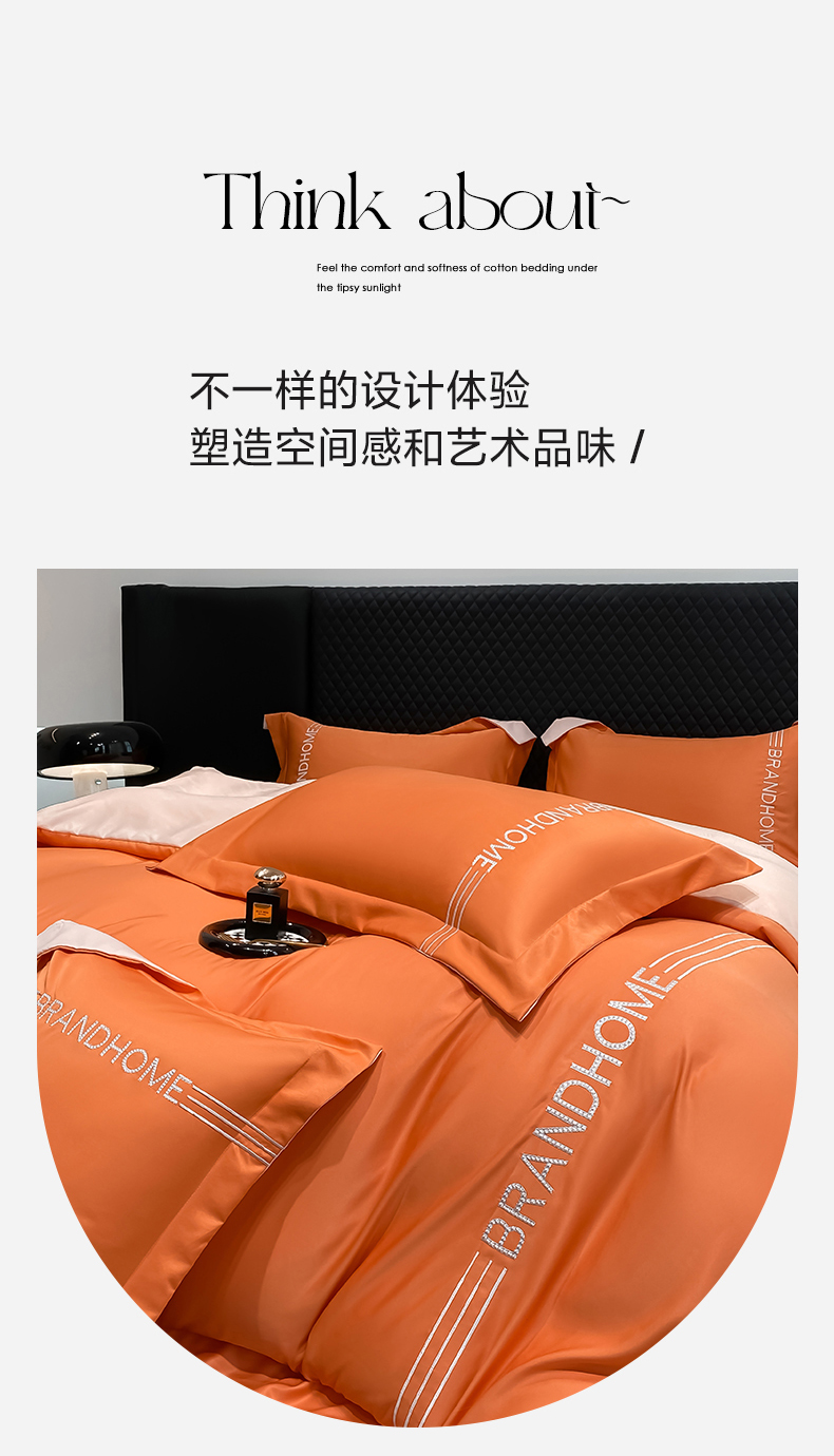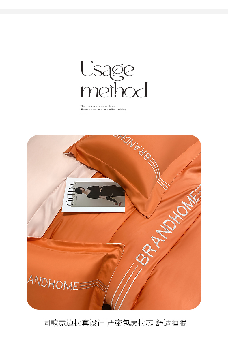 商品名称:首尔家纺 2025亲肤棉水洗真丝冰丝刺绣四件套-伯恩系列 伯恩-摩登橘