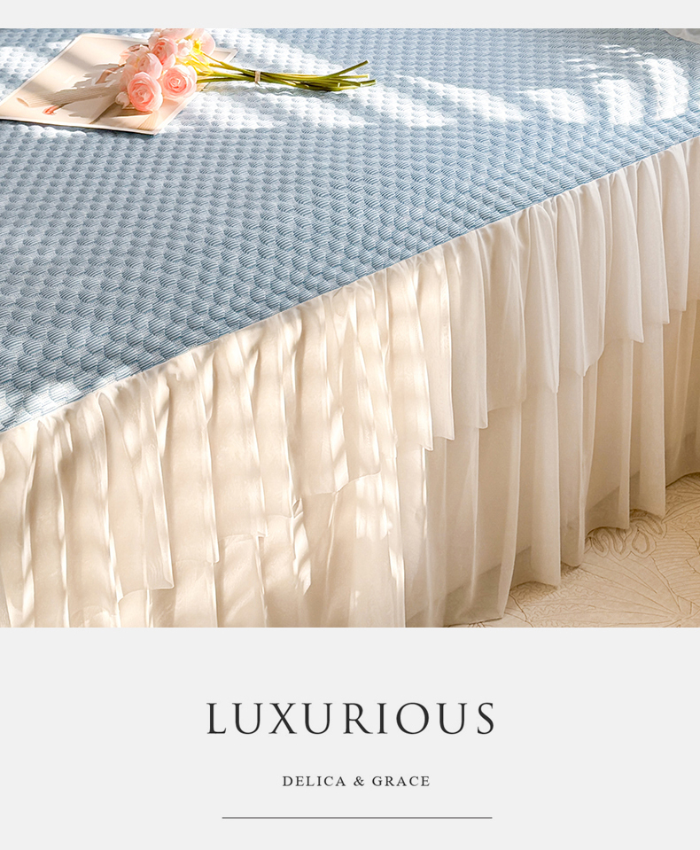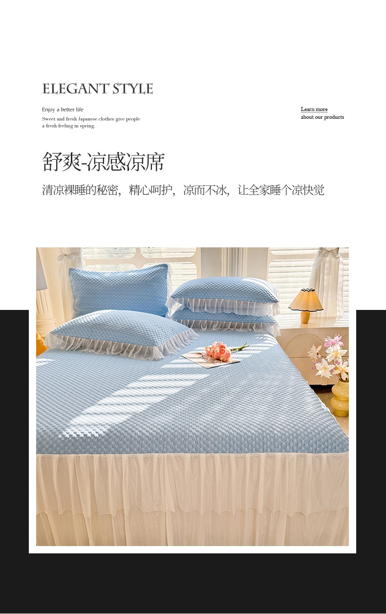 优贝 2025爆款凉感冰豆豆凉席三件套床裙款 天空蓝