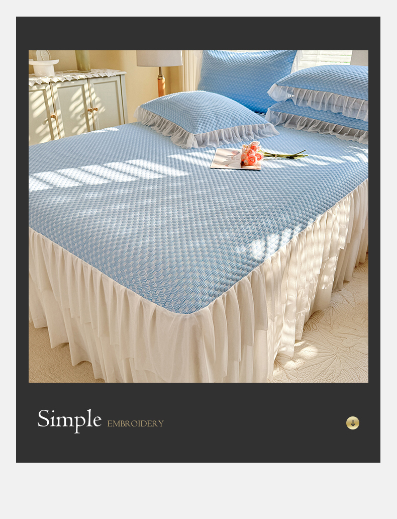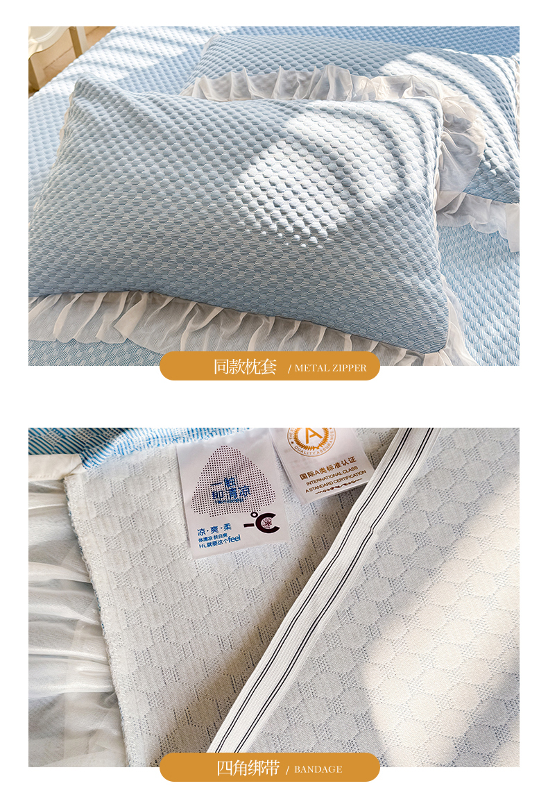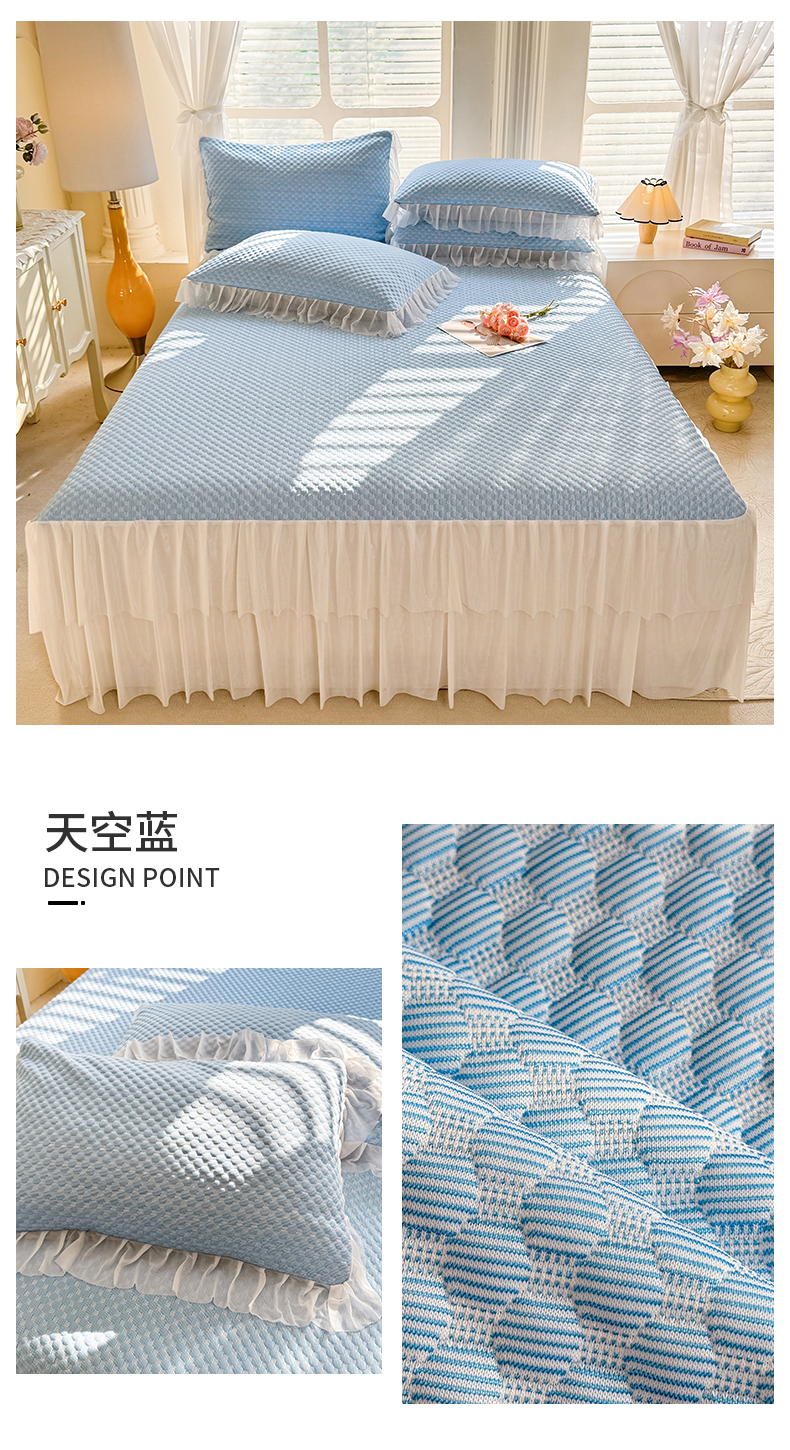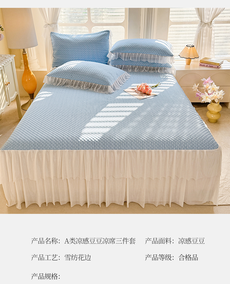 商品名称:优贝 2025爆款凉感冰豆豆凉席三件套床裙款 天空蓝