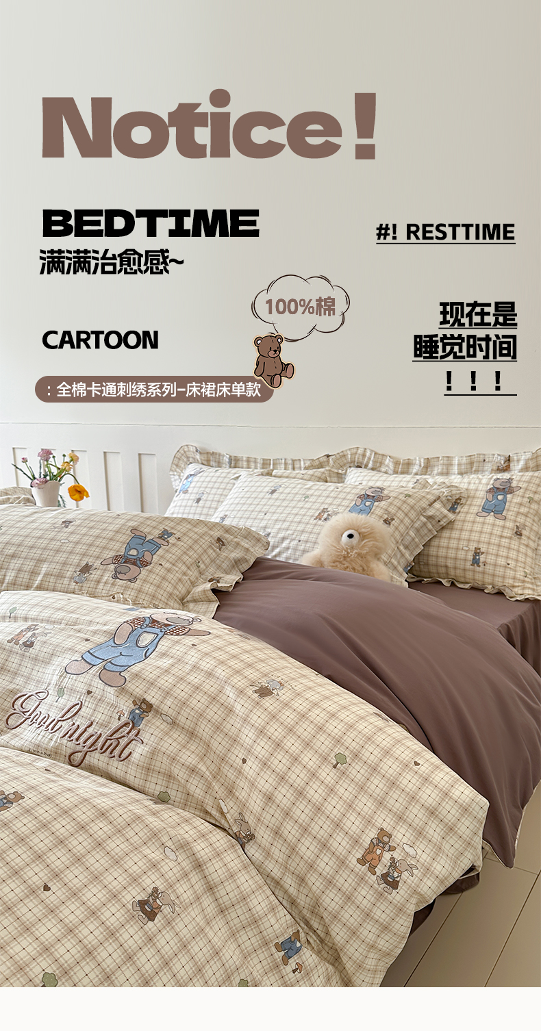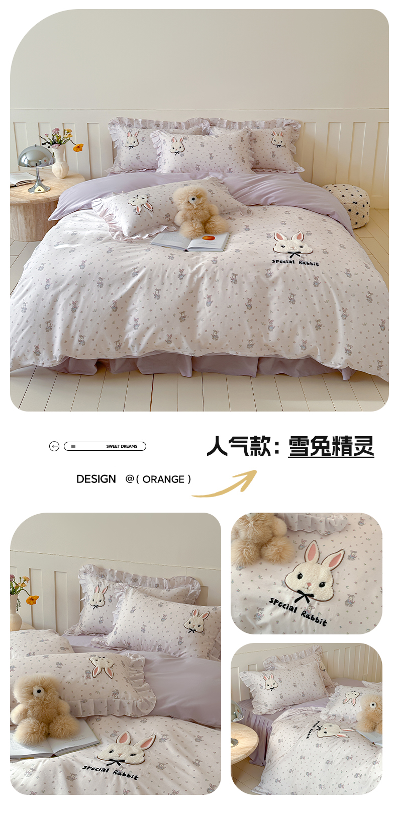 (总)卡巴伦家纺 2025新款全棉皱皱纱大版卡通数码印花款四件套一,洛可可兔-粉,班尼的花园-粉,班尼的花园-黄,漂亮的领结-绿,漂亮的领结-米白,熊猫噗噗-绿,樱桃真甜-奶白