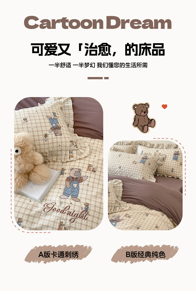 (总)卡巴伦家纺 2025新款全棉皱皱纱大版卡通数码印花款四件套二,酥酥熊-粉,腊肠总裁,生日万岁-粉,生日万岁-蓝,生日万岁-米,酥酥熊-米黄,汪汪掀被-灰,汪汪掀被-绿,小狗没烦恼