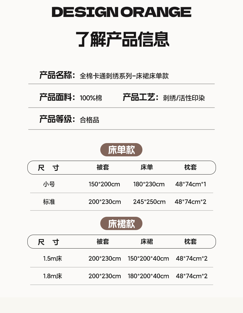1.8m床裙款:被套200*230床裙180*200+40枕套48*74*2只