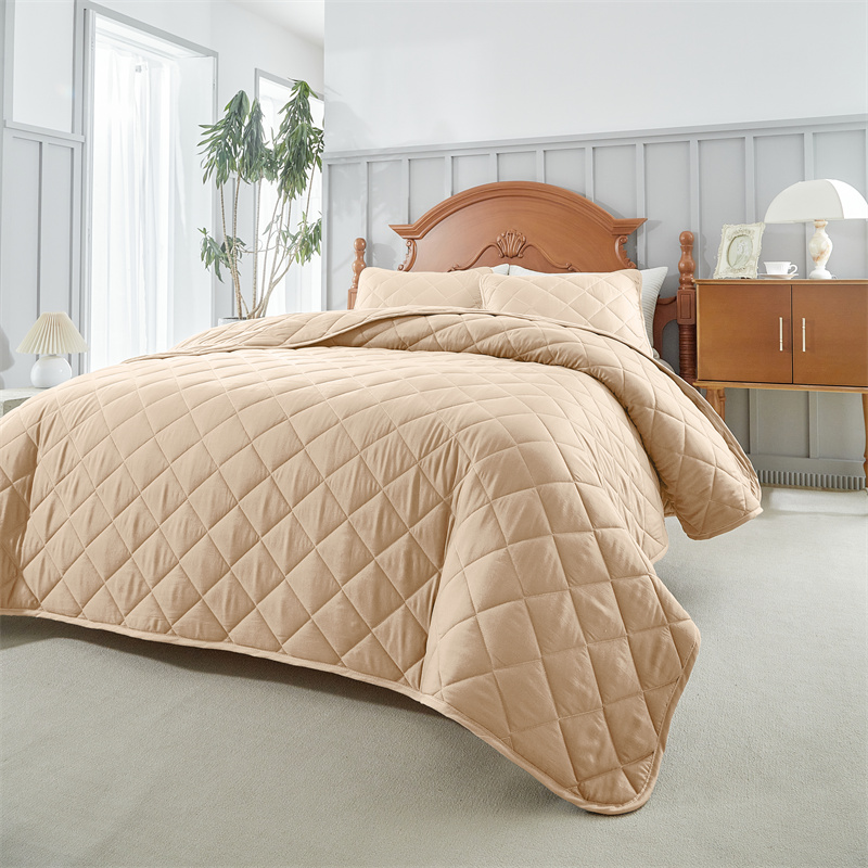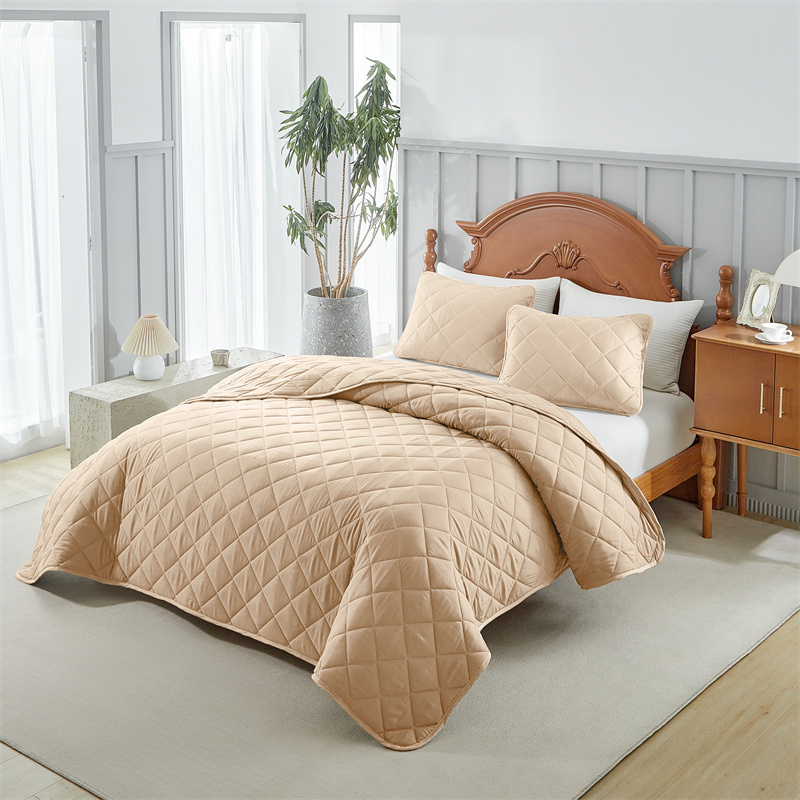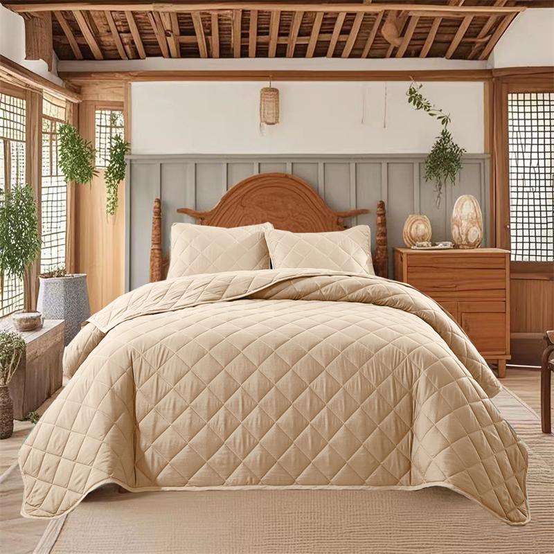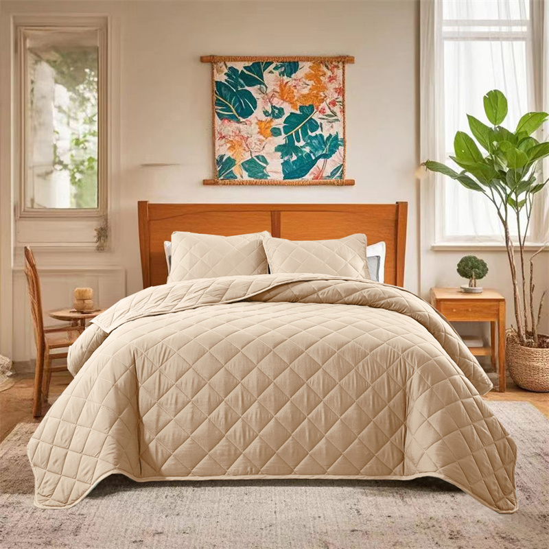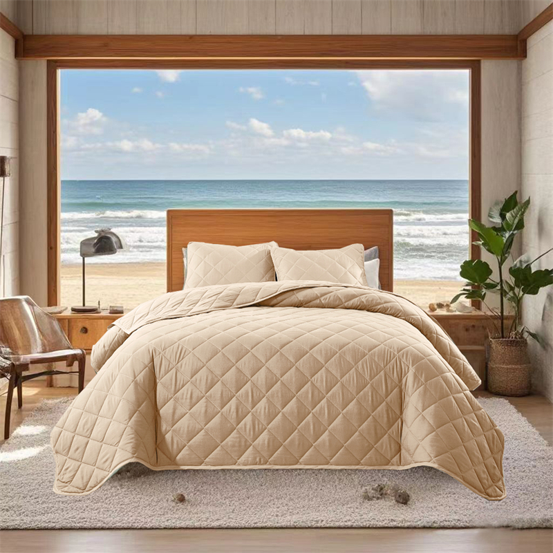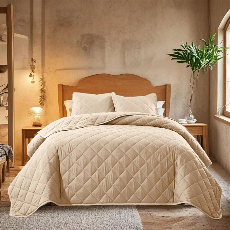 温宁2025新款跨境外贸专供斜方格床盖 米色