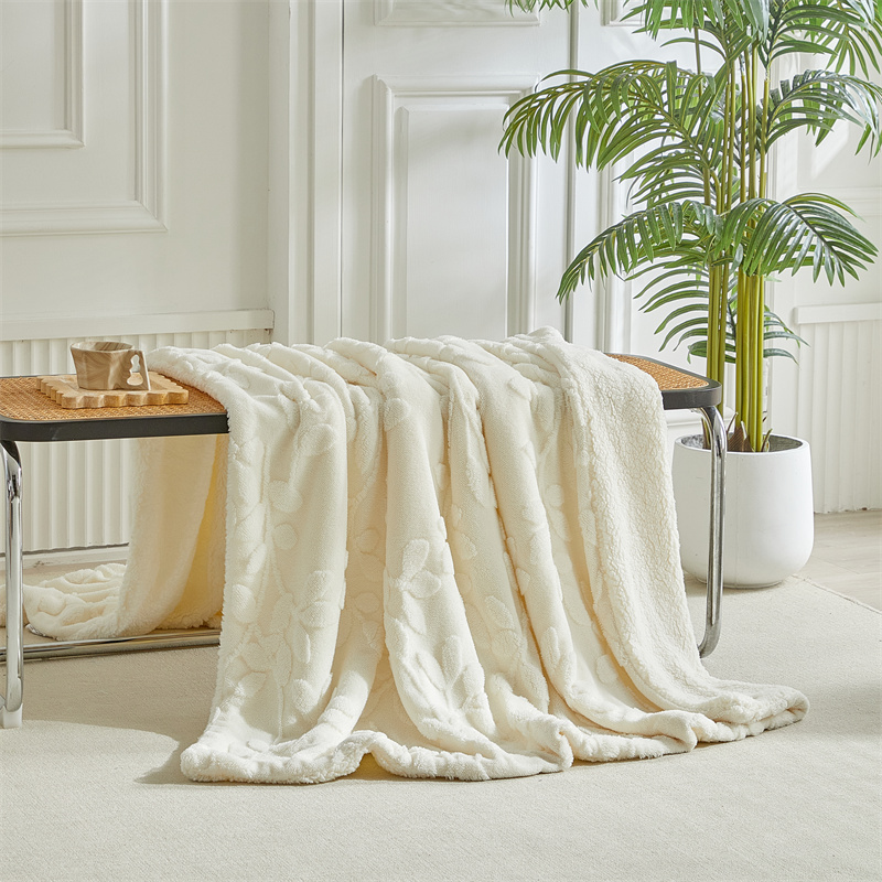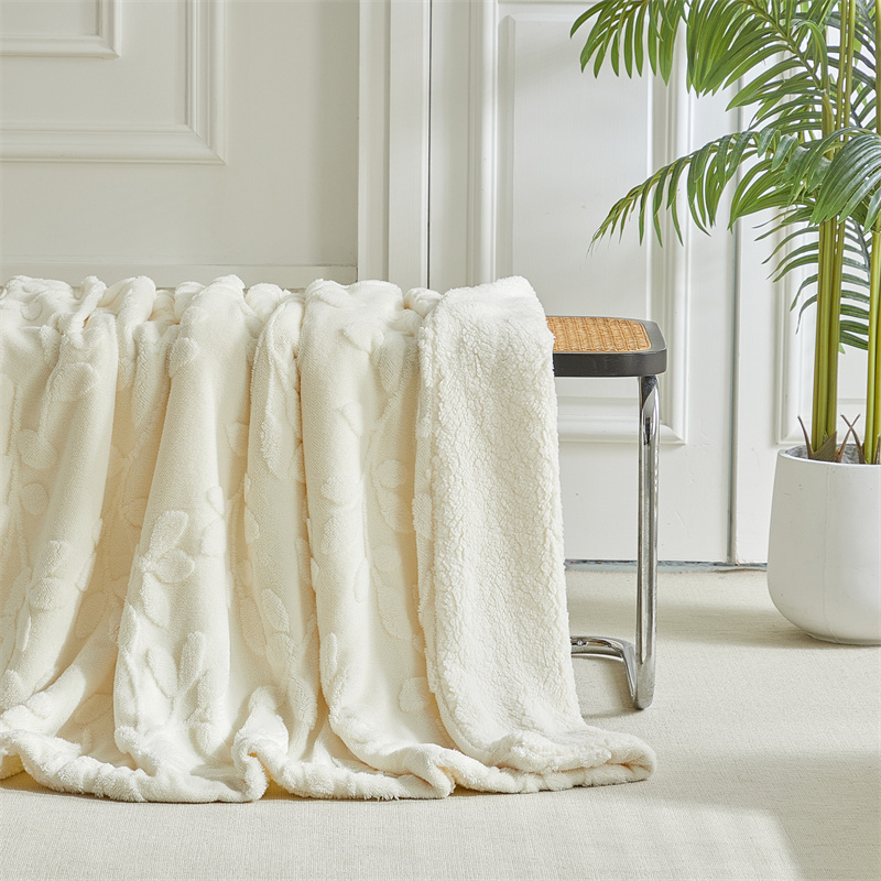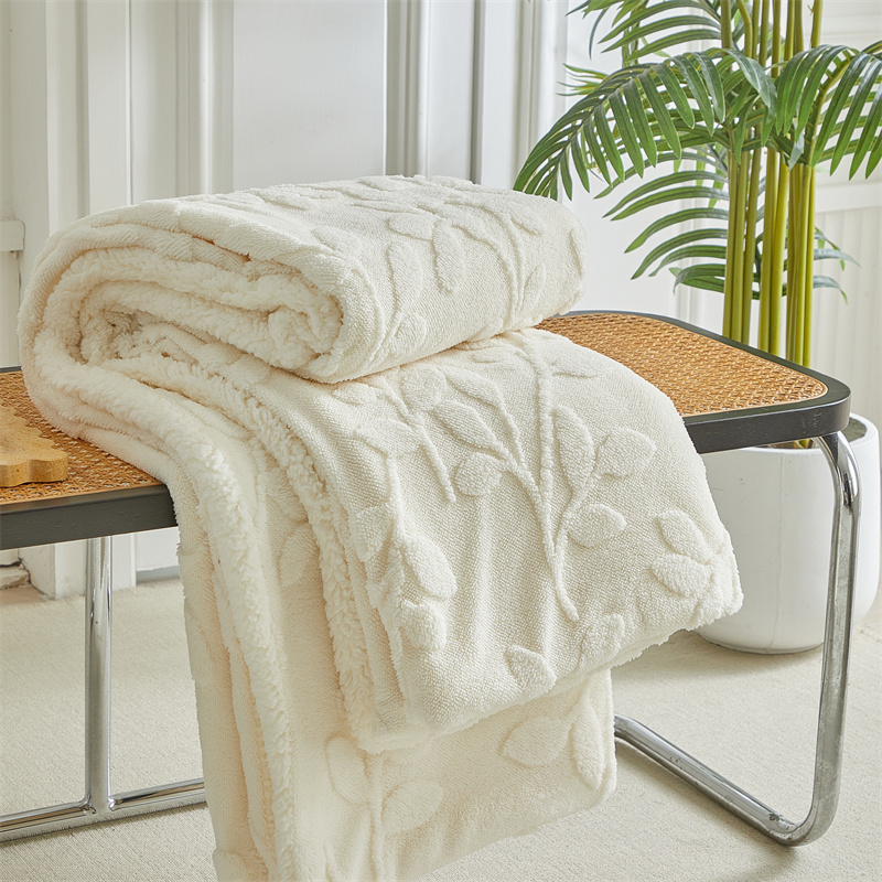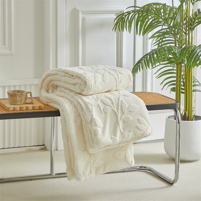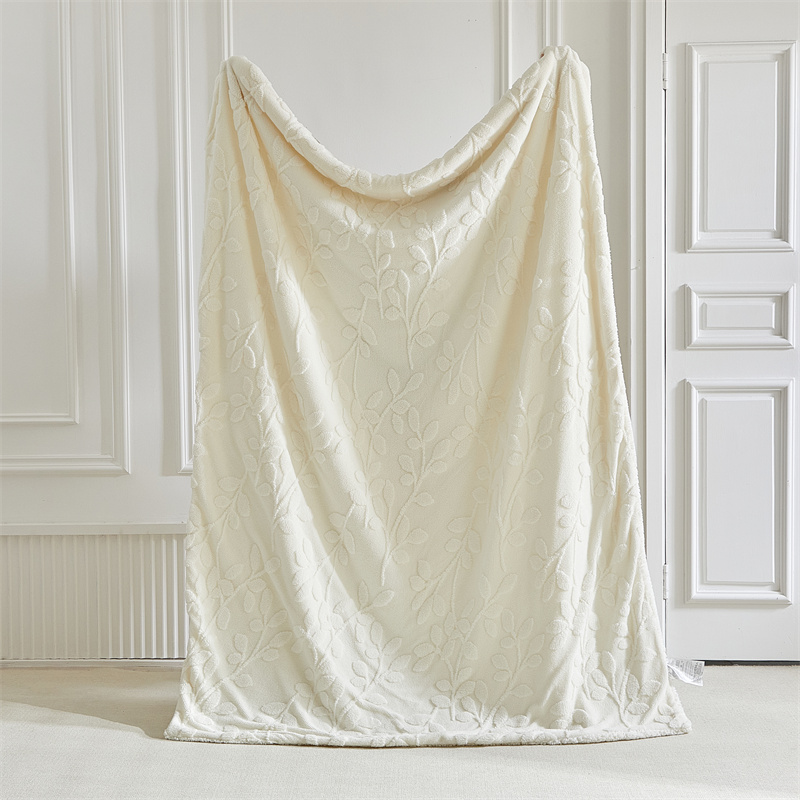 温宁2025新款跨境外贸专供树叶毯 树叶-米白