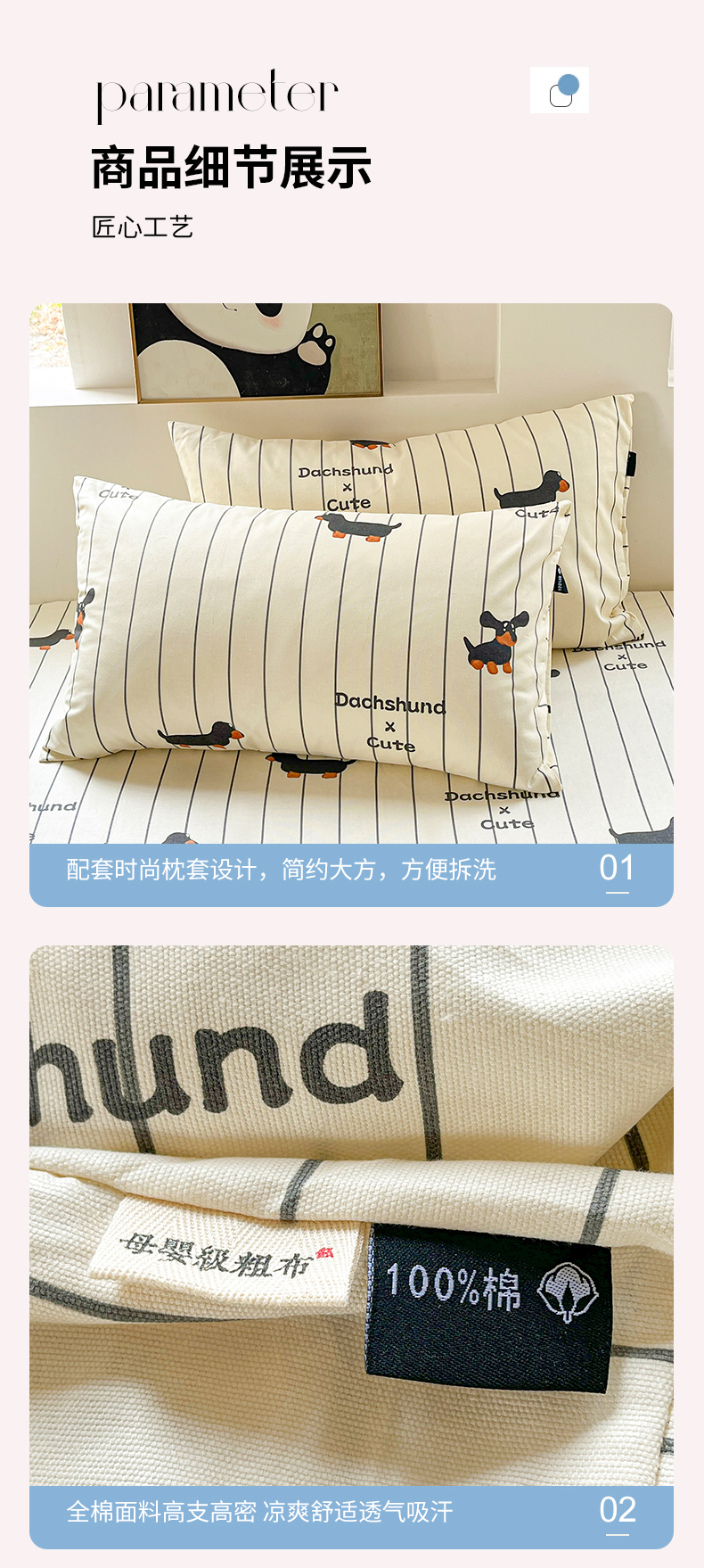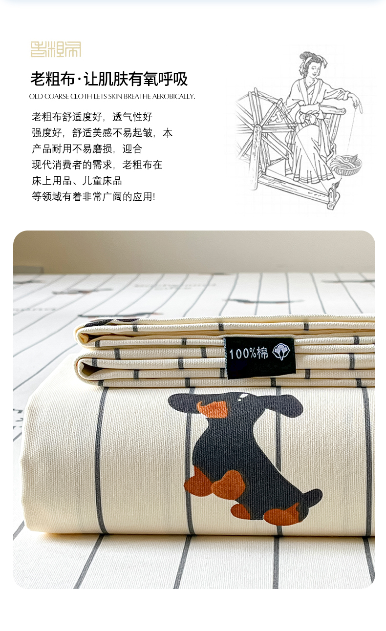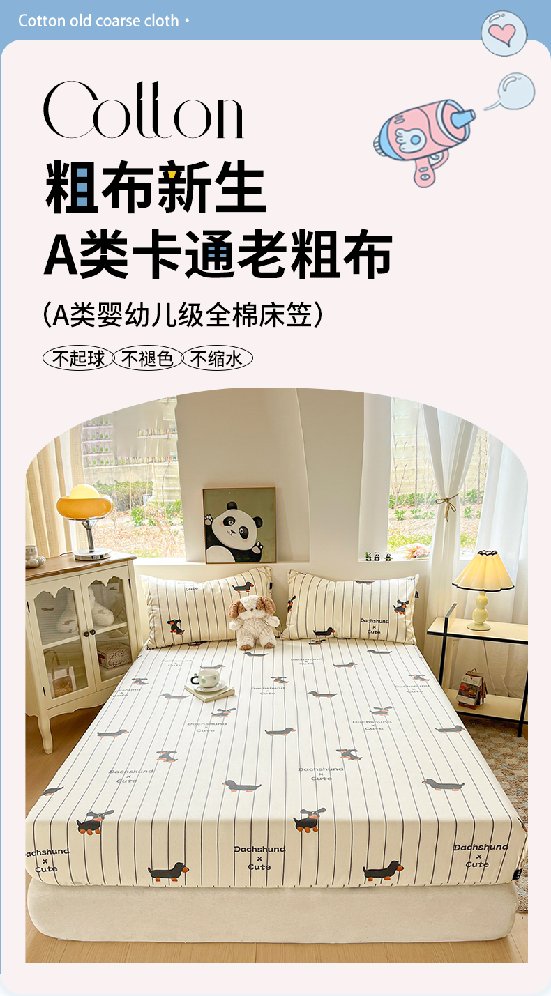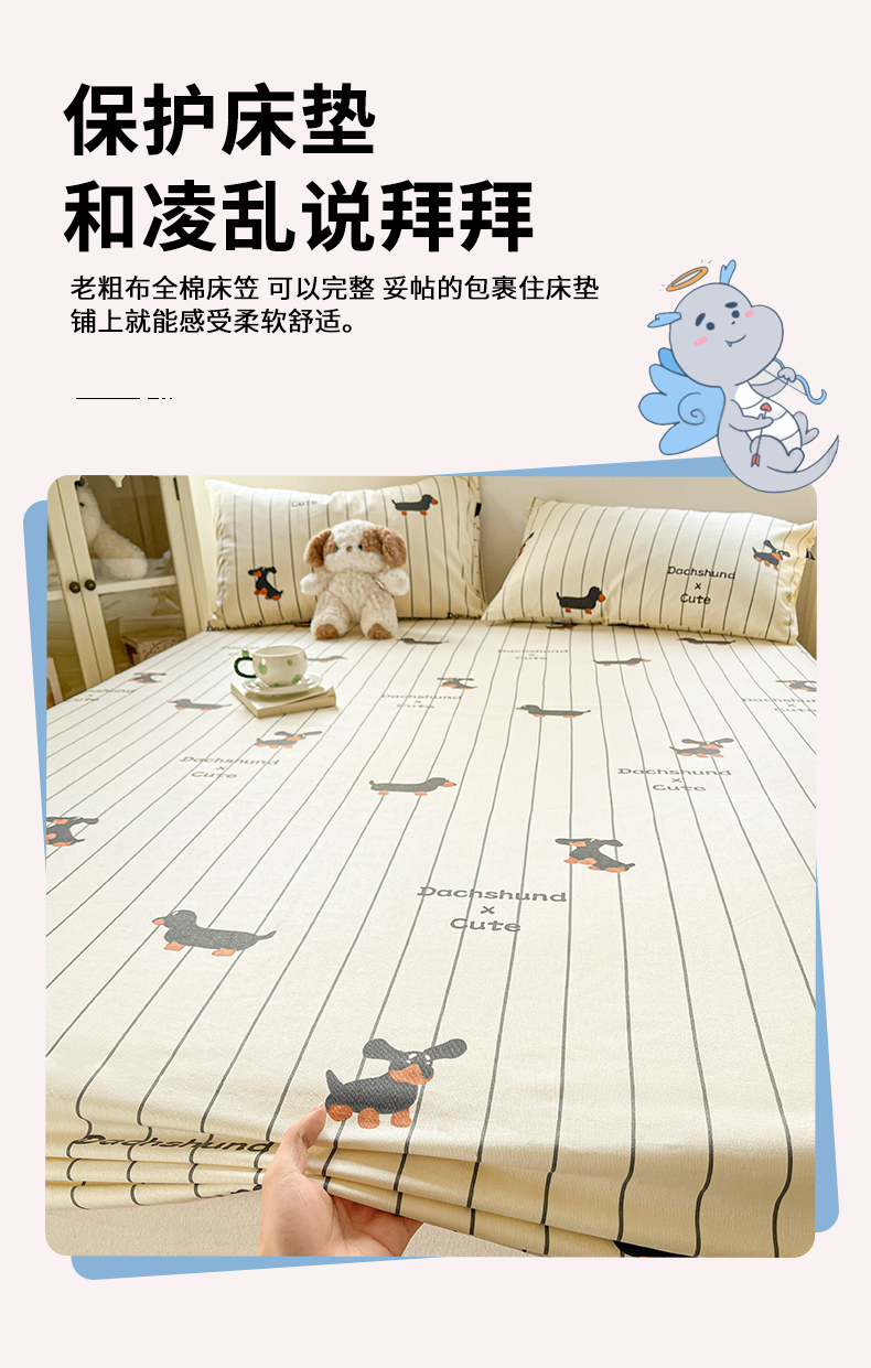 • 91家纺网 家纺一手货源 找家纺 鑫钰 2025新款纯棉老粗布单床笠-卡通系列 腊肠狗