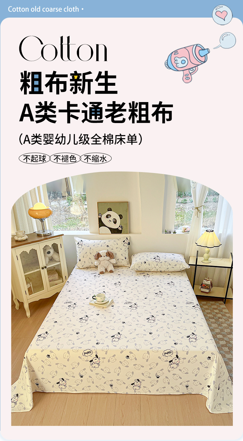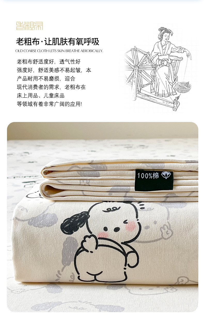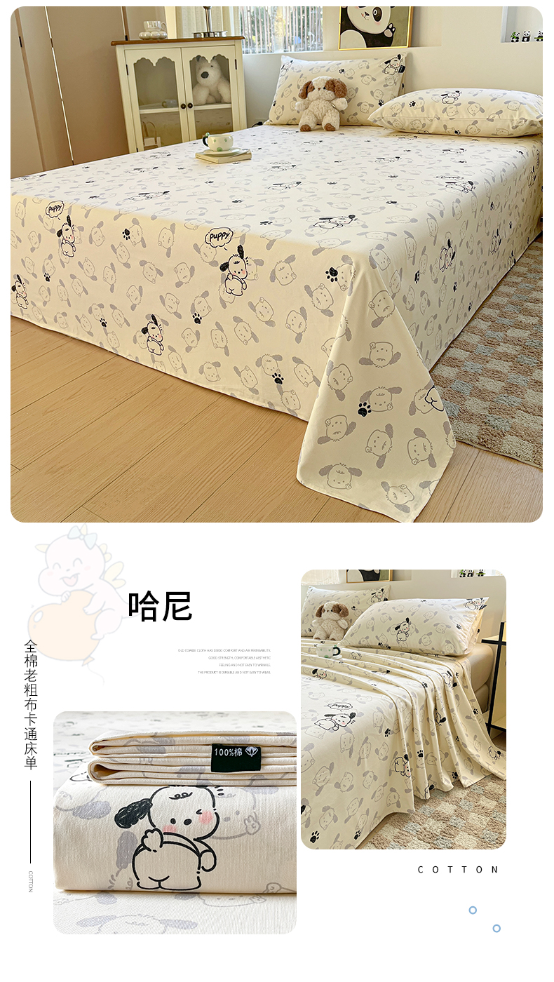 商品名称:鑫钰 2025新款纯棉老粗布单床单-卡通系列 哈尼