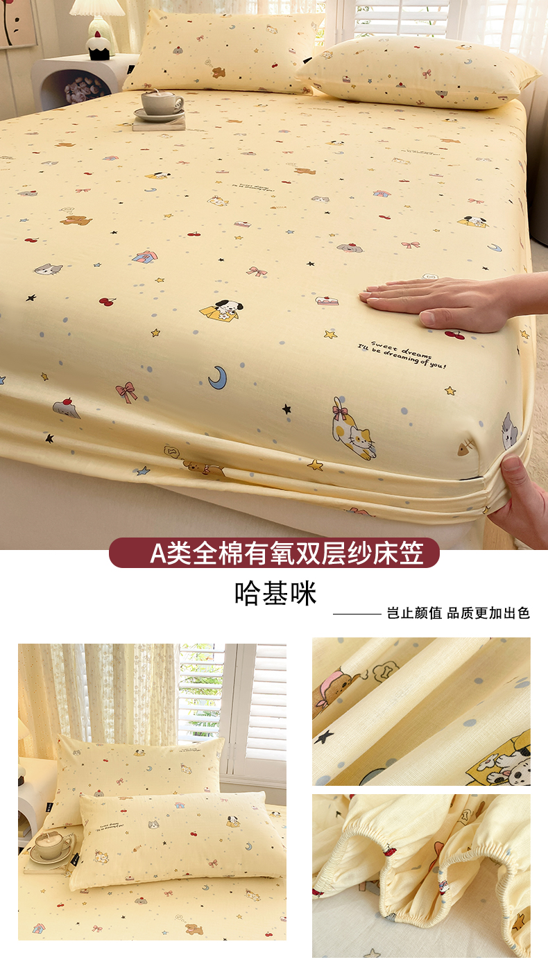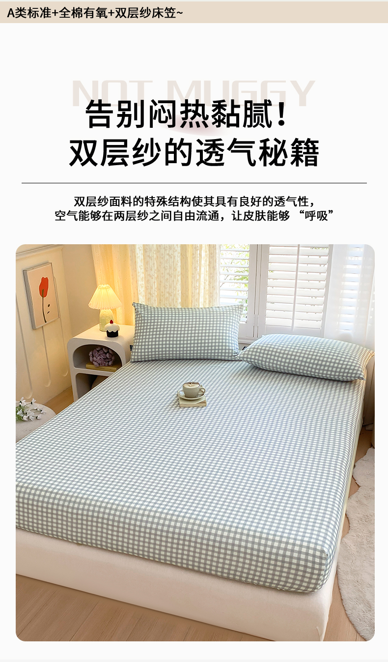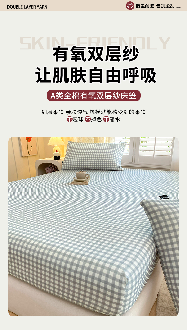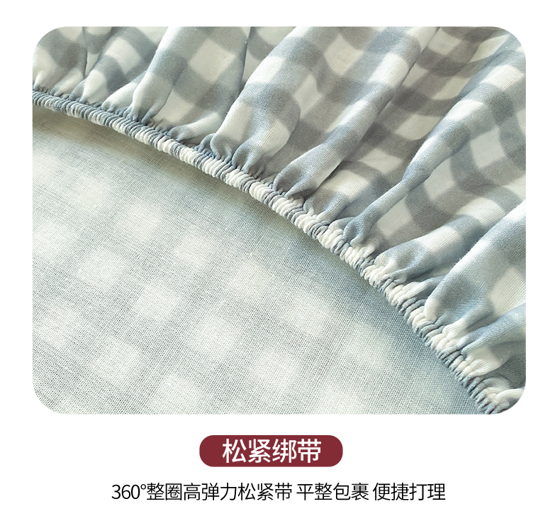 鑫钰 2025新款全棉有氧双层纱床笠 格于灰