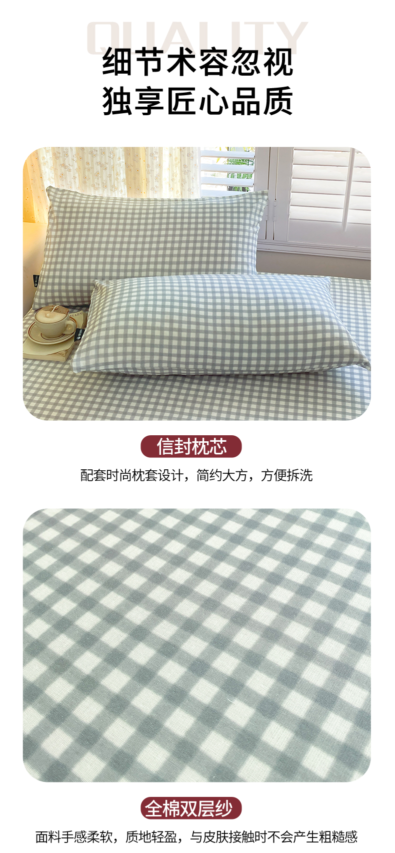 当前位置: 91家纺网 > 商品网购 > 床上用品 > 床笠 > 鑫钰 2025新款全棉有氧双层纱床笠 格于灰