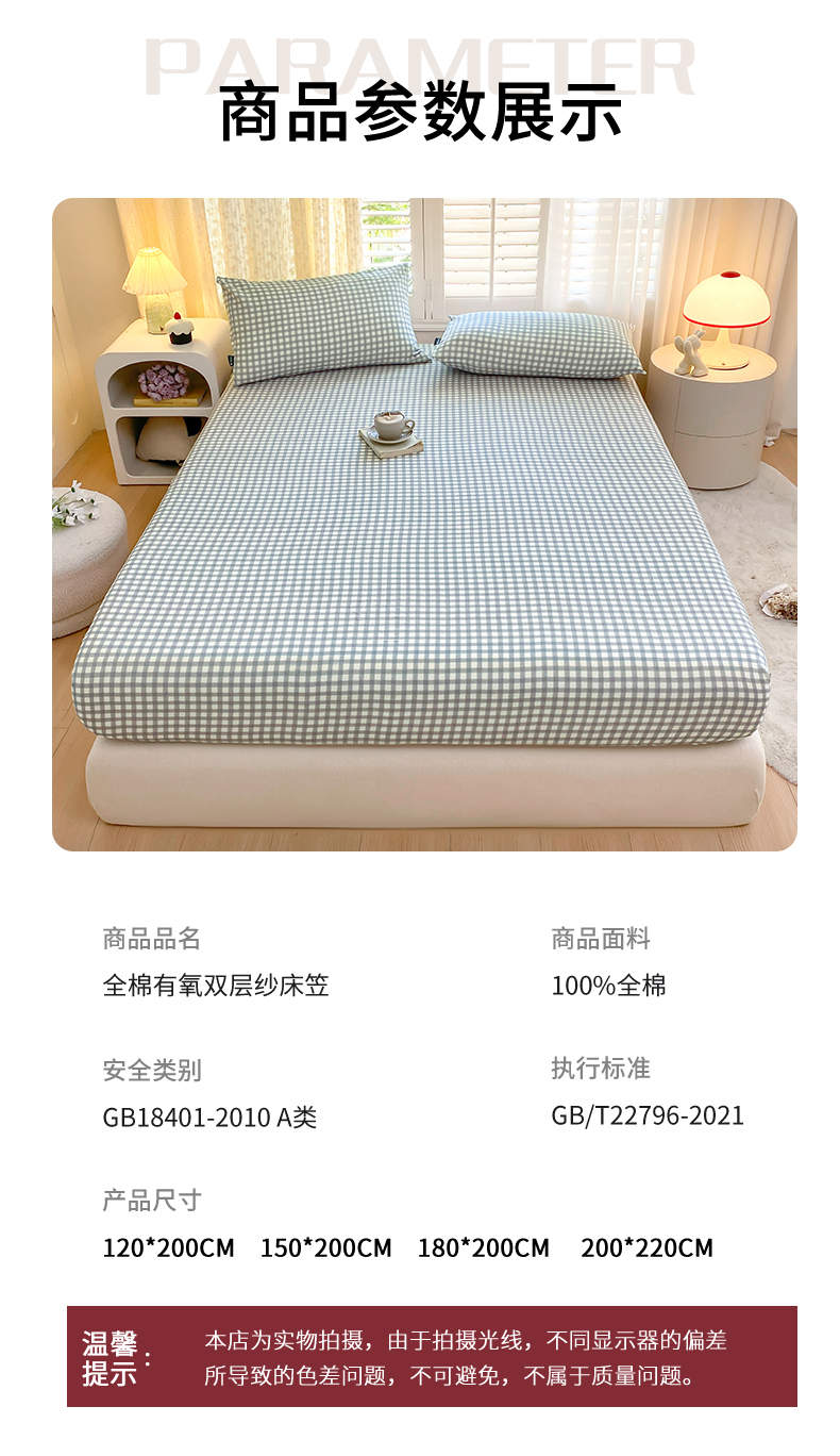 • 91家纺网 家纺一手货源 找家纺 鑫钰 2025新款全棉有氧双层纱床笠 格于灰
