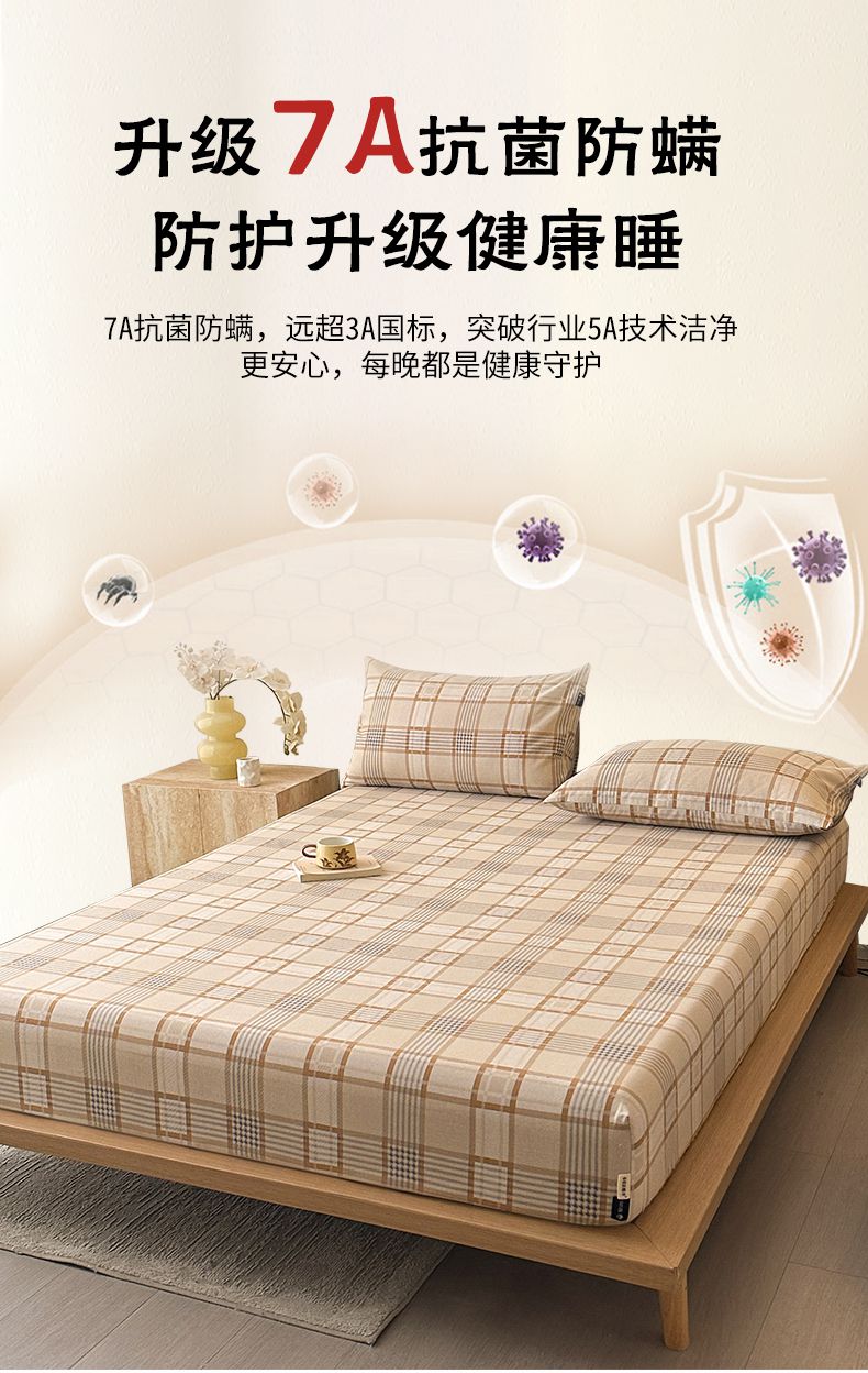 (总)鑫钰2025新款防水加厚夹棉原棉床笠防滑隔脏床垫套保护罩,简格-香槟驼,简格-宝石蓝,简格-抹茶绿,简格-绅士灰,简格-优雅粉,简格-月光白