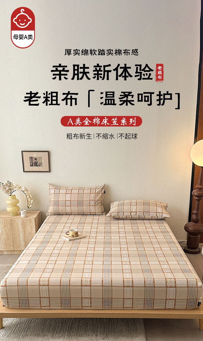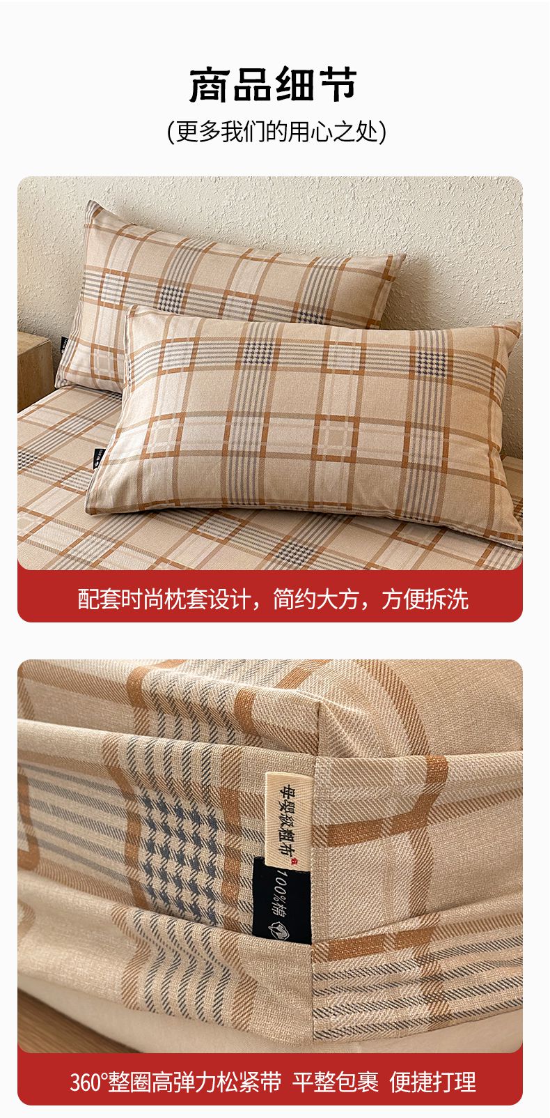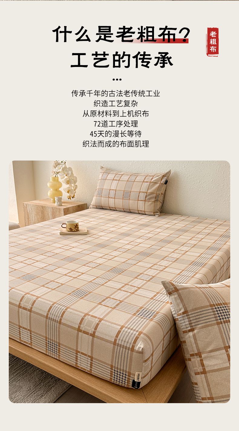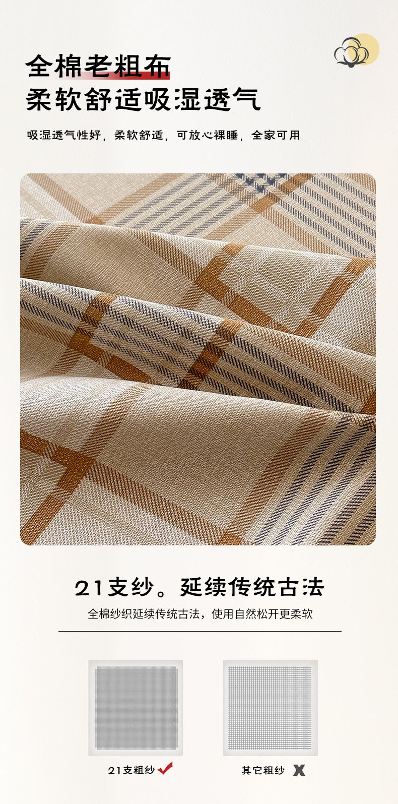 商品名称:鑫钰 2025新款老粗布床单床笠系列-格纹系列 格韵咖