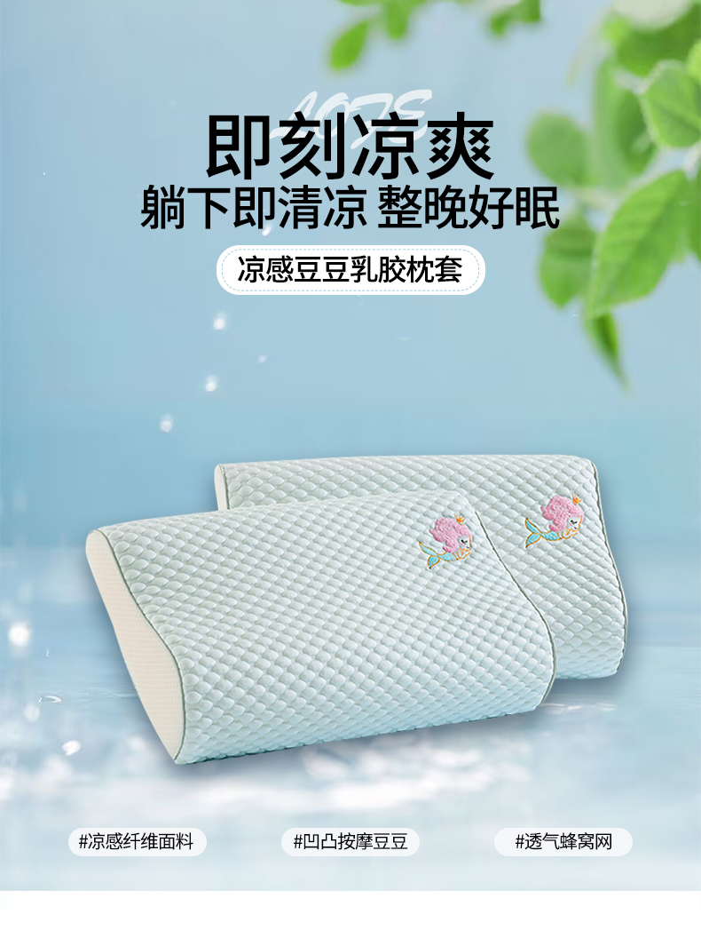 商品名称:小猫派 2025新款夏季冰丝凉感豆豆乳胶枕套清凉儿童记忆枕芯套 单枕套–粉色美人鱼
