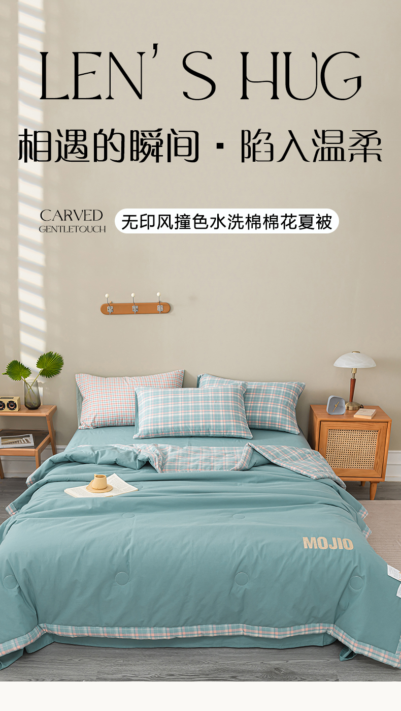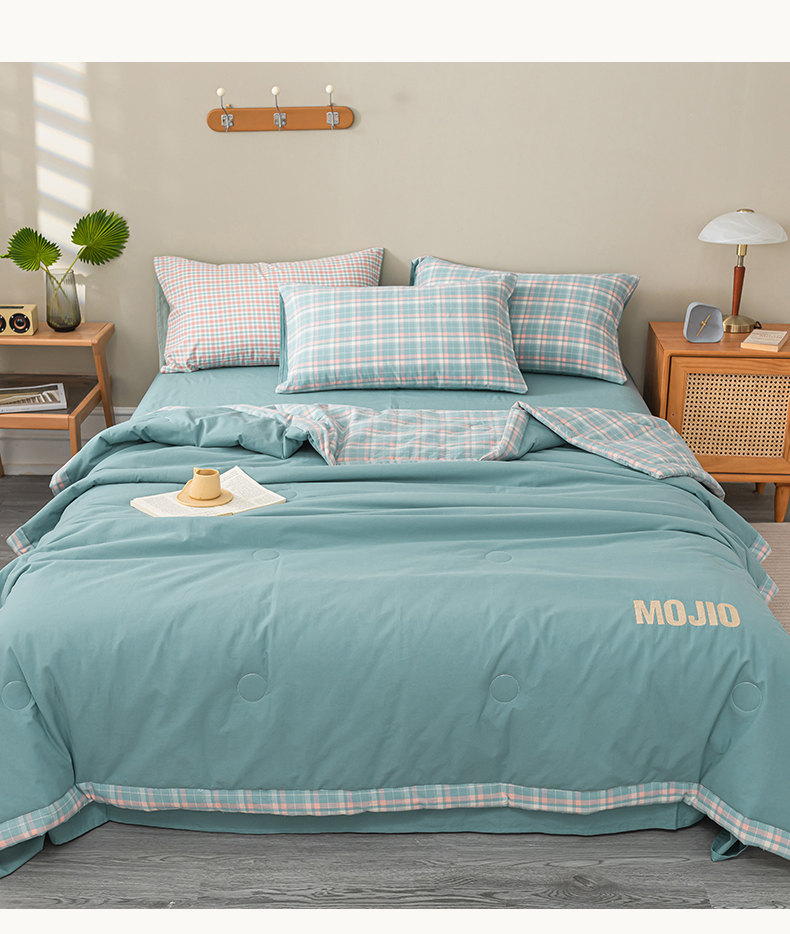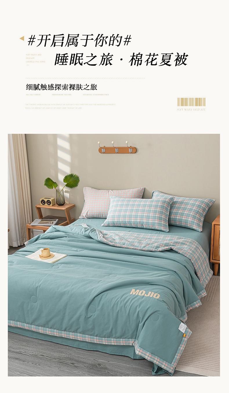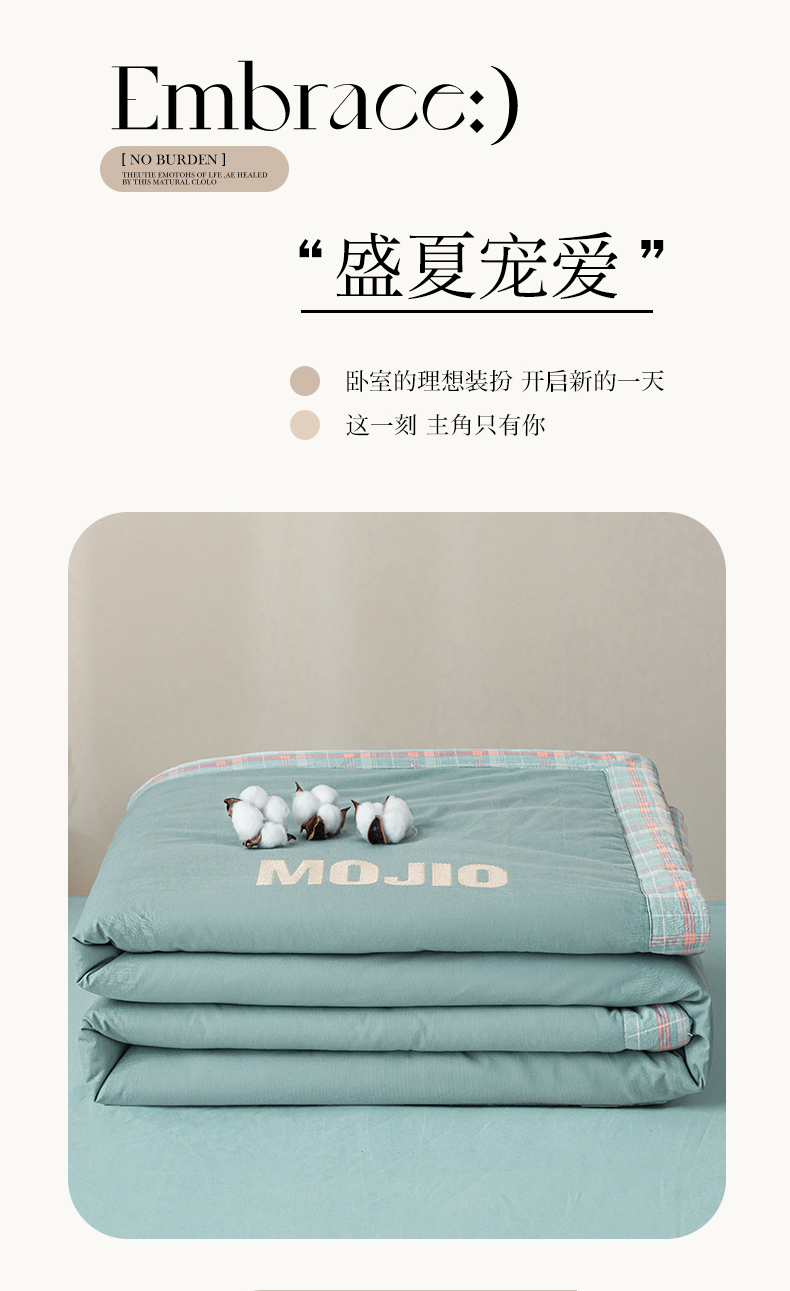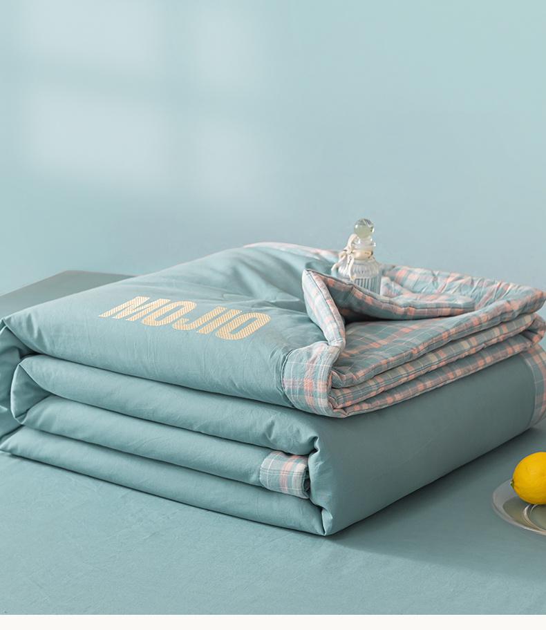 商品名称:水云缦2025新款字母烫画无印风50%棉花被(填充100克每平方) 天蓝色