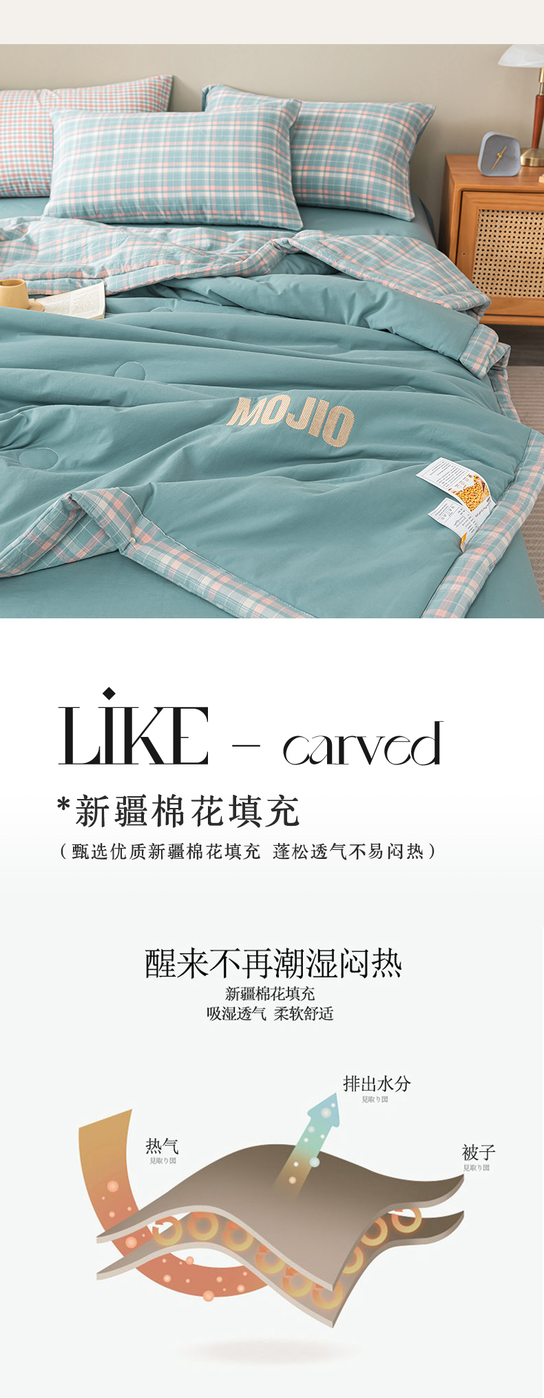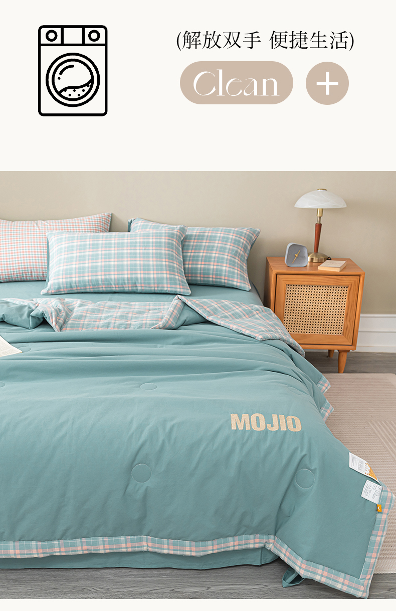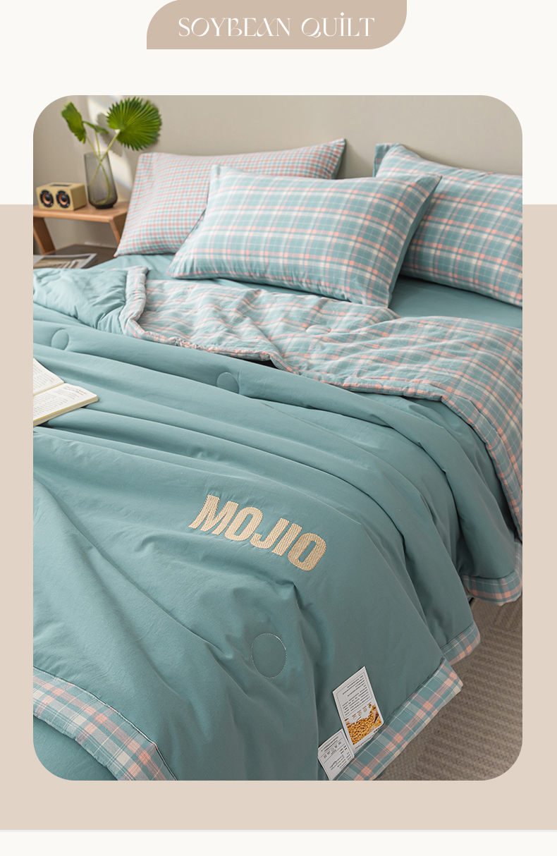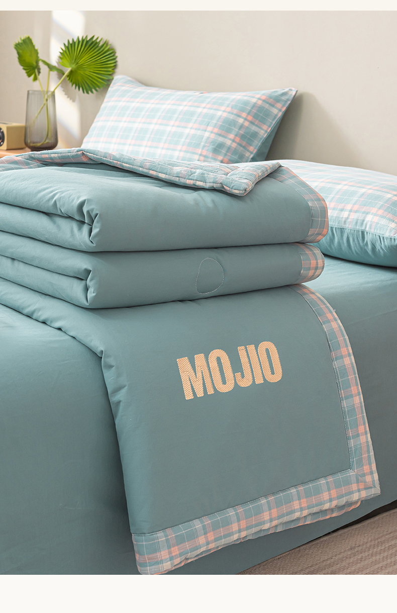 商品名称:水云缦2025新款字母烫画无印风50%棉花被(填充100克每平方) 天蓝色