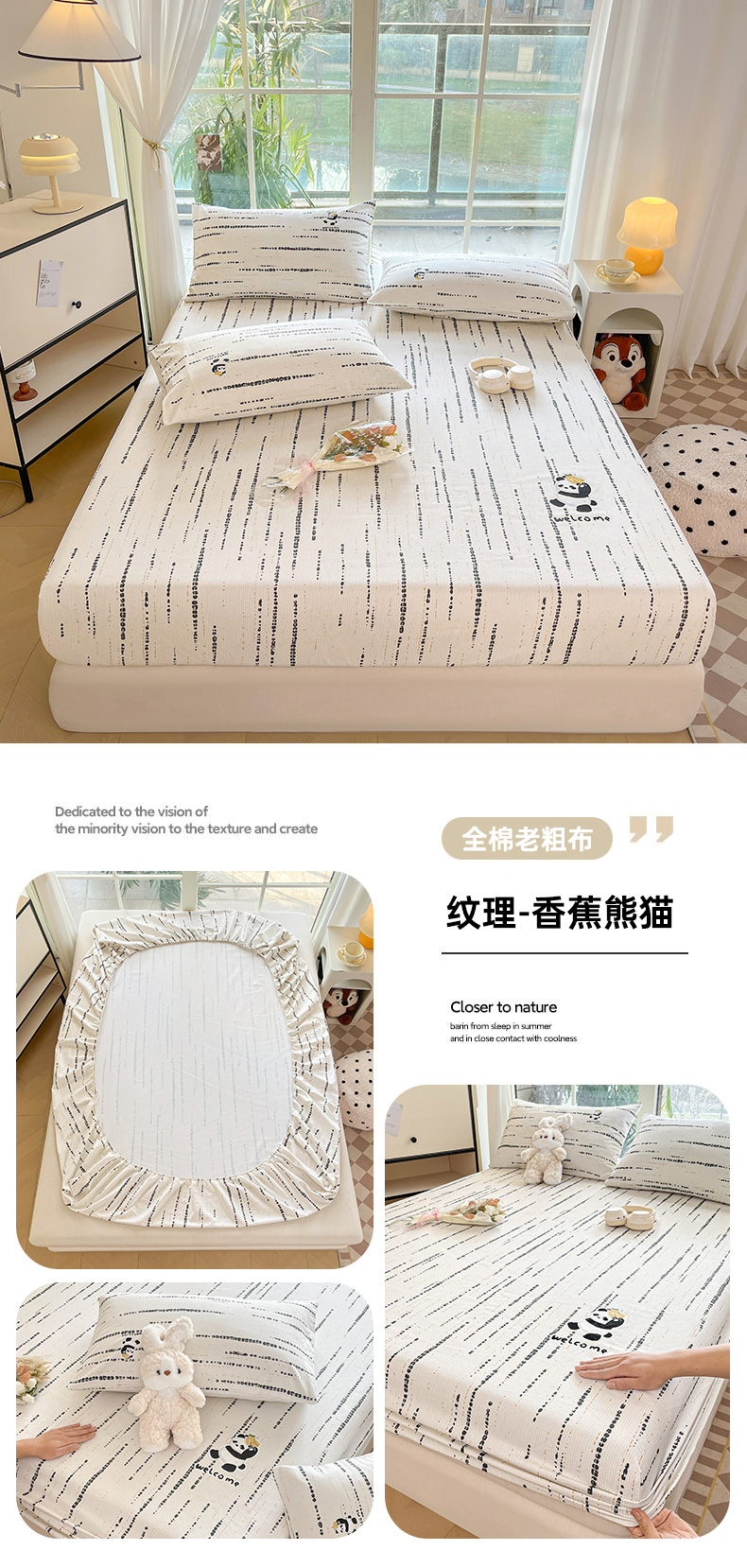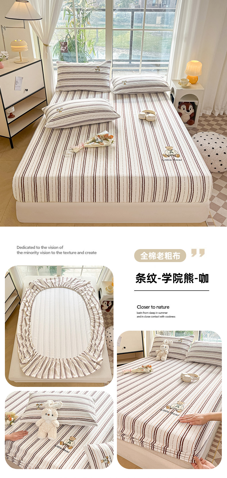 博雅 2025新款全棉老粗布烫画床笠系列 条纹-Bunny兔