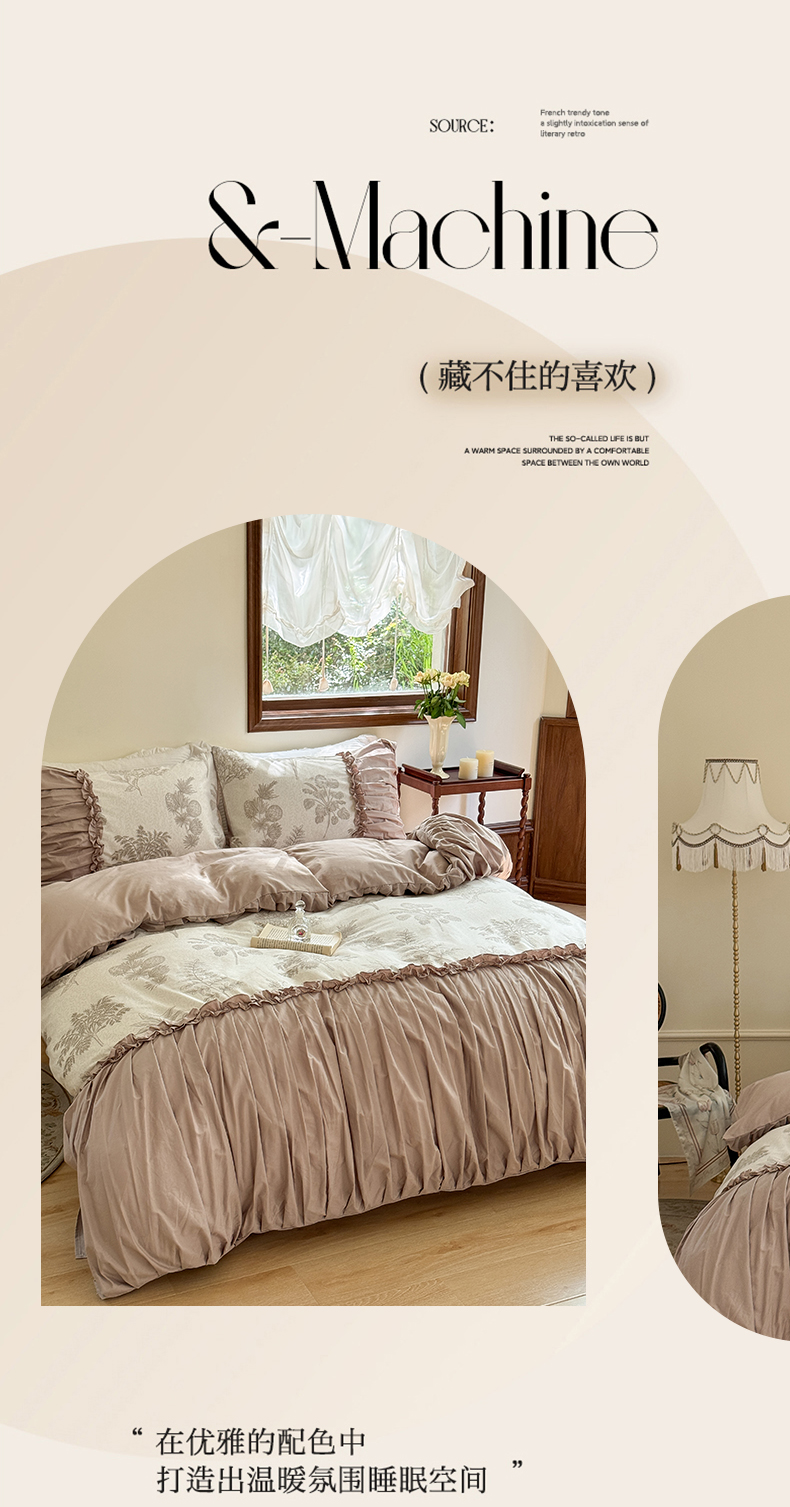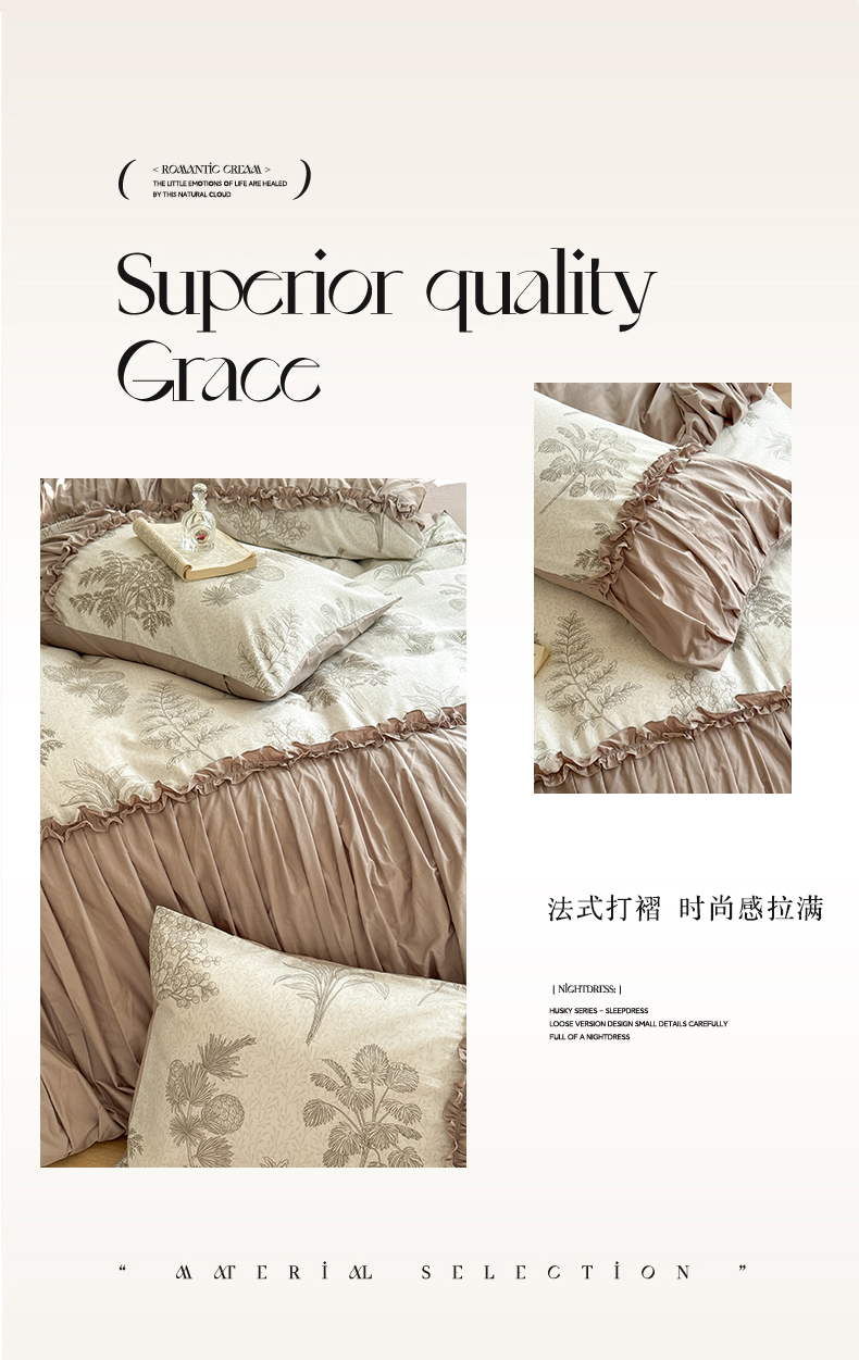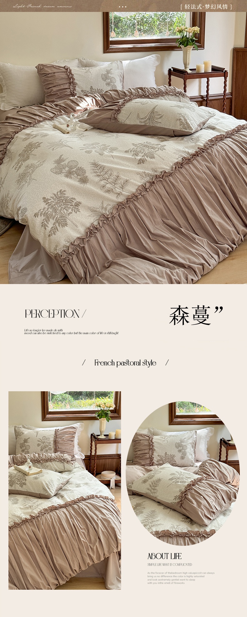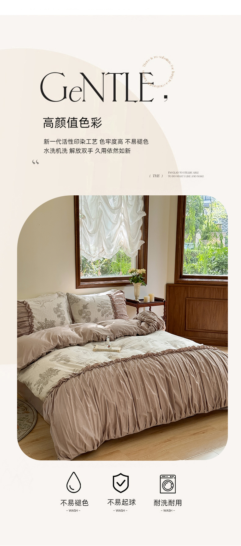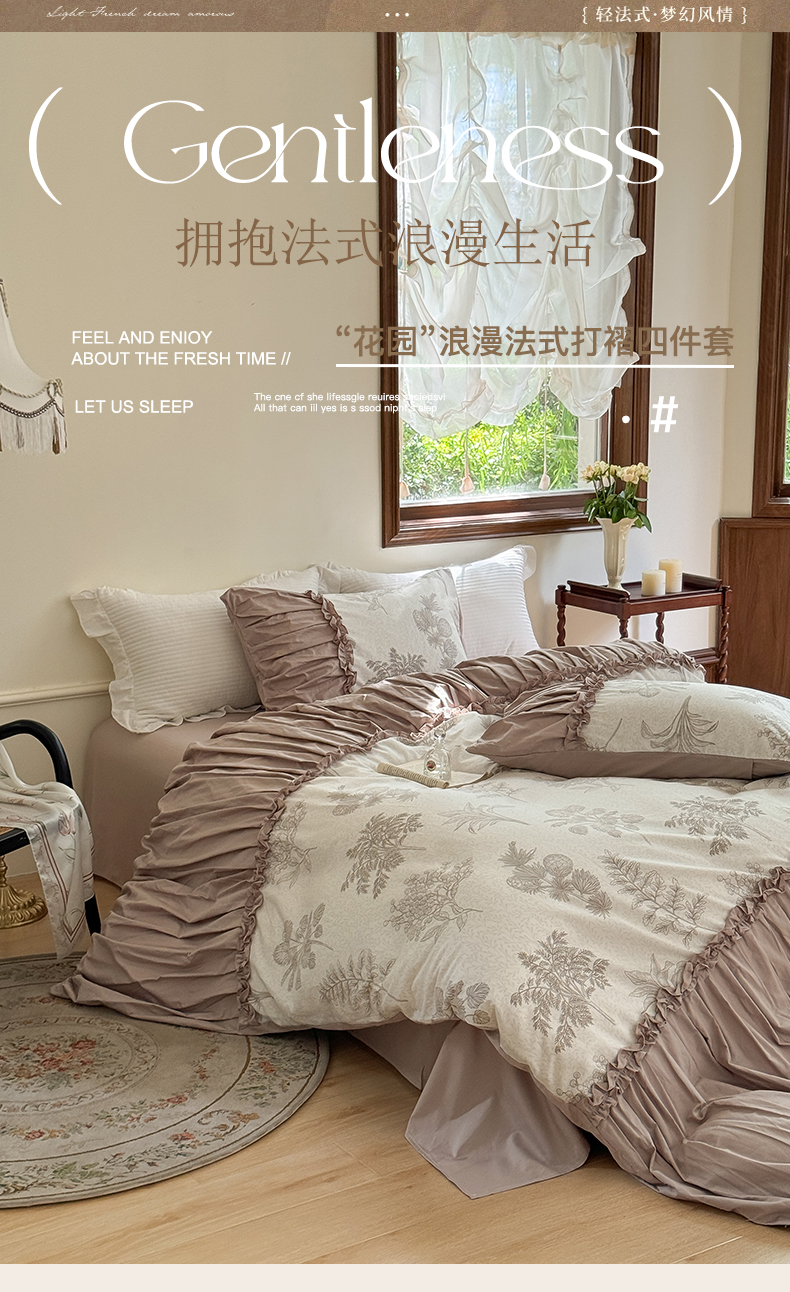商品名称:TT.one 塔塔家居 2025新款全棉法式打褶印花四件套-花园派对 森蔓