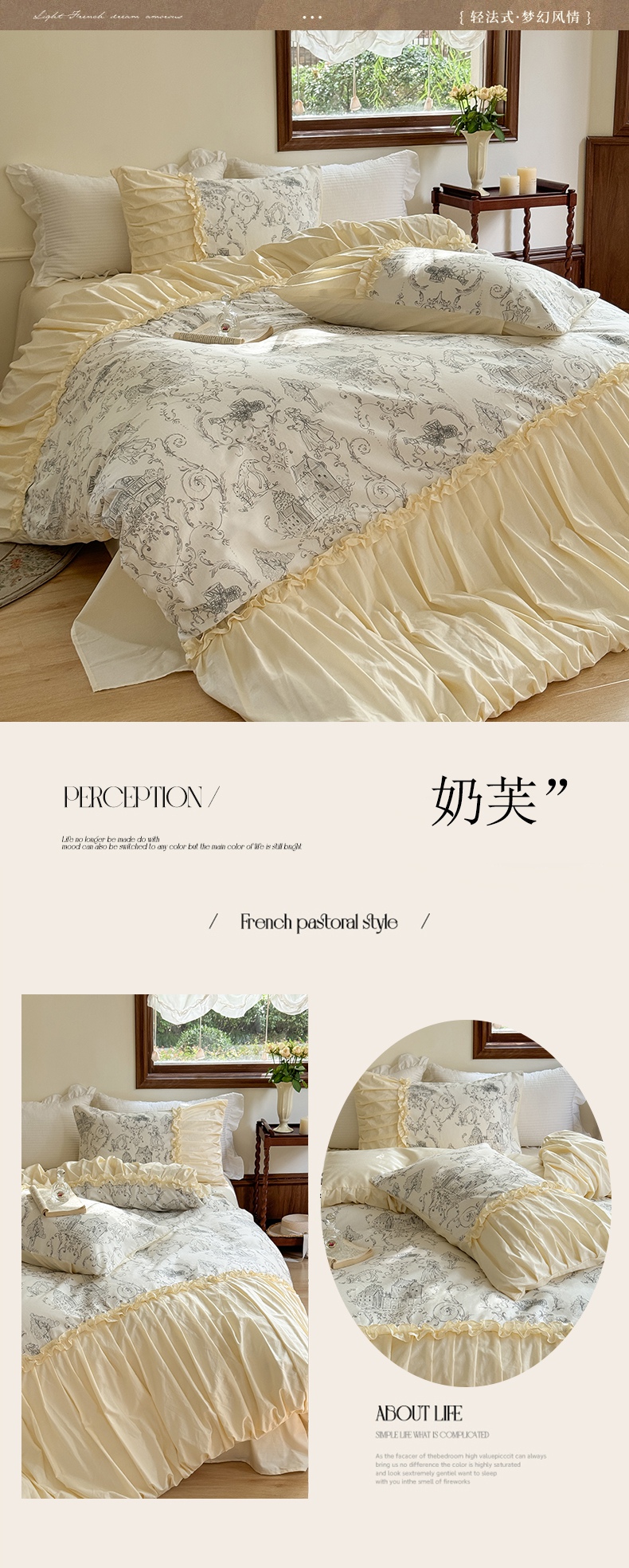 (总)塔塔 2025新款洛丽塔全棉拼接嵌边打褶四件套,蛋糕小熊,甜心派对
