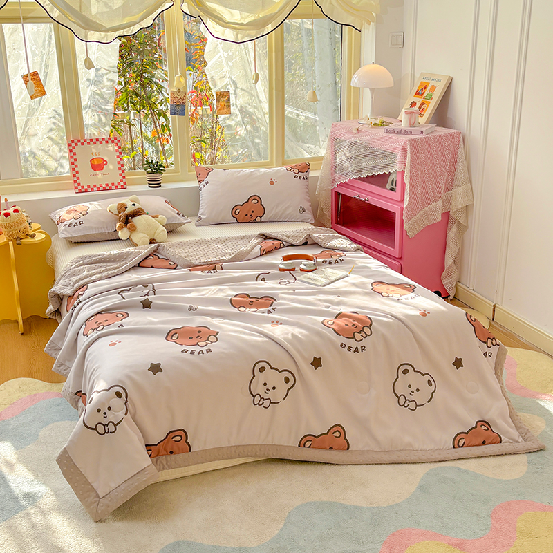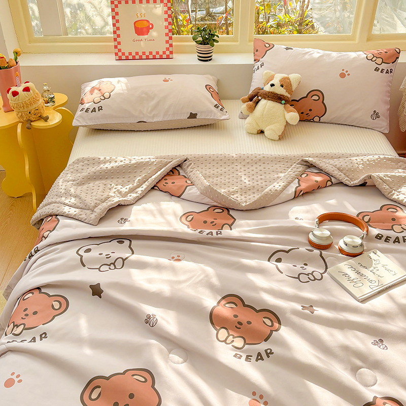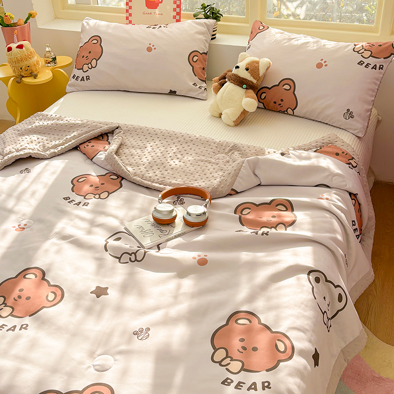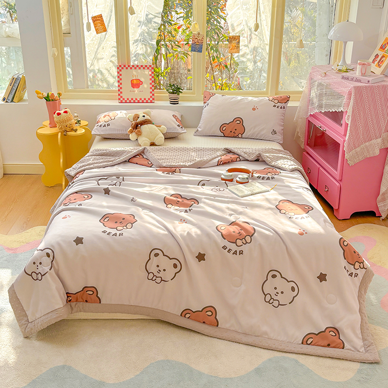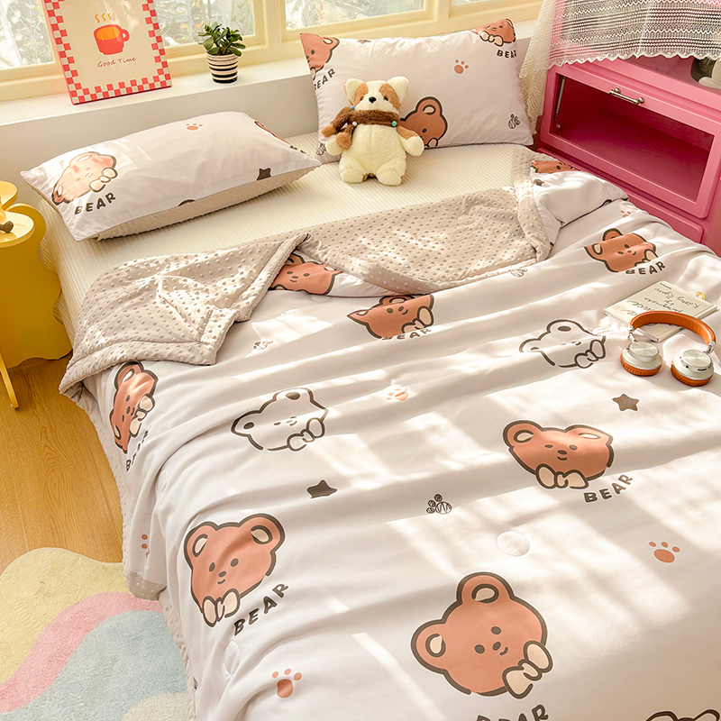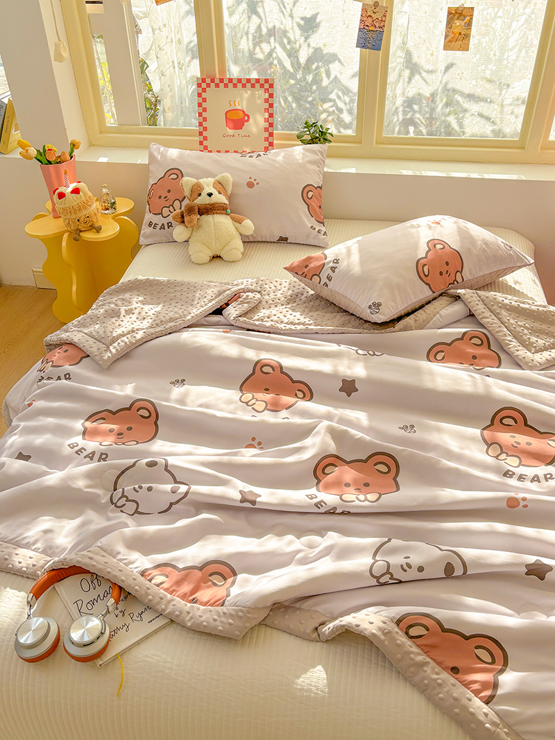 恒畅 2025新款A类水洗棉印花豆豆被抗菌夏被夏凉被空调被 肯尼熊熊