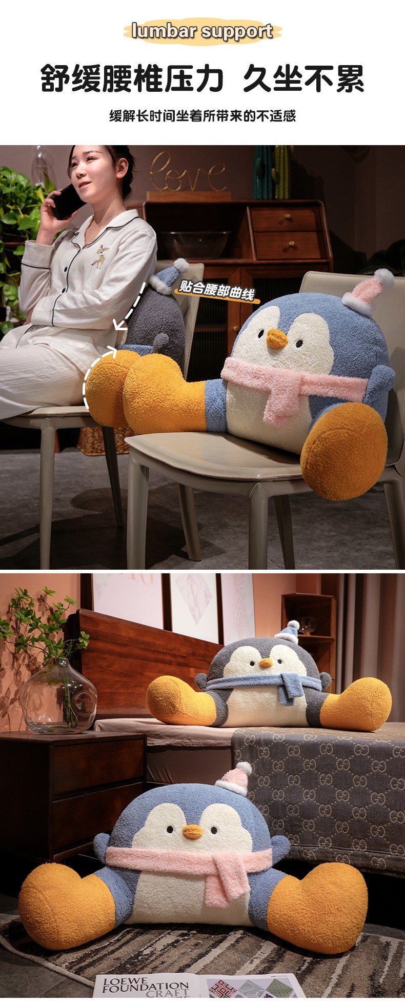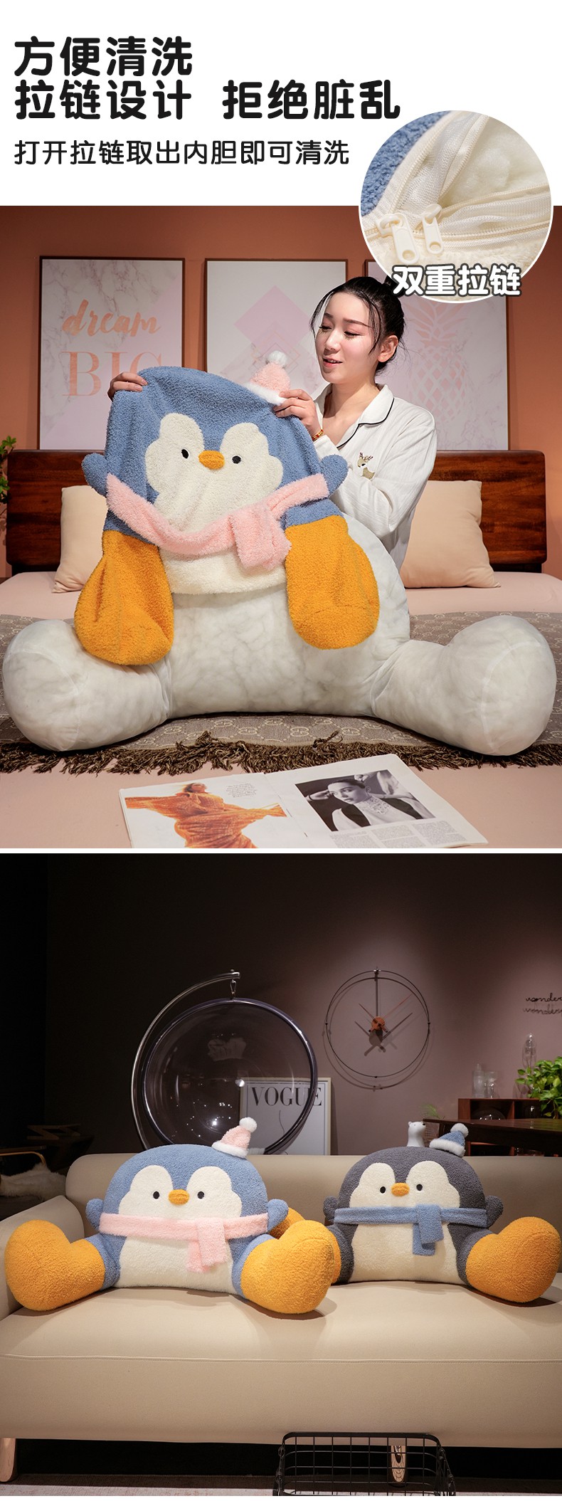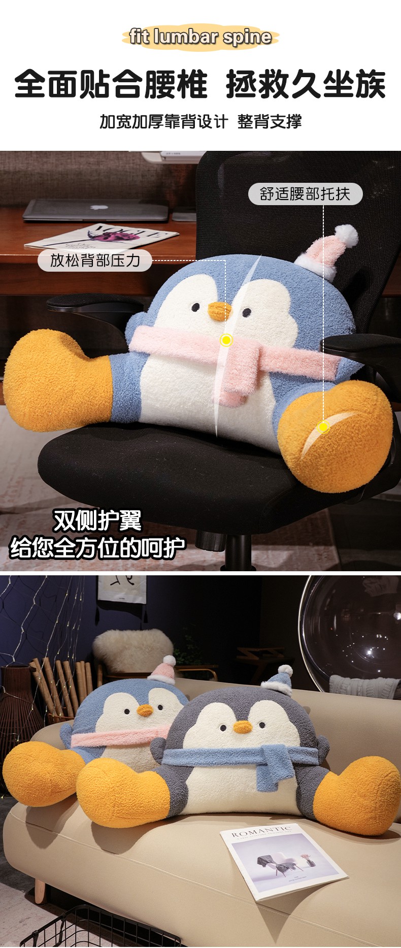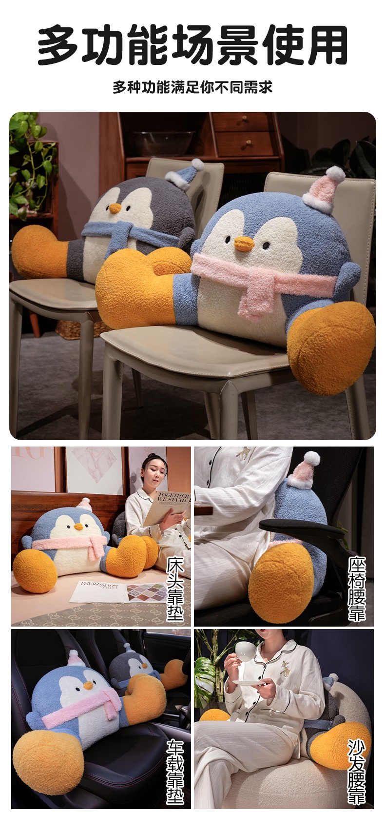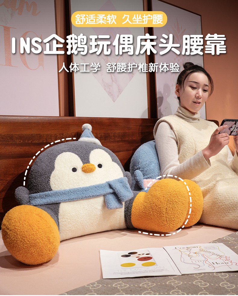(总)仟亿莱 2025新款INS企鹅拥抱式床头腰靠