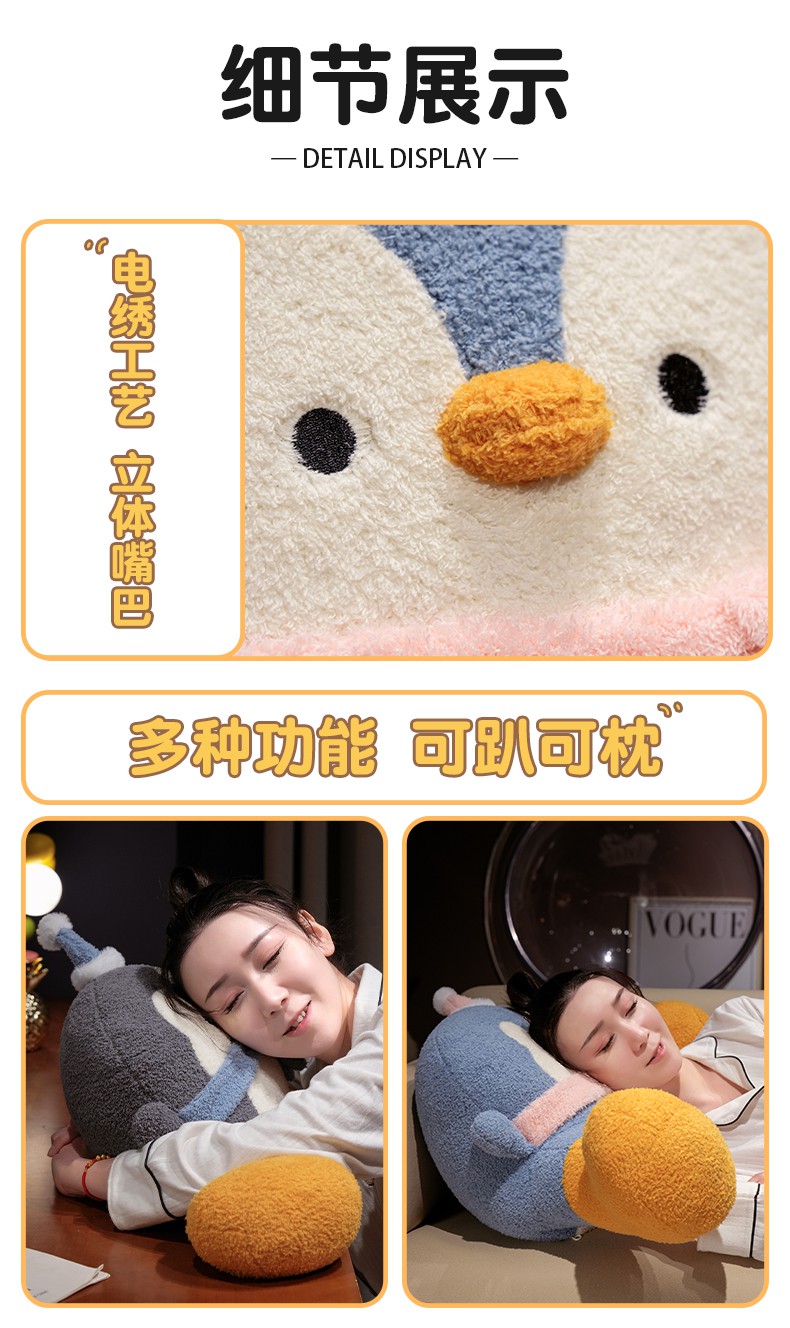 (总)仟亿莱 2025新款ins企鹅u型颈枕热水袋,U型灰色企鹅 35*33cm/个,U型蓝色企鹅 35*33cm/个