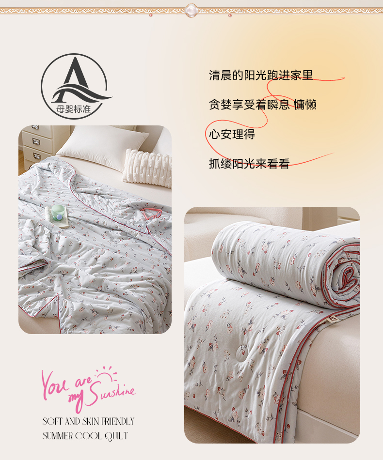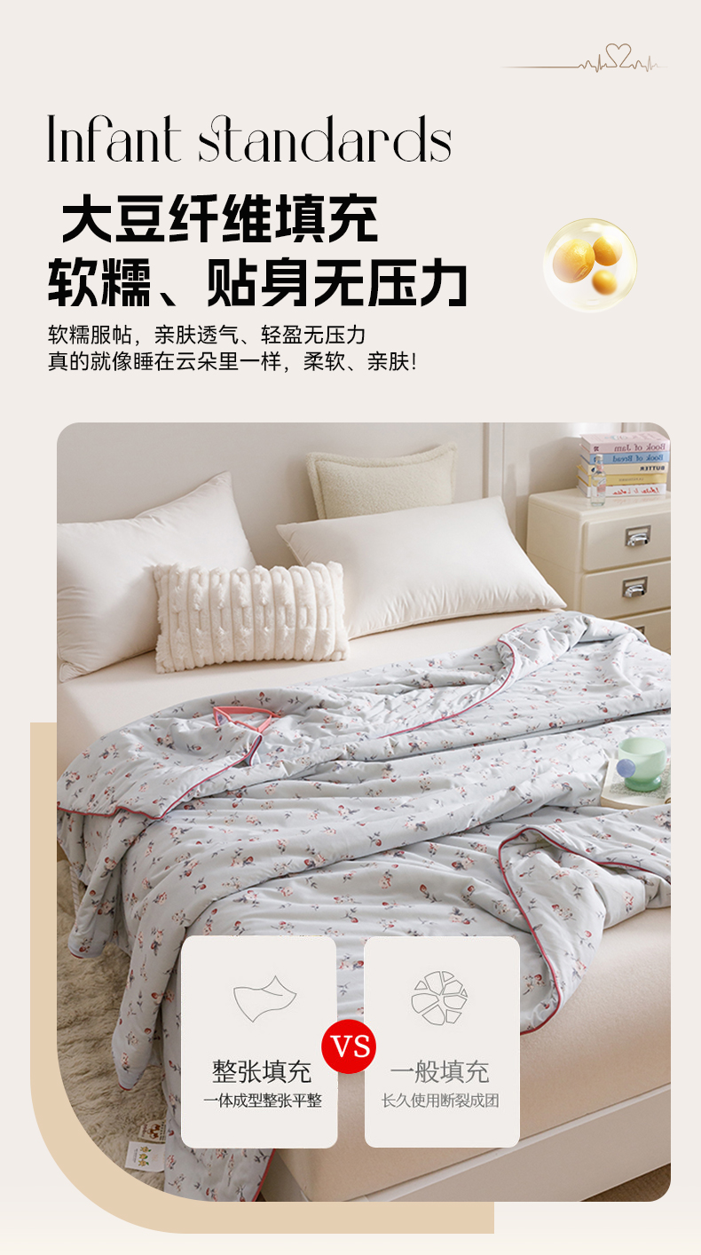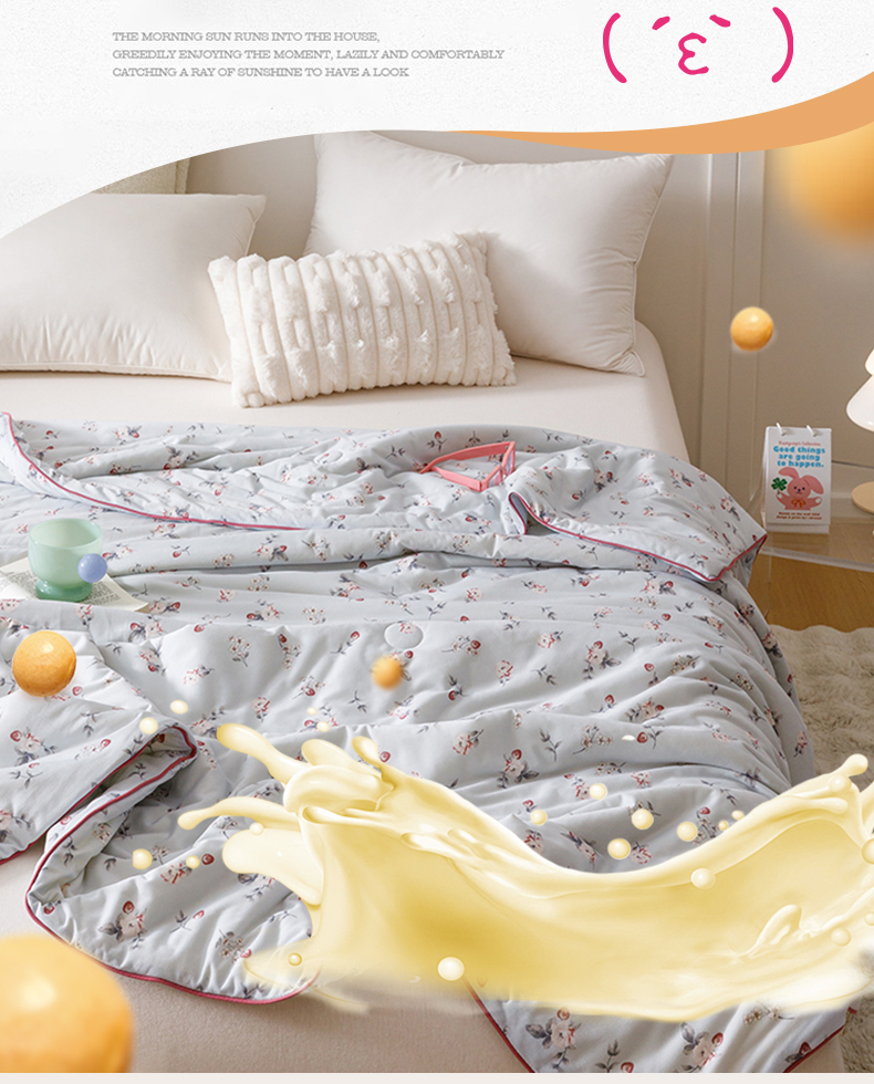 商品名称:优被业 2025新款A类牛奶丝针织棉夏被20%大豆(四周踩棉)软糯夏凉被空调被 初夏