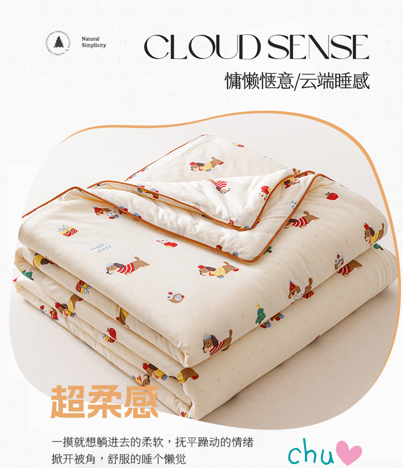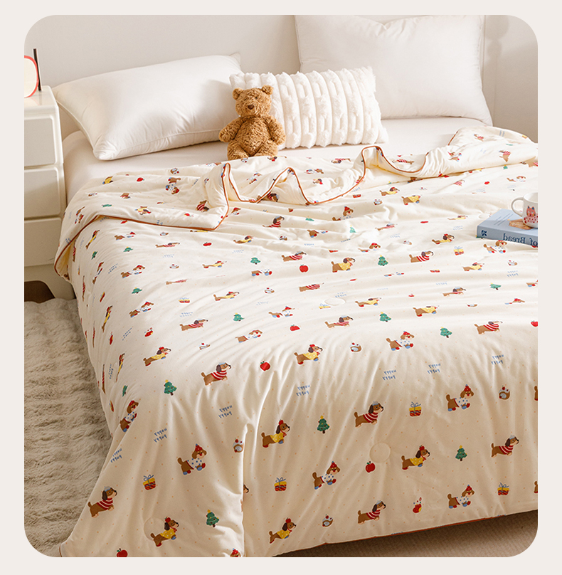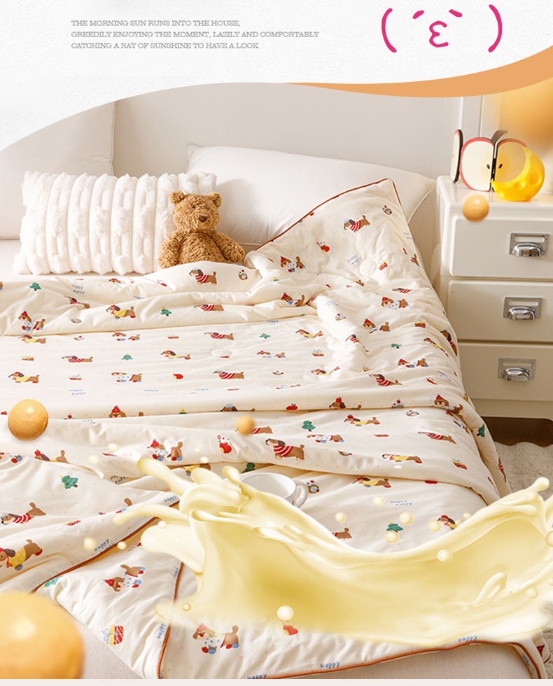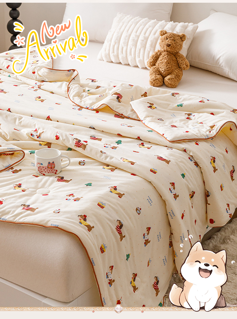 商品名称:优被业 2025新款A类牛奶丝针织棉夏被20%大豆(四周踩棉)软糯夏凉被空调被 腊肠狗