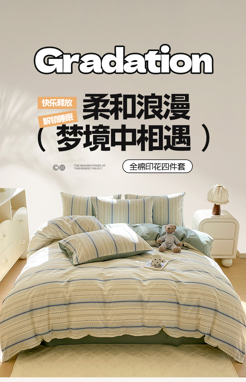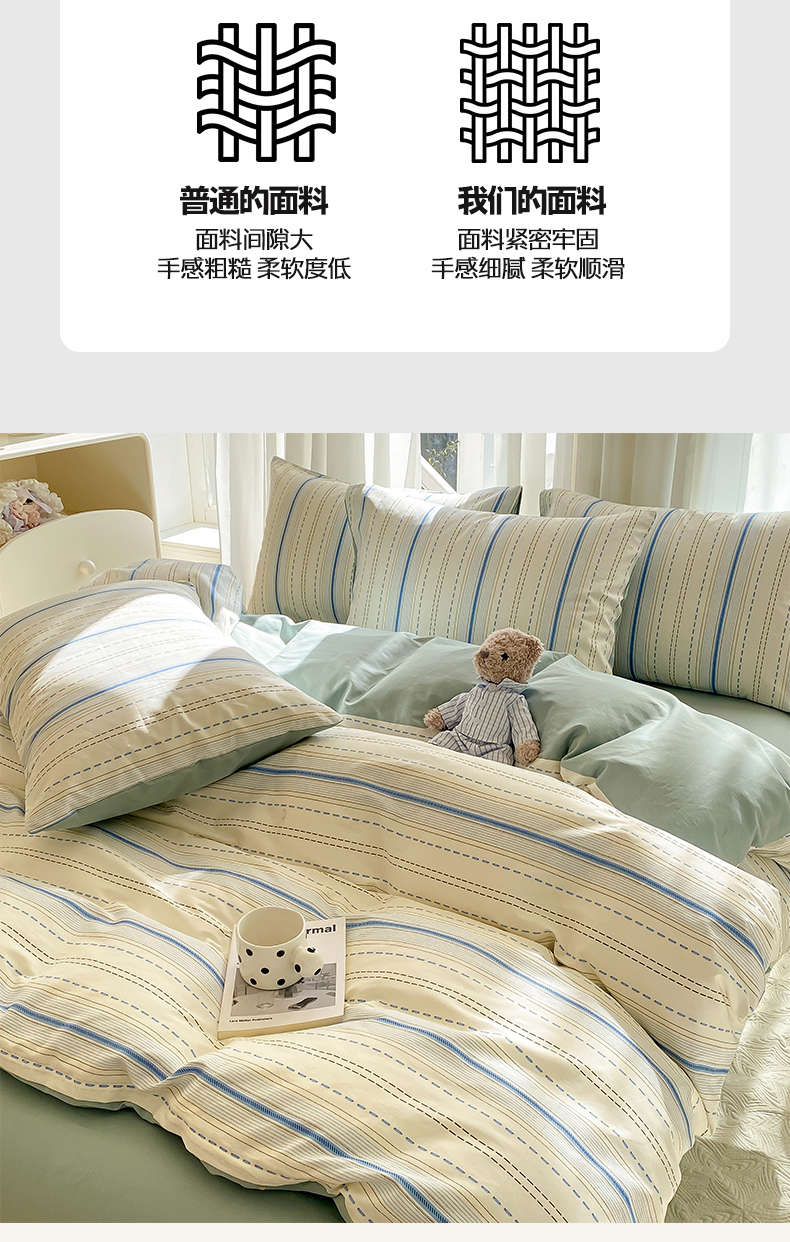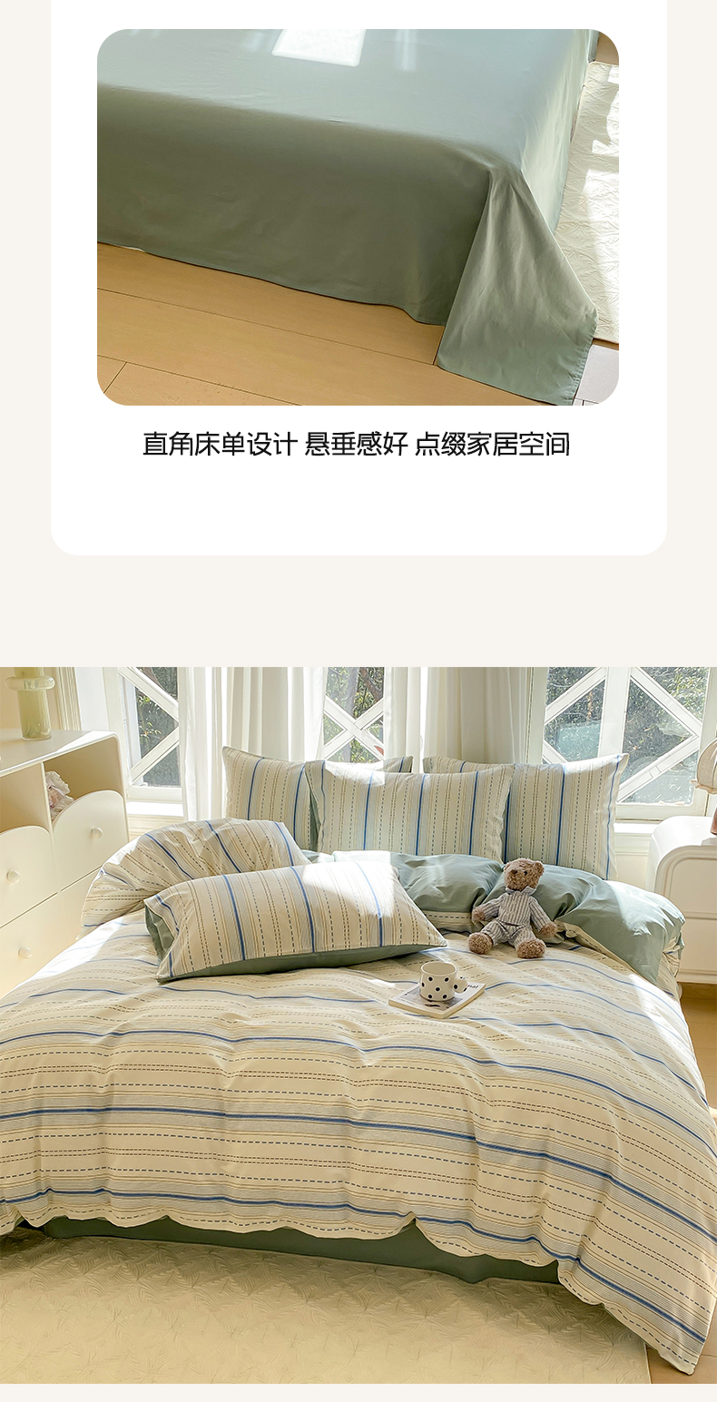 (总)宜家坊 2025新款A类全棉纯棉色织水洗棉宽边断角工艺四件套 可定制尺寸,小幸运-绿豆沙,小幸运-橙灰,小幸运-粉蓝,爱的邂逅-粉,爱的邂逅-灰,爱的邂逅-蓝,爱的邂逅-绿,幸福恋曲-粉,幸福恋曲-蓝