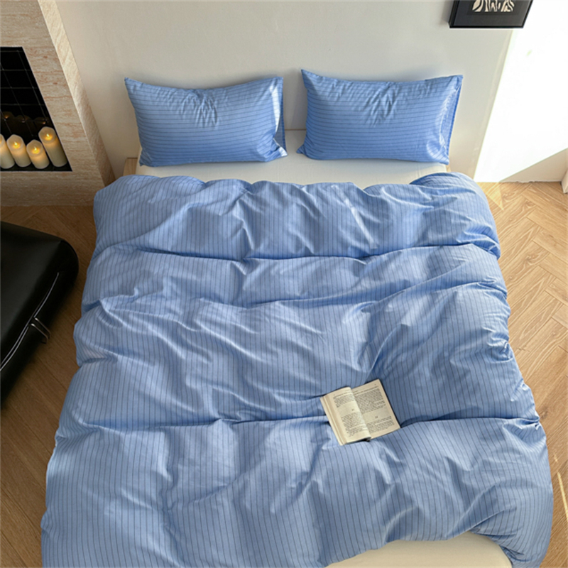 当前位置: 91家纺网 > 商品网购 > 床品套件 > 四件套 > 全棉普通四件套 > 金丝鸟家纺 2025新款全棉斜纹印花条纹系列四件套及单品 追忆蓝