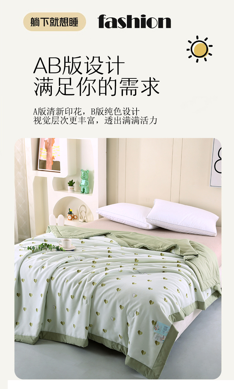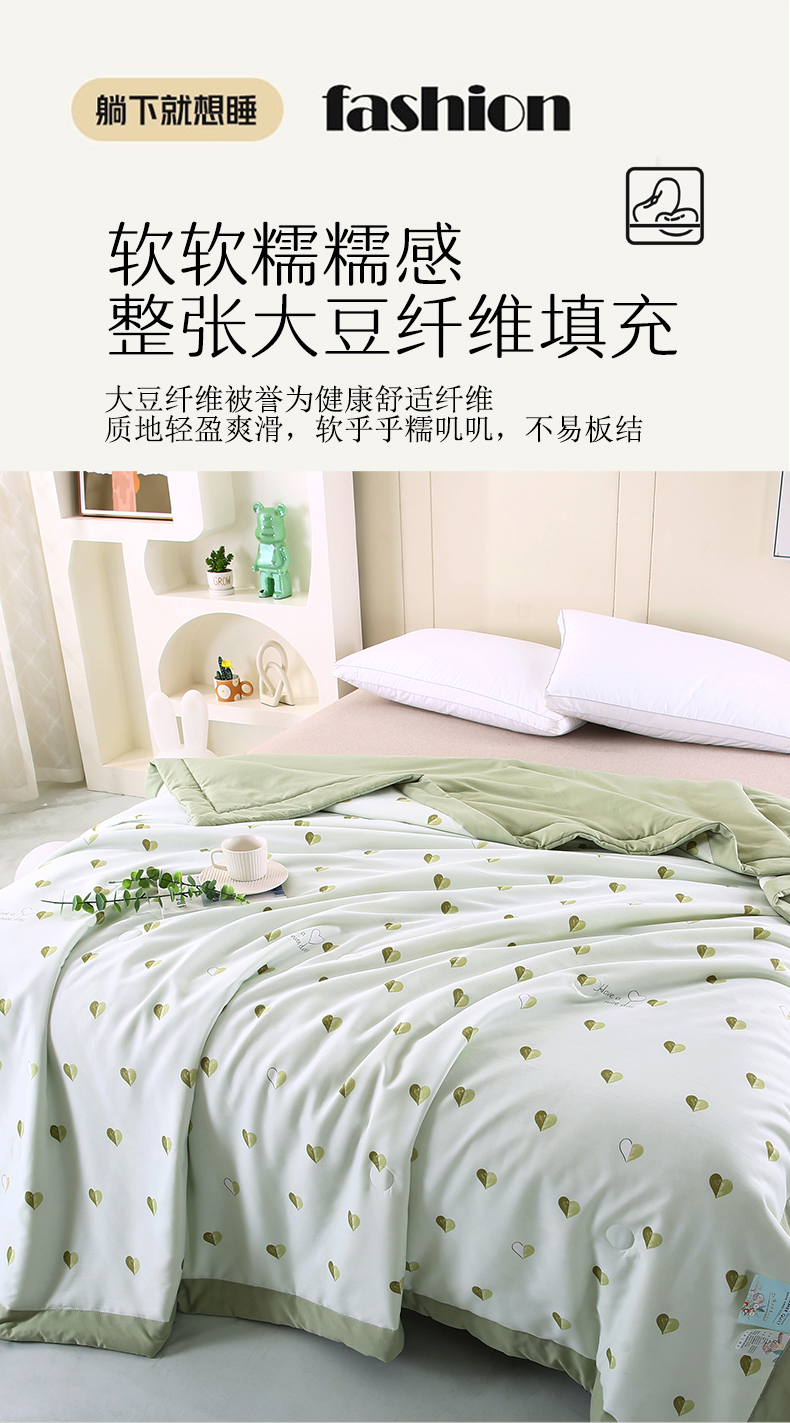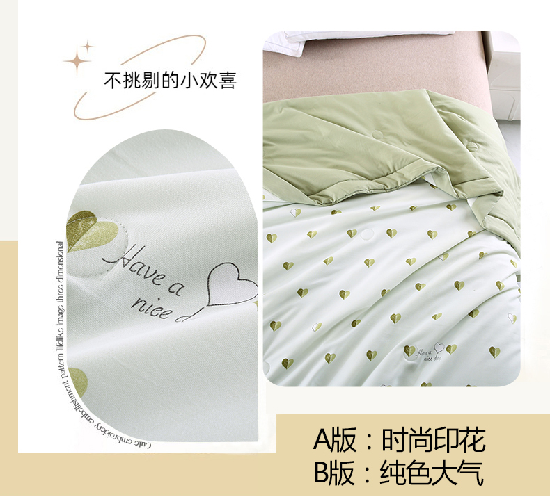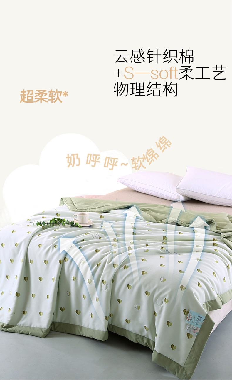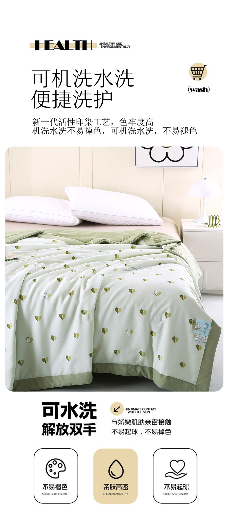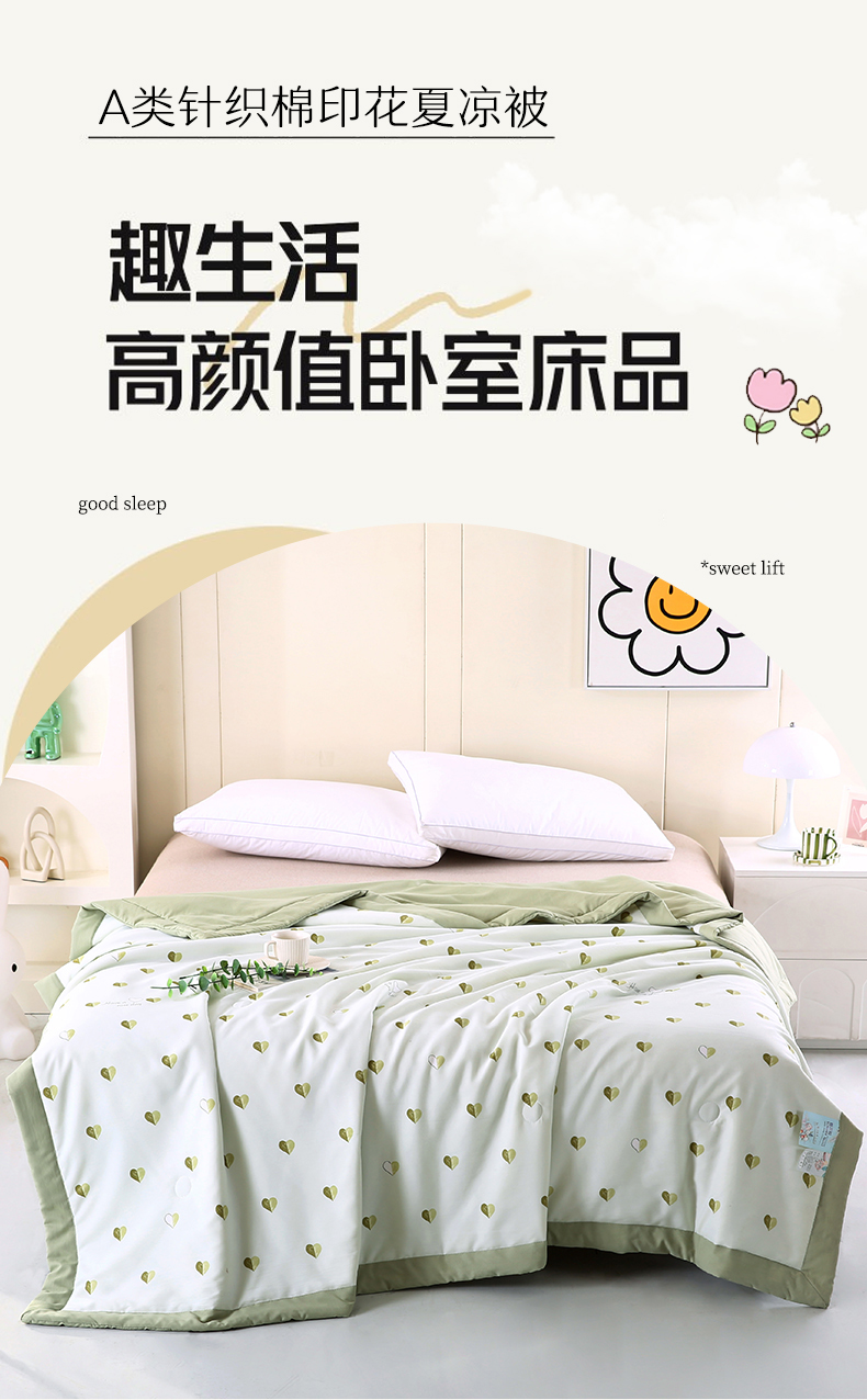 商品名称:欧朵家纺 2025新款A类针织棉印花夏被子被芯 爱心绿