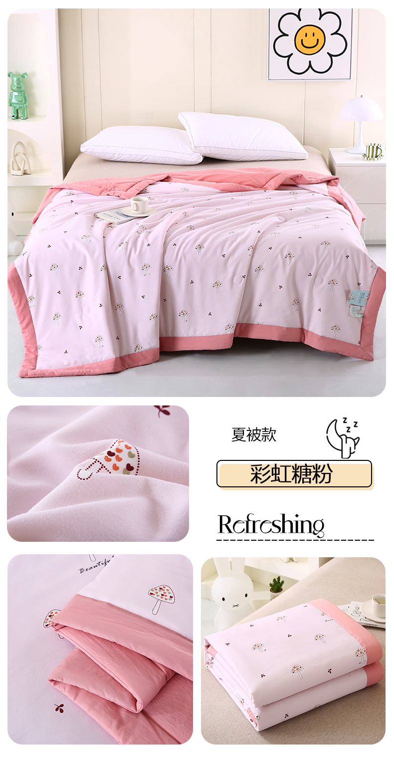 (总)欧朵家纺 2025新款A类针织棉印花夏被子被芯,爱心咖,爱心绿,冰淇淋粉,彩虹糖粉,橄榄绿,蝴蝶结咖,蝴蝶结蓝,金瓜纳福咖,金瓜纳福蓝,清新雅格,小蘑菇绿,郁金香紫