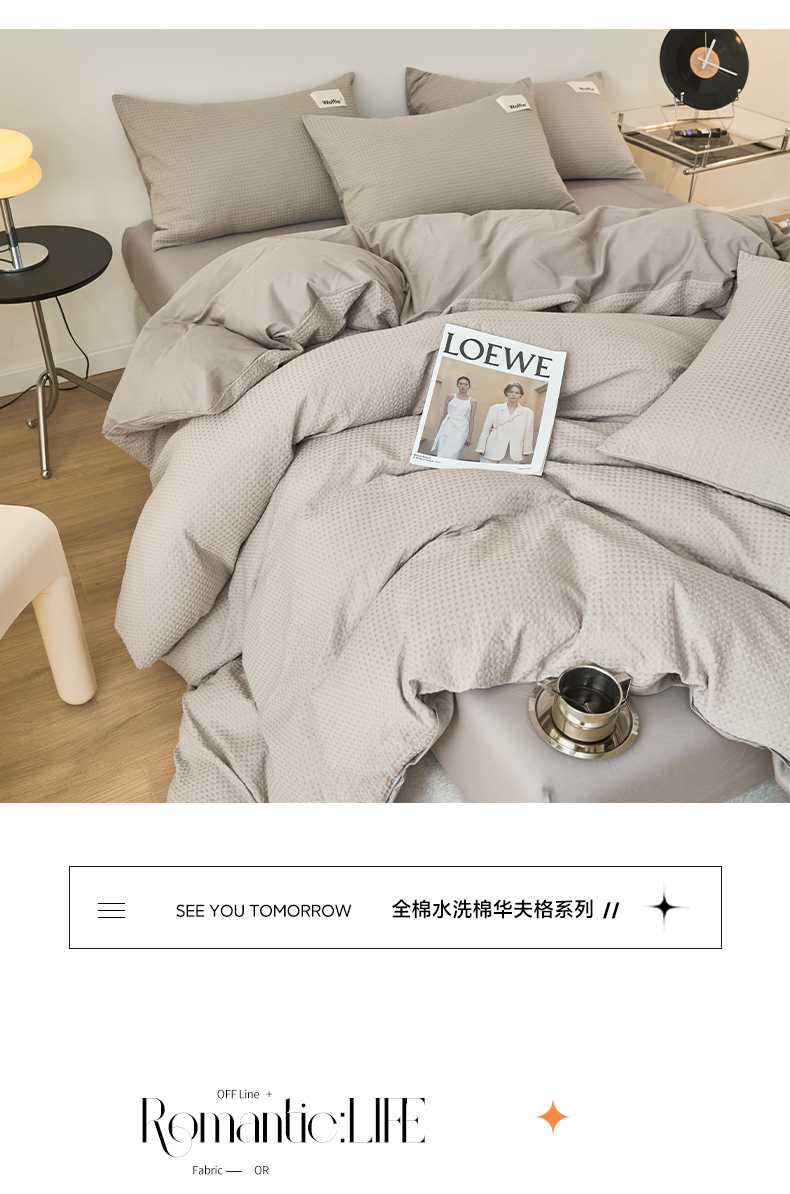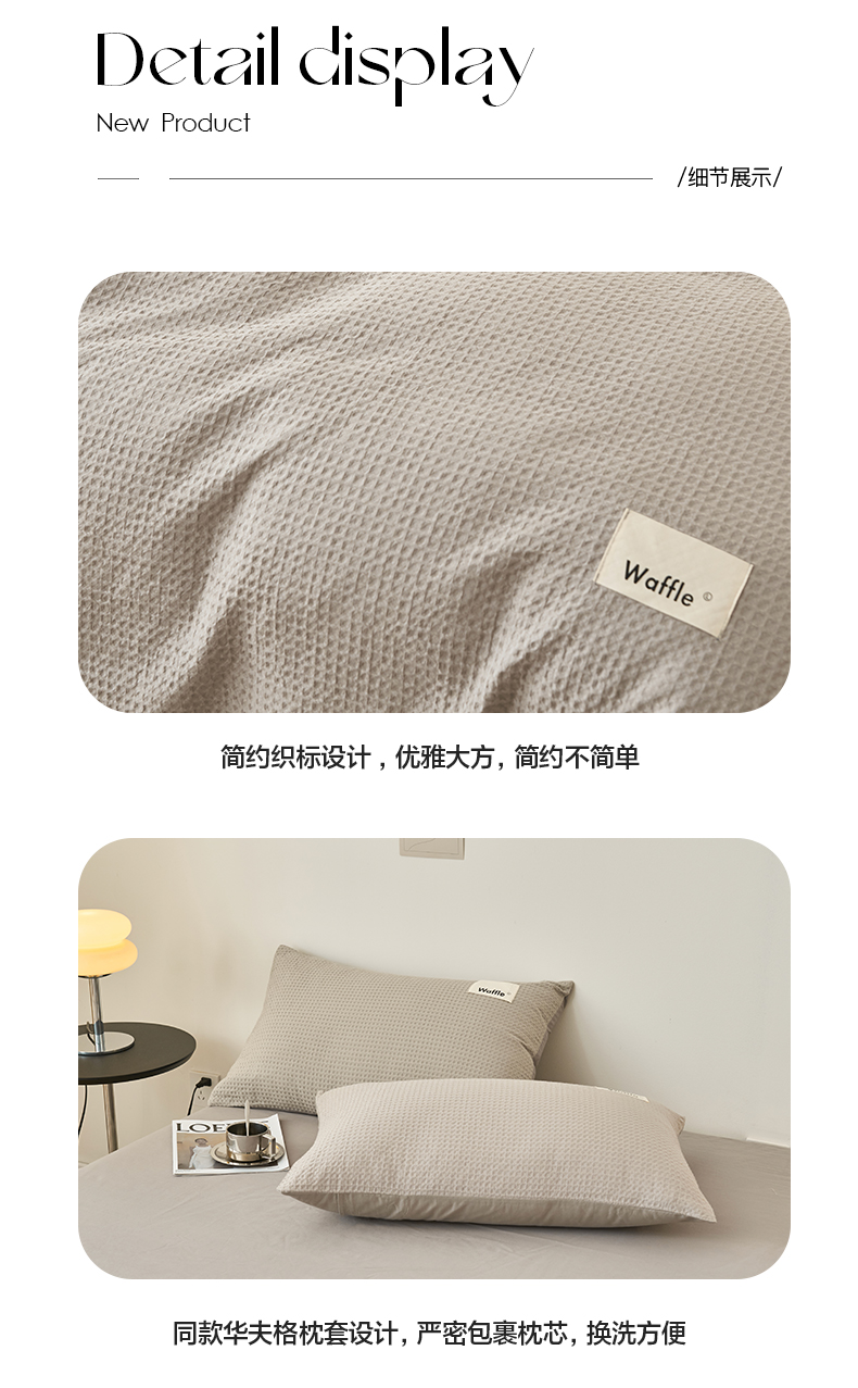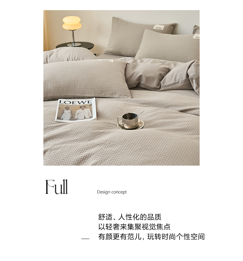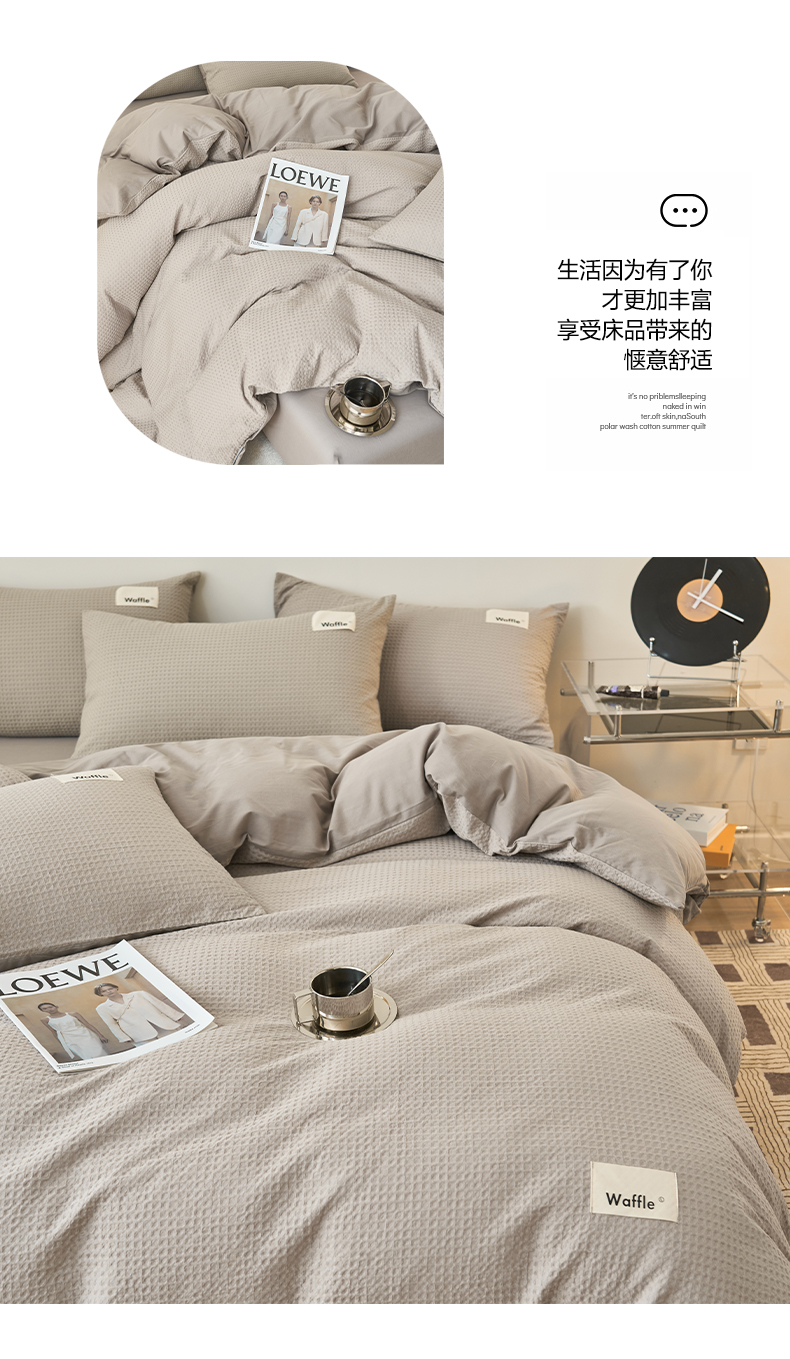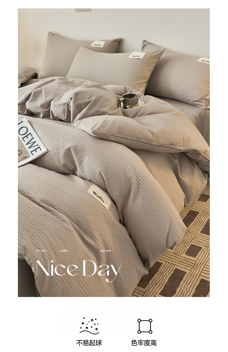 商品名称:2025新款40S纯棉华夫格四件套 华夫格-浅灰
