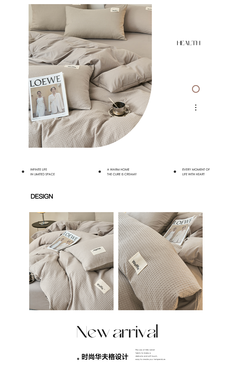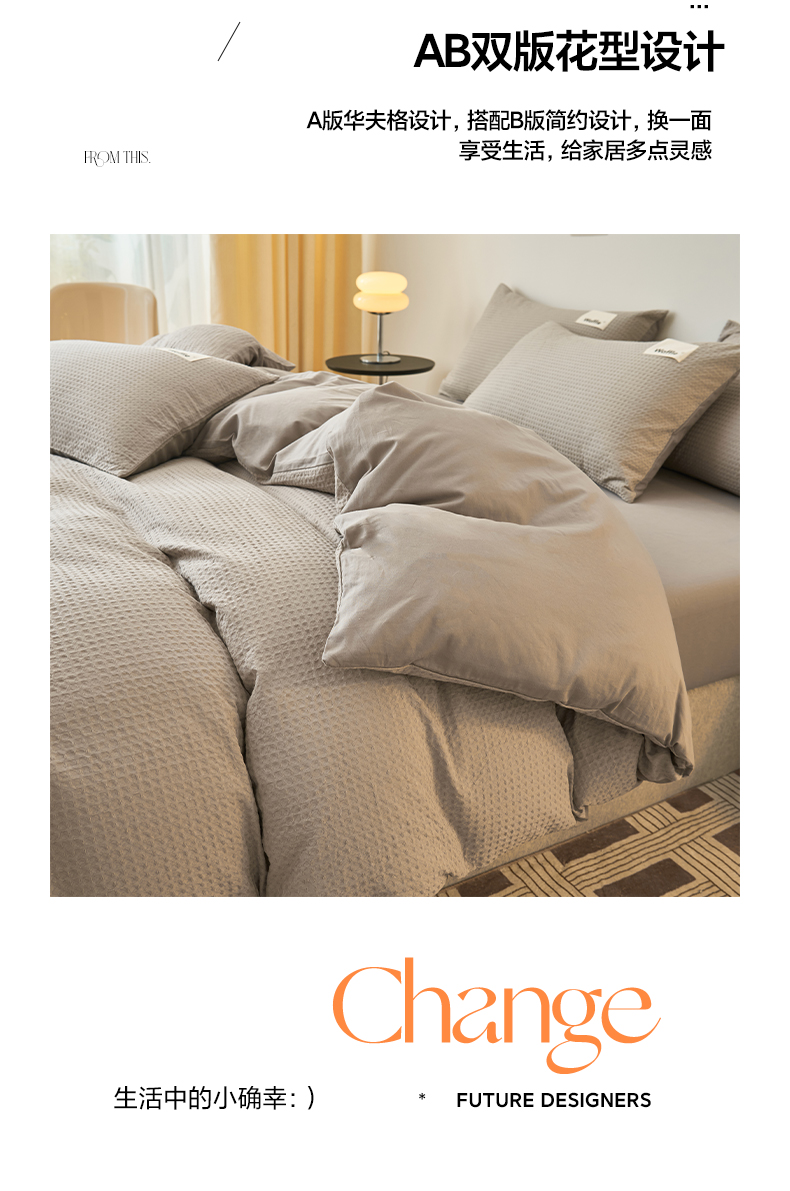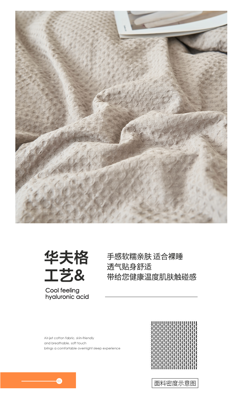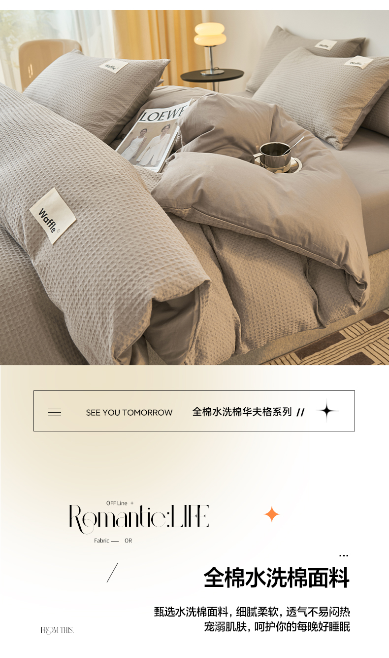 商品名称:2025新款40S纯棉华夫格四件套 华夫格-浅灰