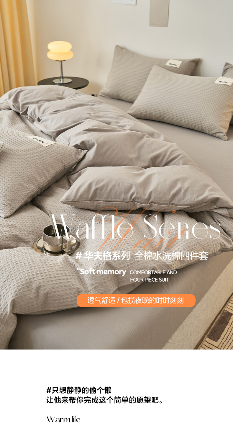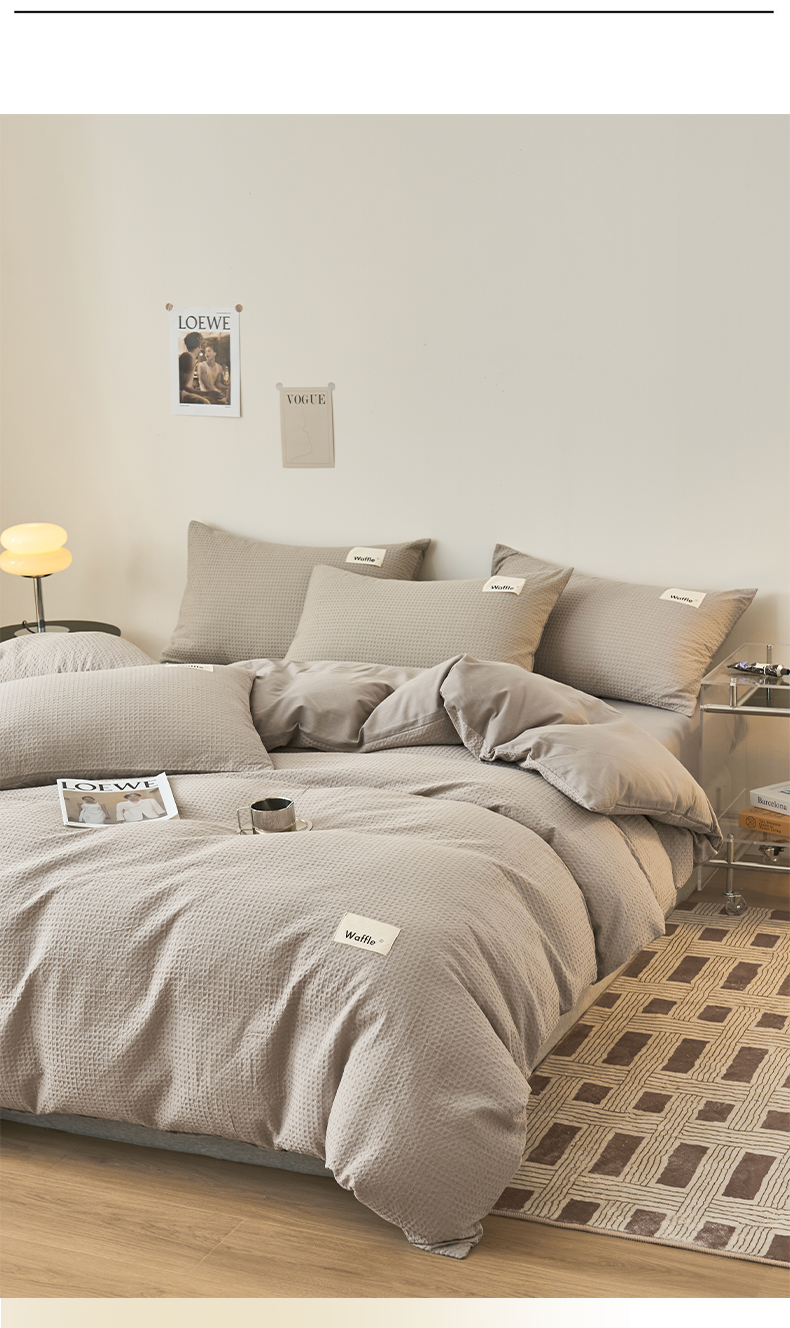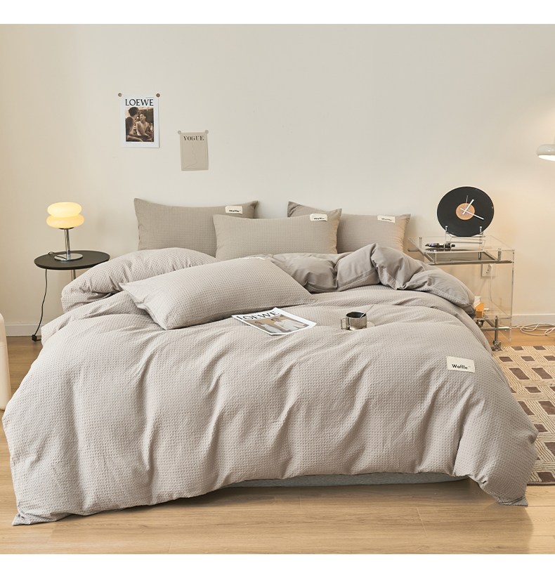 2025新款40S纯棉华夫格四件套 华夫格-浅灰