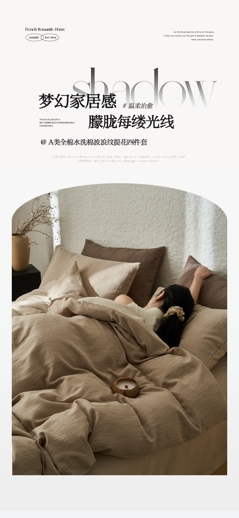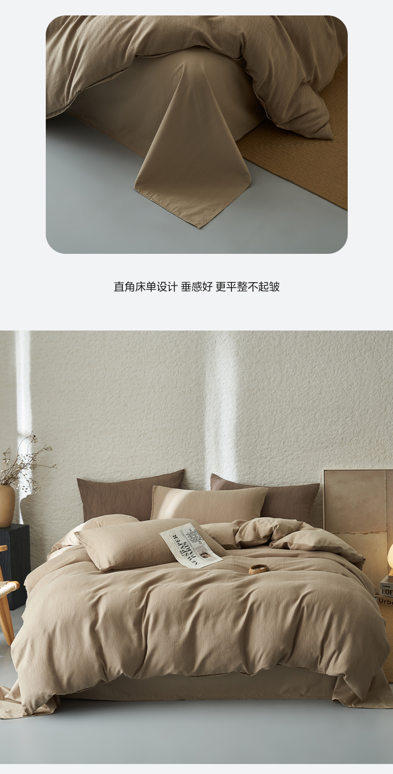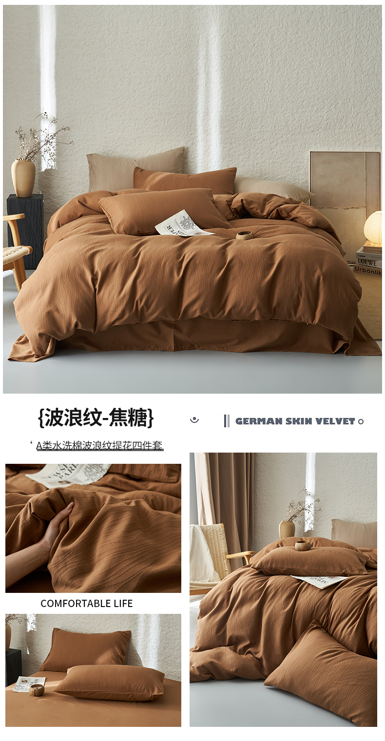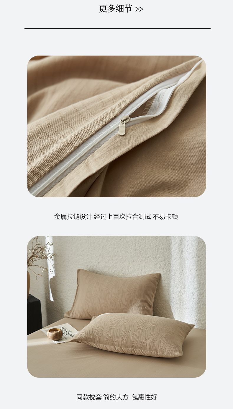 商品名称:2025新款纯棉水洗棉三层波浪纹提花四件套 波浪纹-浅驼