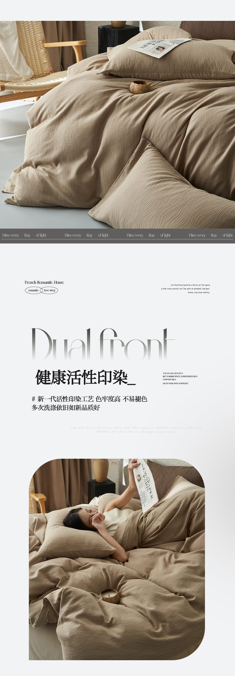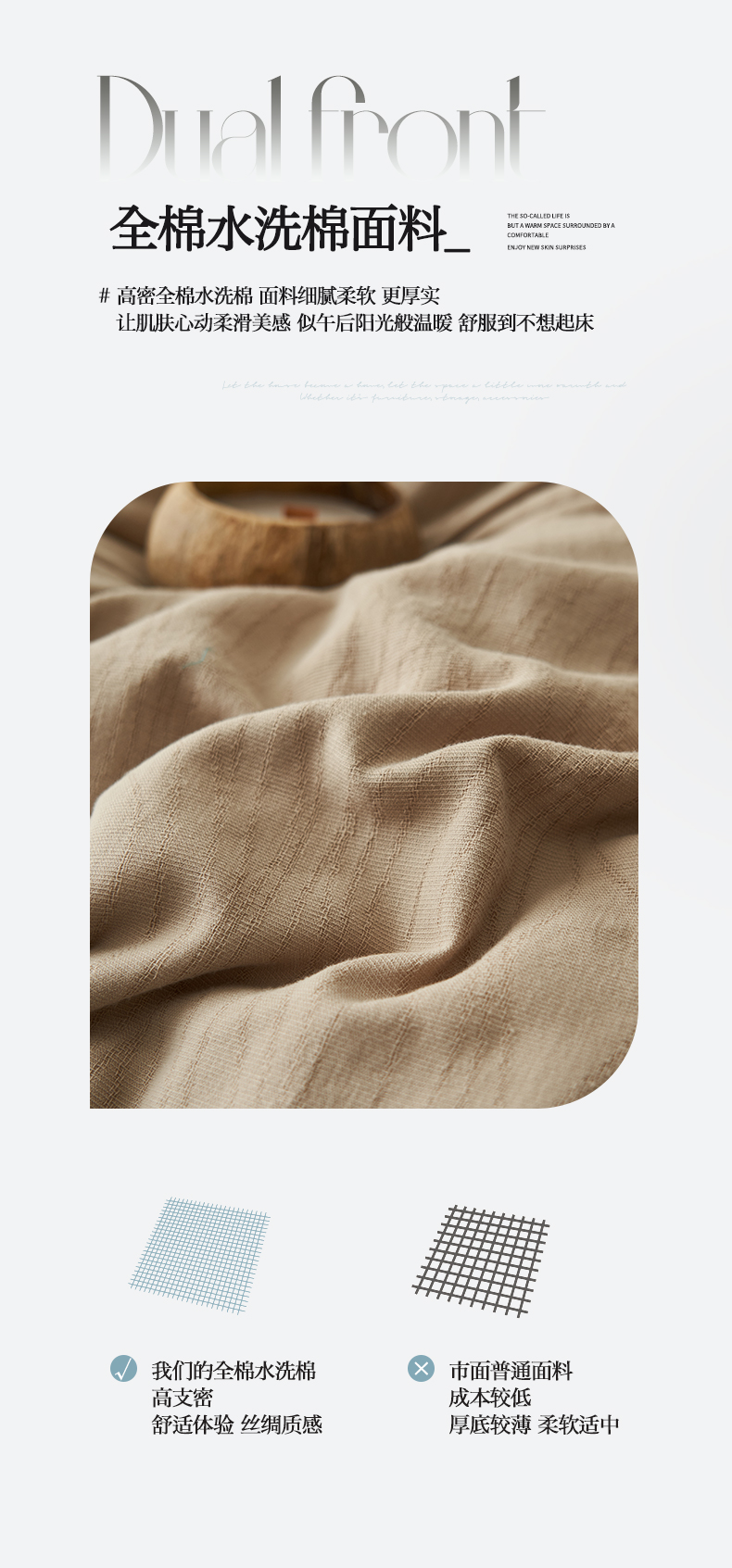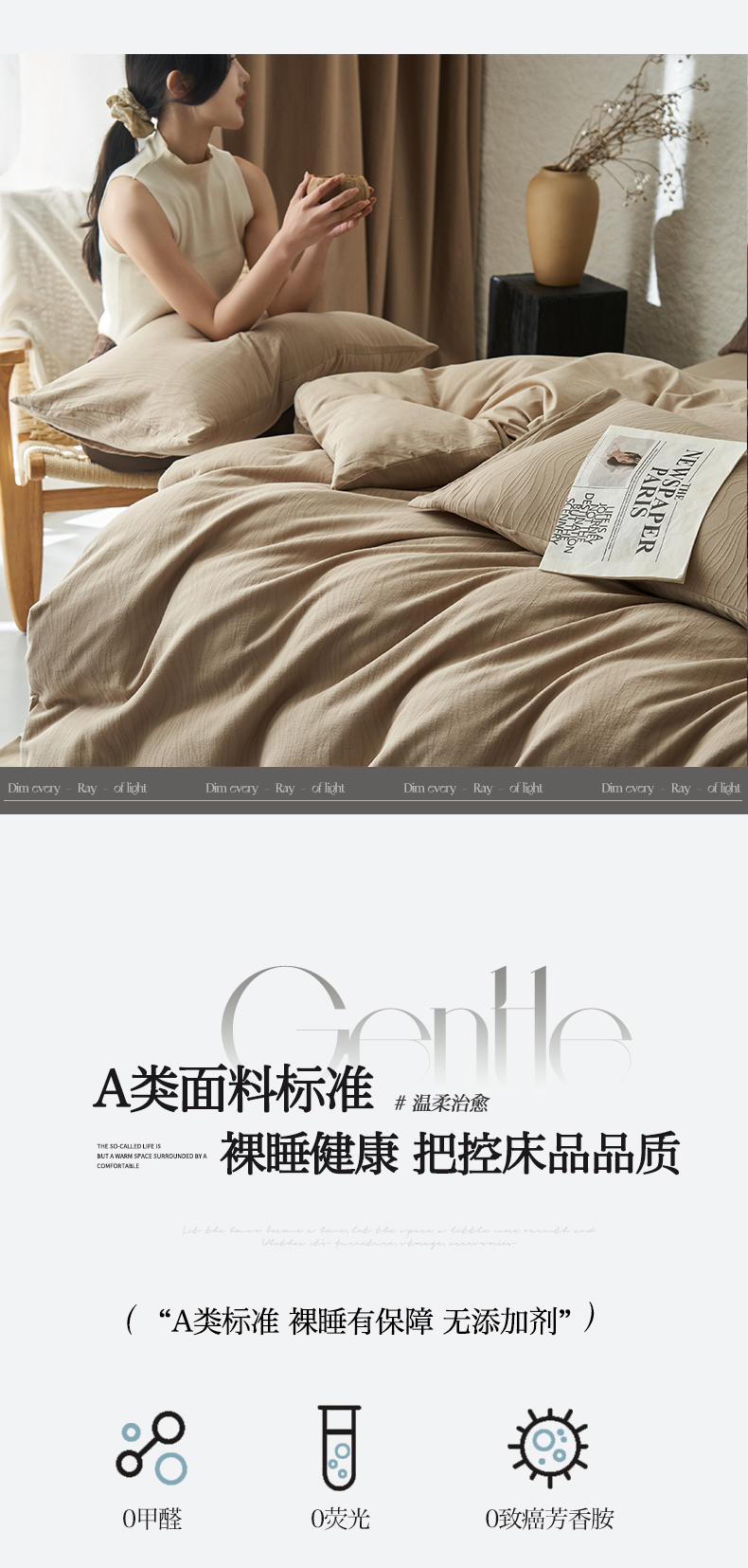 商品名称:2025新款纯棉水洗棉三层波浪纹提花四件套 波浪纹-浅驼