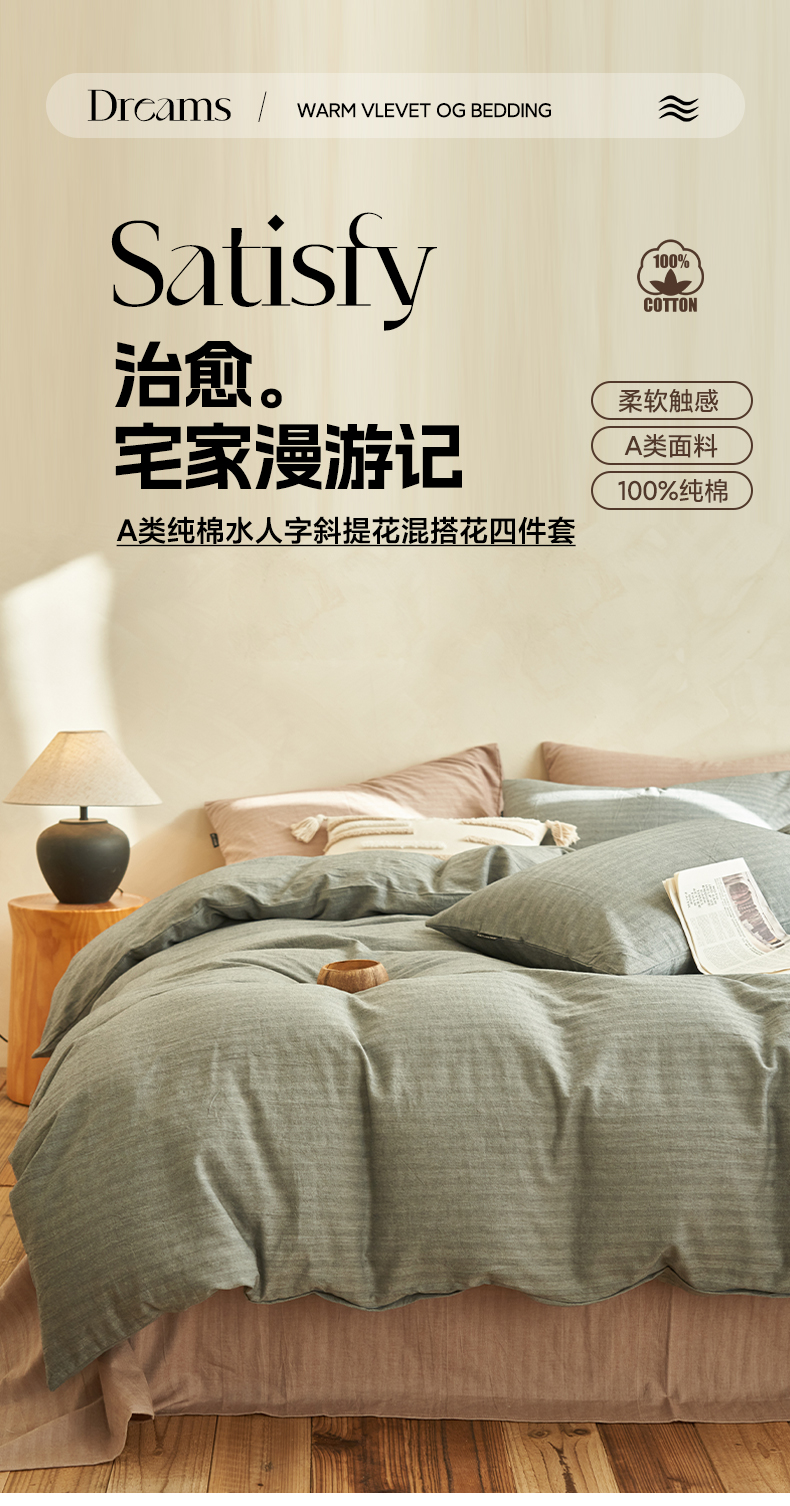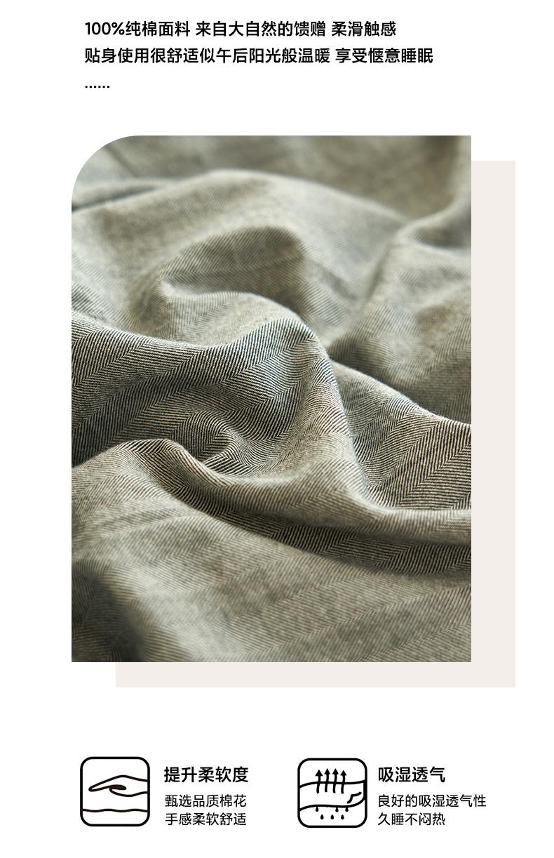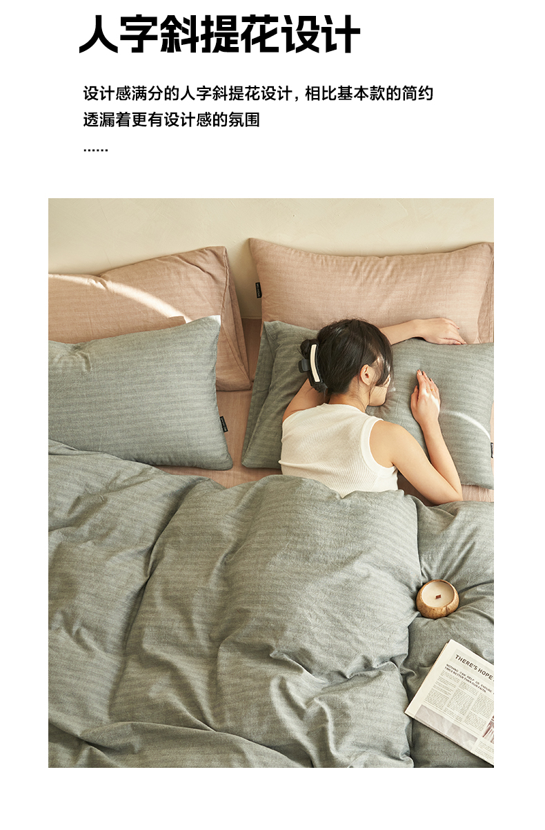 当前位置: 91家纺网 > 商品网购 > 床品套件 > 四件套 > 水洗棉四件套 > 2025新款色织水洗棉人字斜提花混搭四件套 人字斜四件套-浅灰+驼色