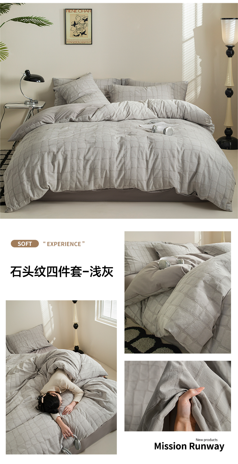商品名称:2025新款纯棉水洗棉三层石头纹提花四件套 石头纹四件套-豆沙