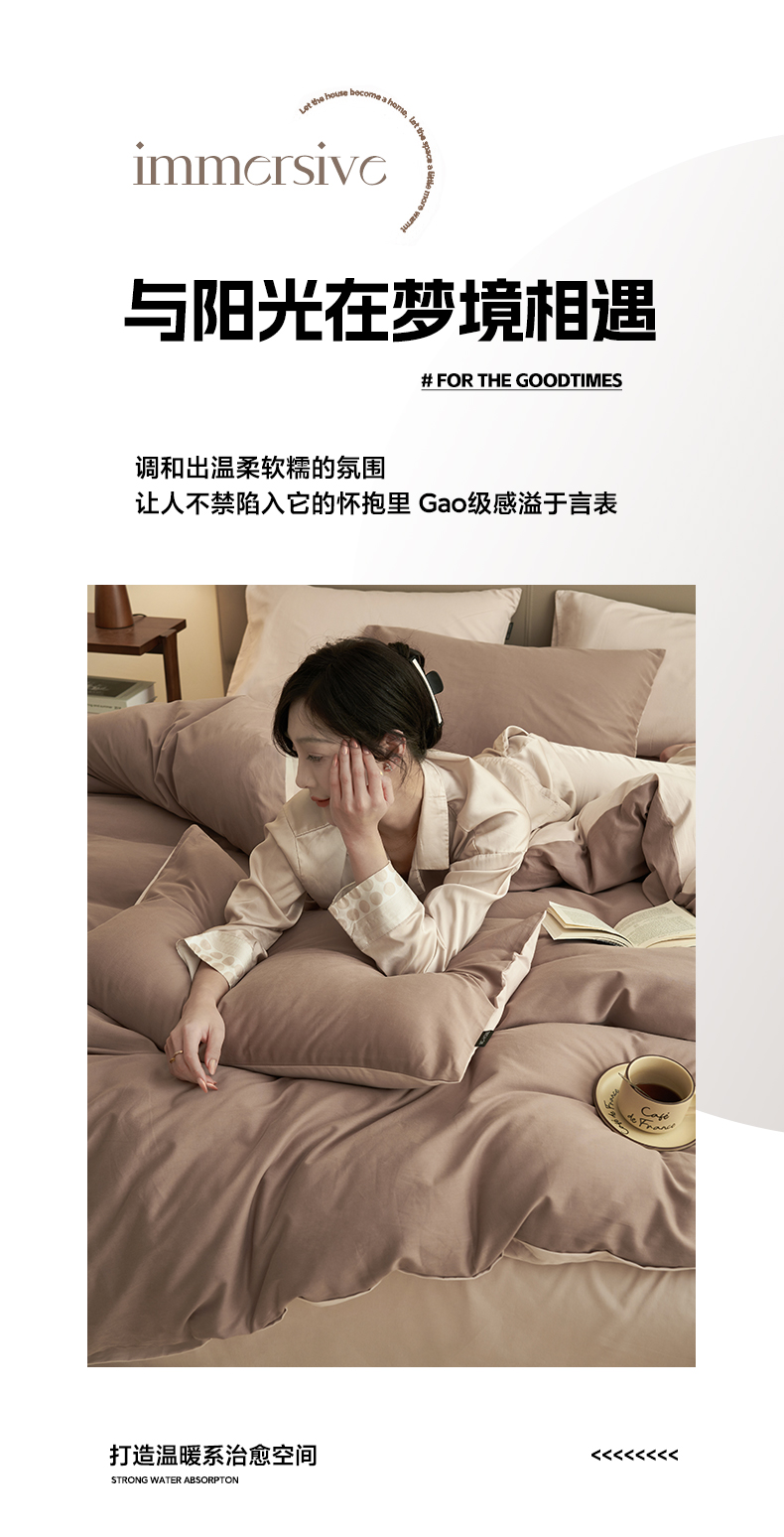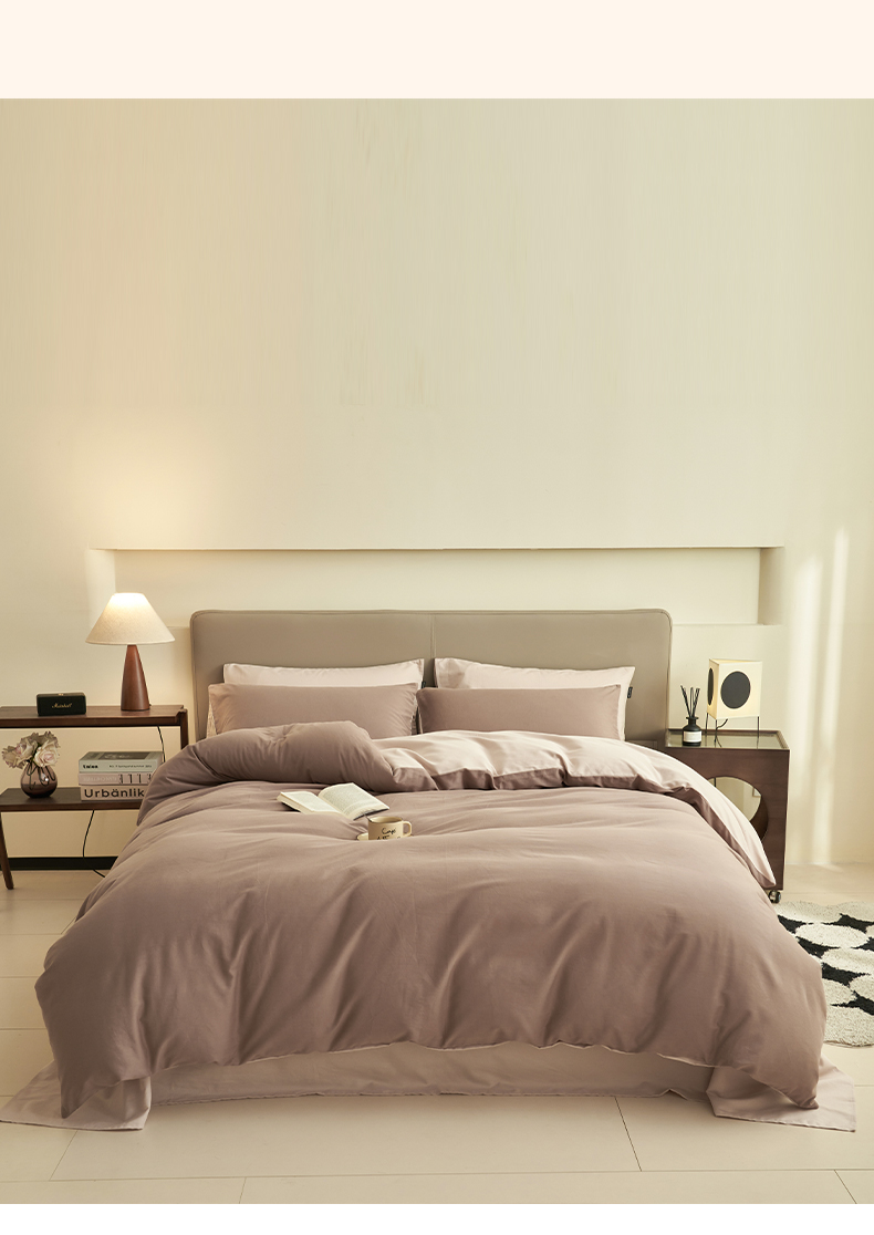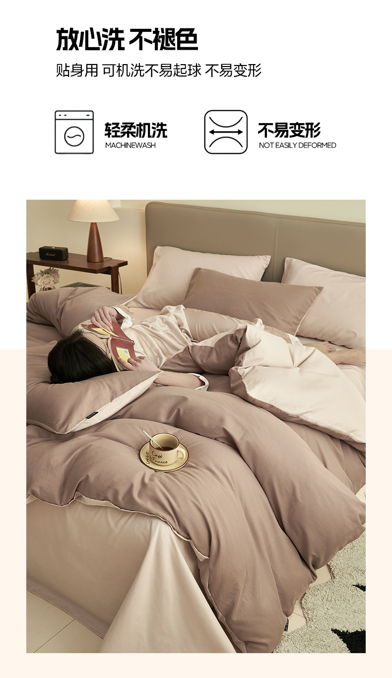 商品名称:2025新款全棉13372水洗棉双拼四件套(影棚亮光) 暗香紫砂+40驼