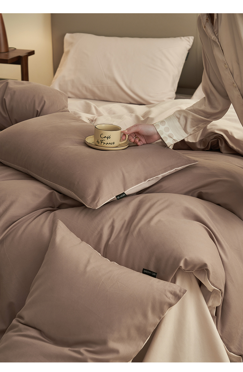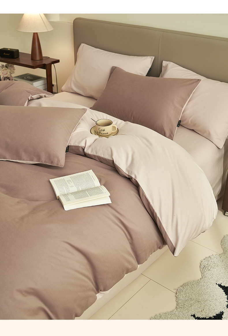 2025新款全棉13372水洗棉双拼四件套(影棚亮光) 暗香紫砂+40驼