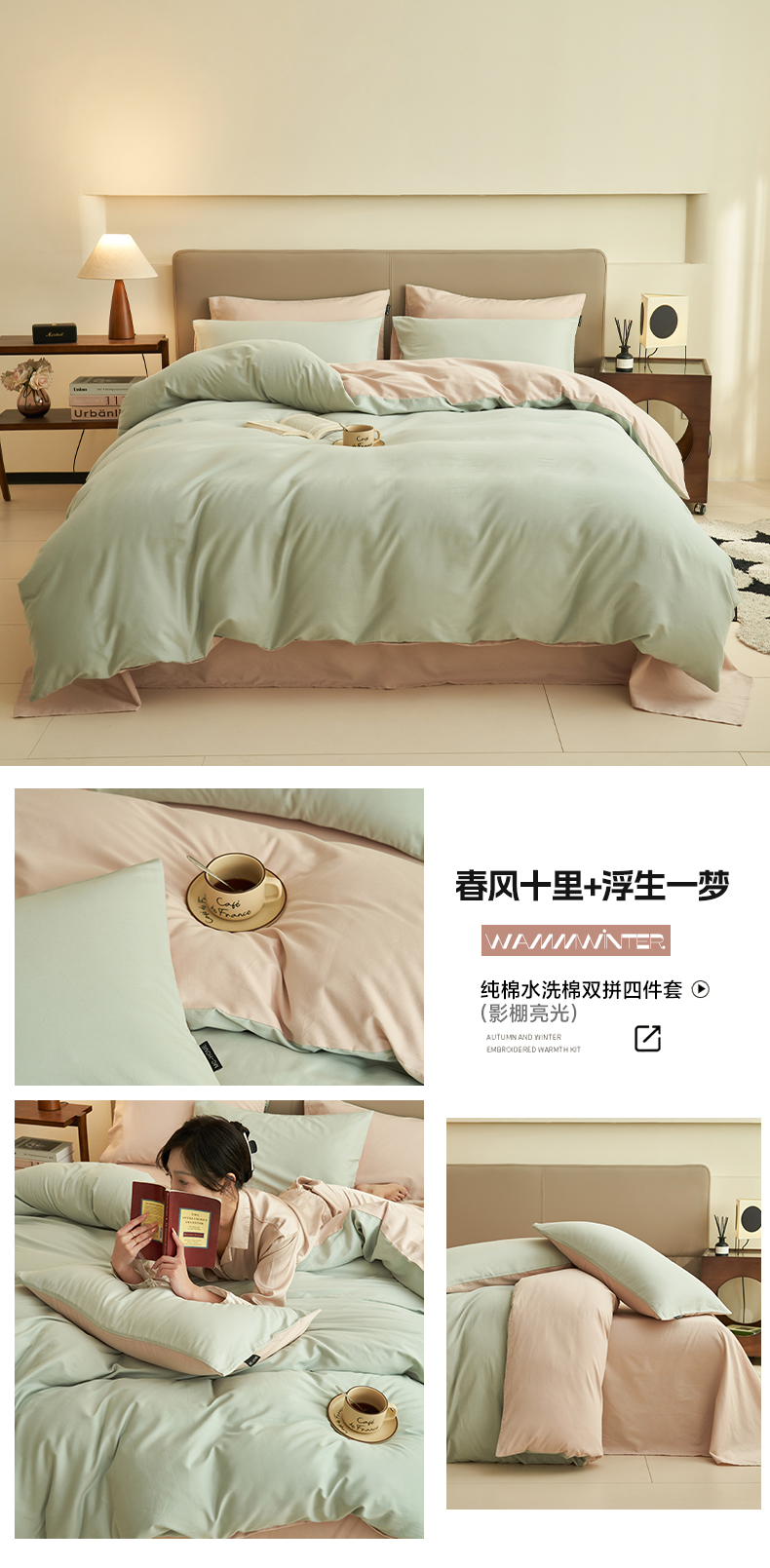 (总)2025新款全棉13372水洗棉双拼四件套(影棚暗光),天青韵白+拾柴,40暖木棕+拾柴,40驼+40暖木棕,安然蓝+毛毯灰,暗木幽香+宝藏灰,暗香紫砂+40驼,布鲁兰+拾柴,春风十里+浮生一梦,豆沙+毛毯灰,扶苏绿+毛毯灰,果绿+墨子绿,礁石灰+毛毯灰,漫雾+古巴砂,毛毯灰+宝藏灰,蘑菇黄+天青韵白,碳烤栗子+拾柴,天蓝+米黄,天青韵白+一念秋风,一叶知秋+袅袅灰,樱木粉+一念秋风