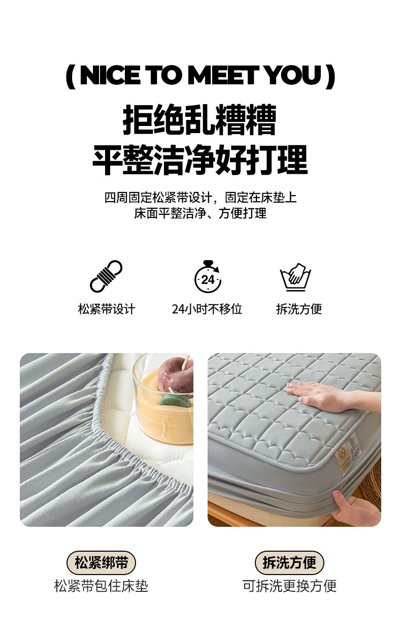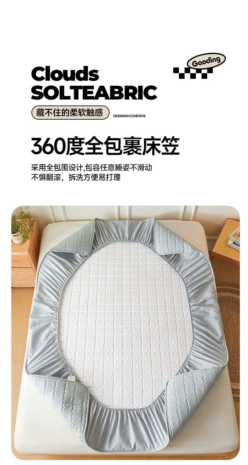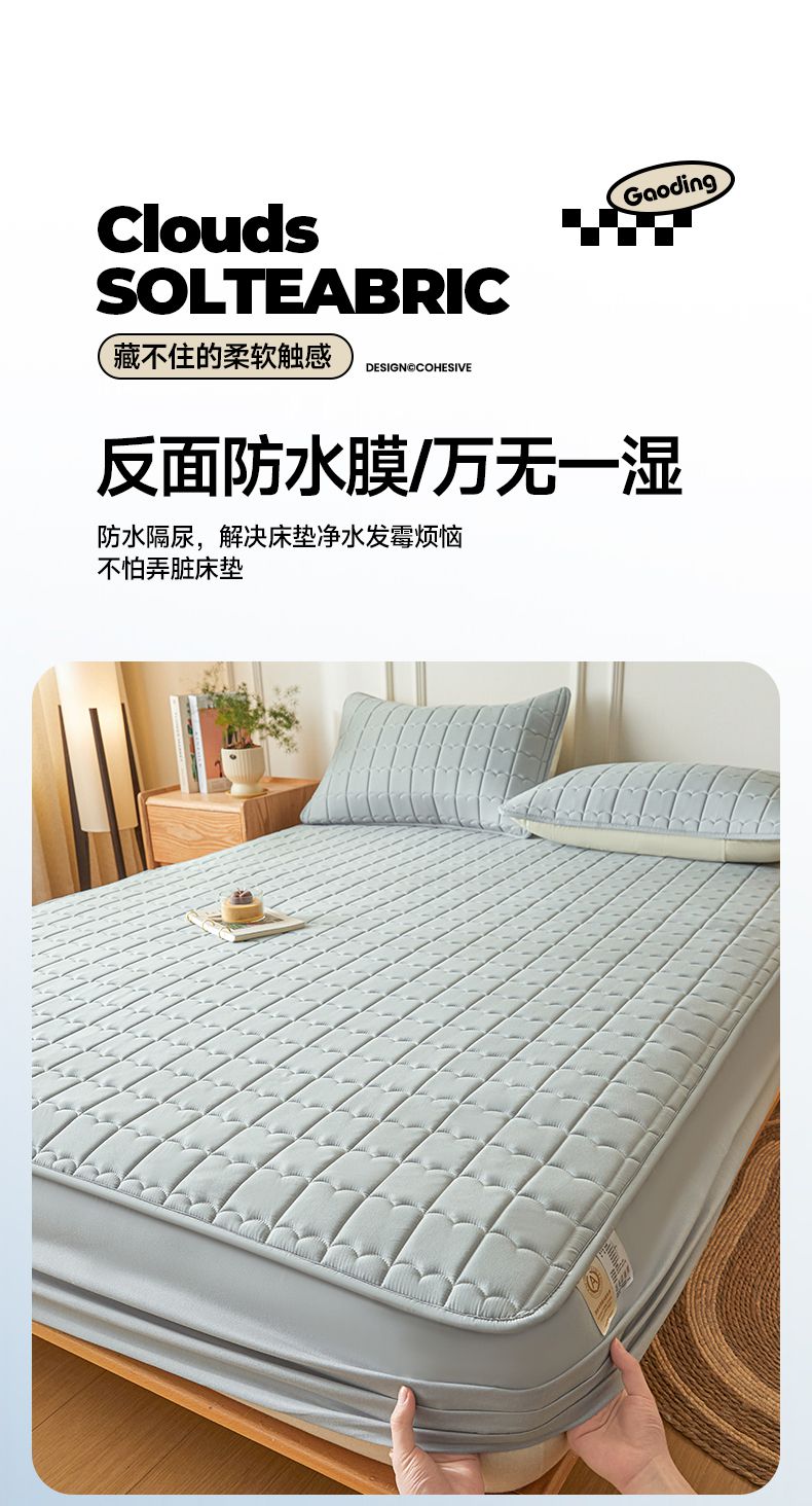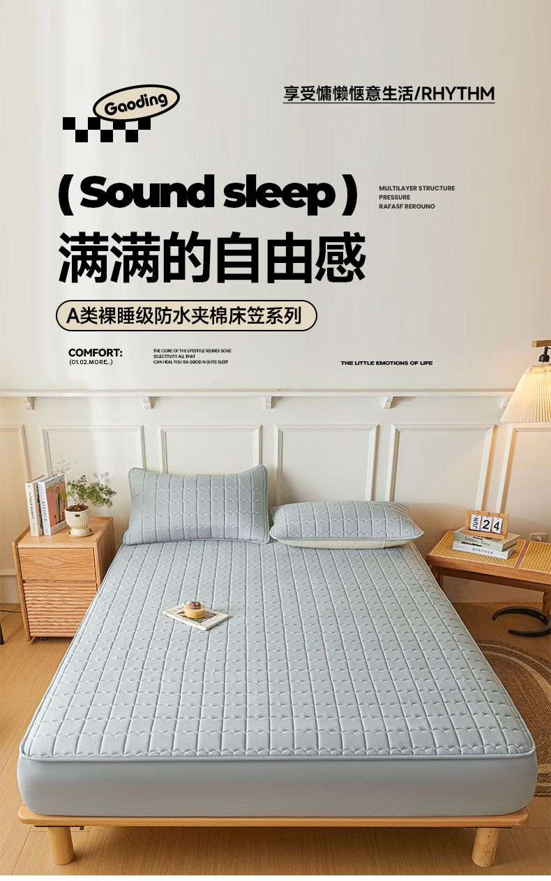 商品名称:摩妮卡 2025新款亲肤A类防水夹棉床笠 杏仁灰
