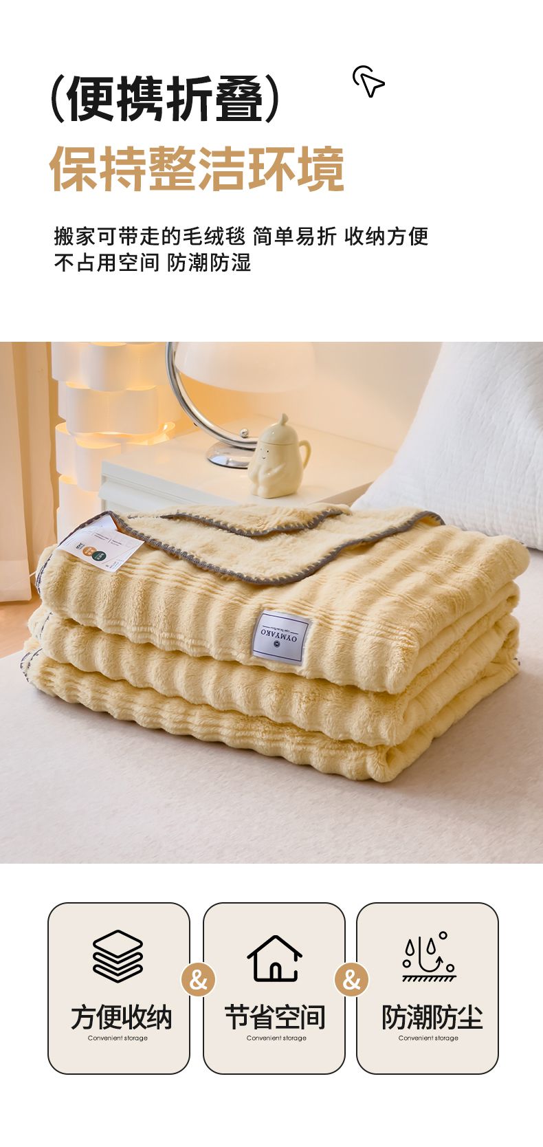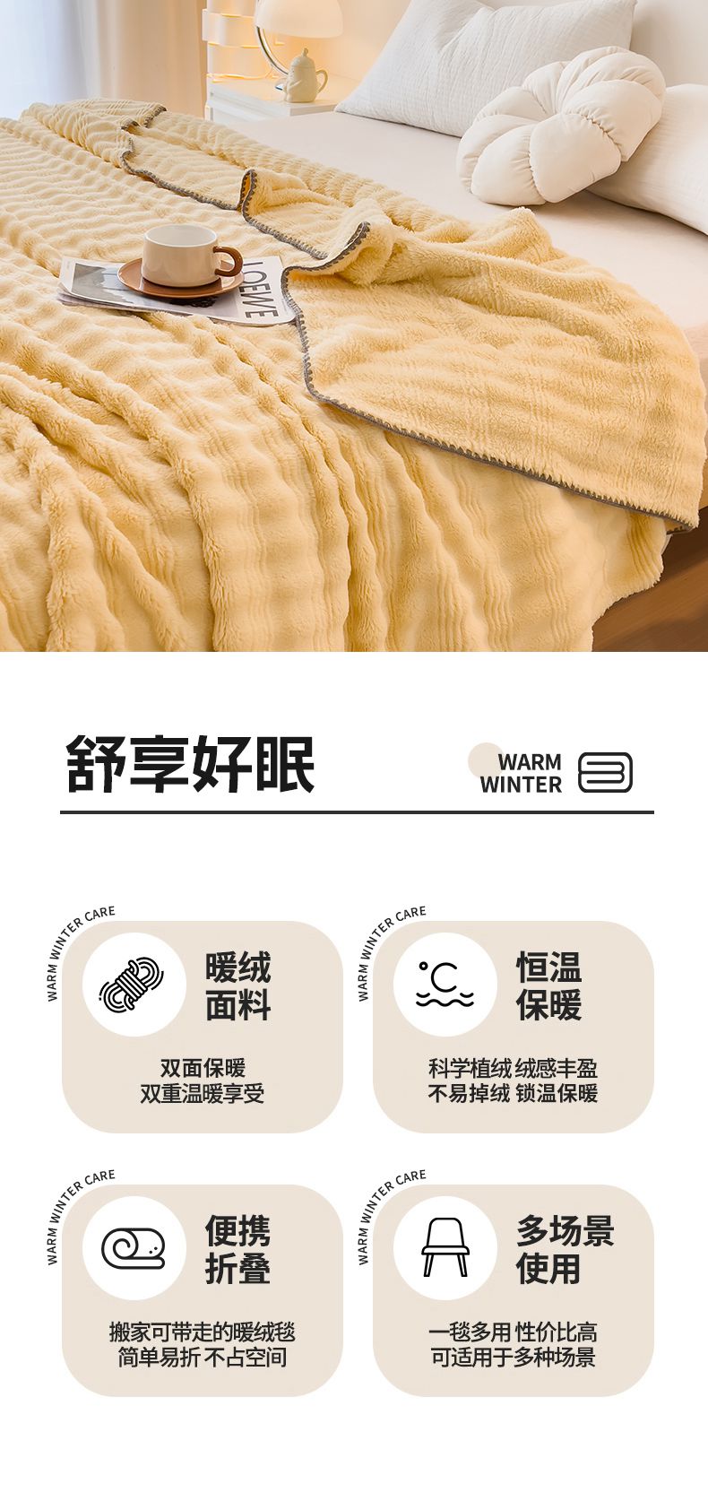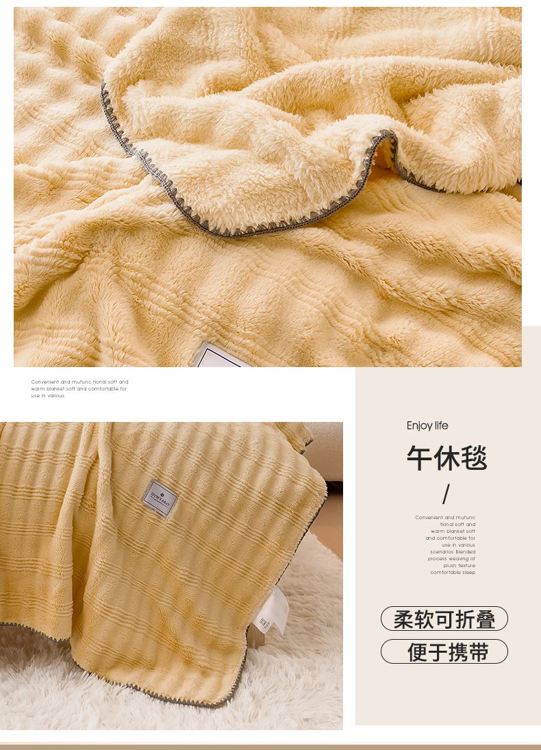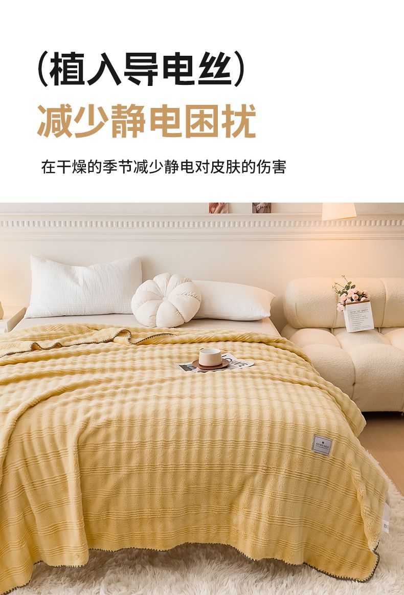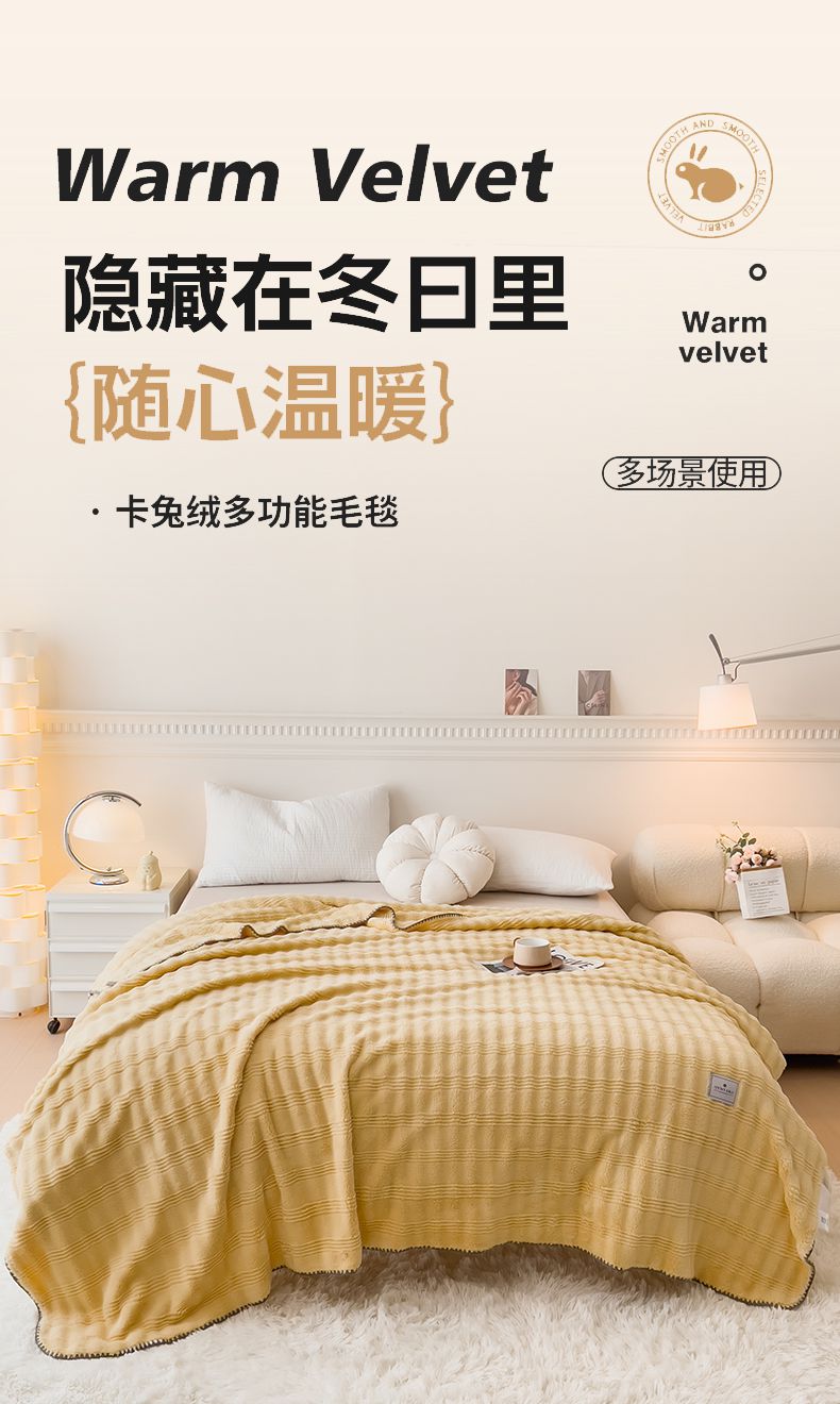 商品名称:宜家坊 2025新款高克重双面绒毛卡兔绒多功能毛毯 荧光黄