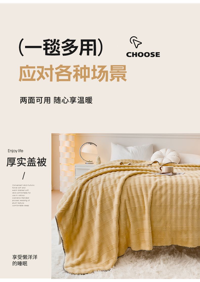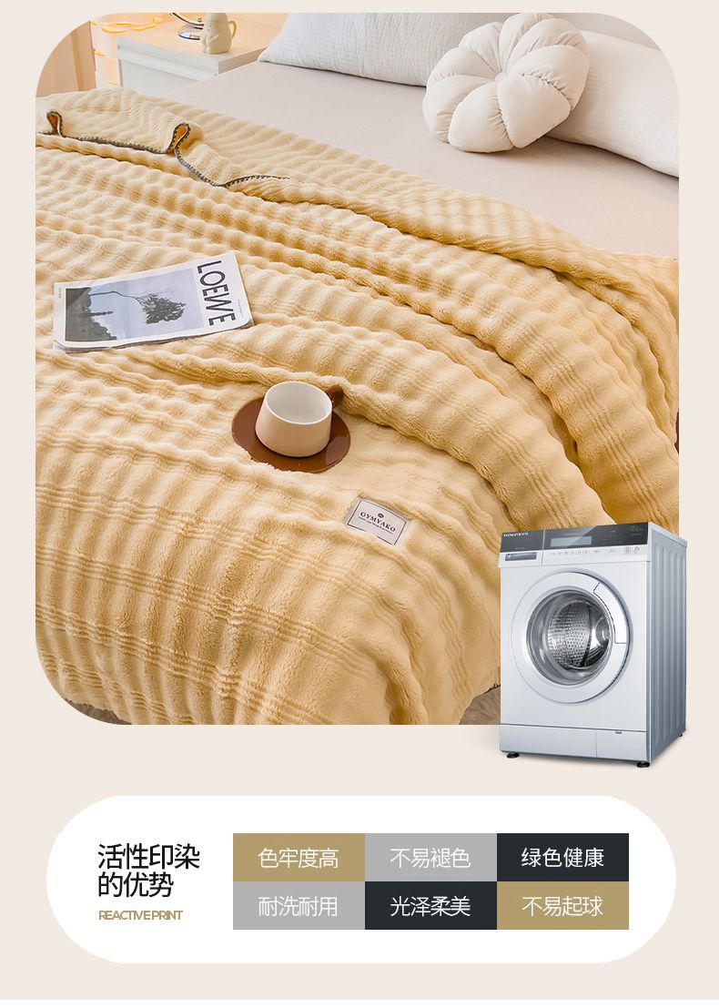 (总)宜家坊 2023新款秋冬高克重法莱绒羊羔绒立体剪花纯色多功能毛毯,奶油白,浅奶咖,绅士灰,胭脂粉,烟灰蓝,优雅棕